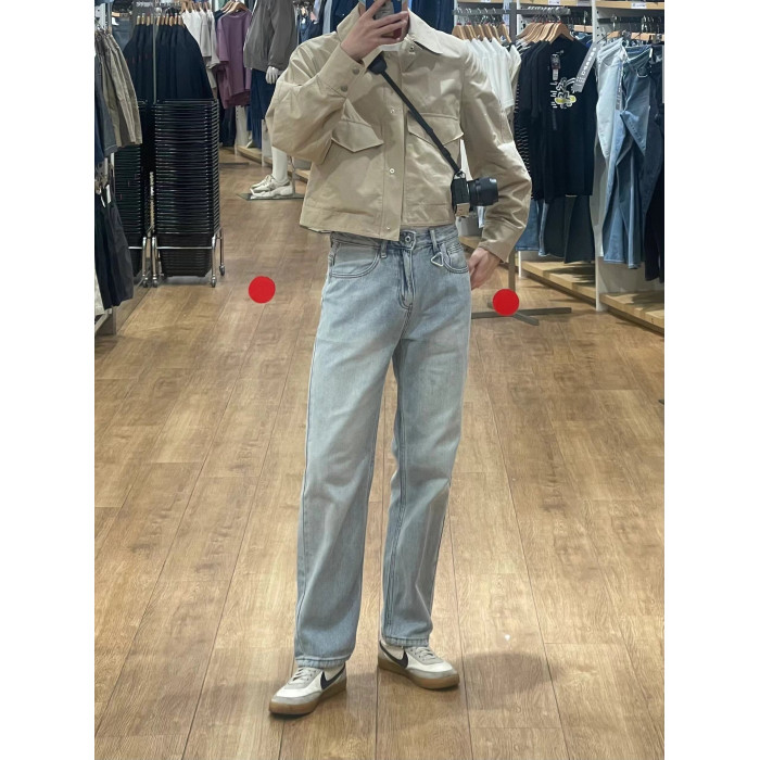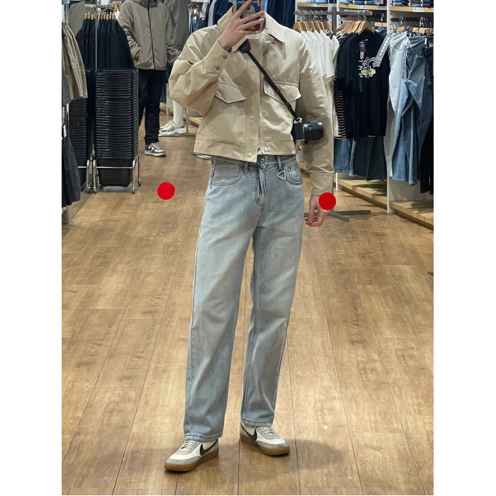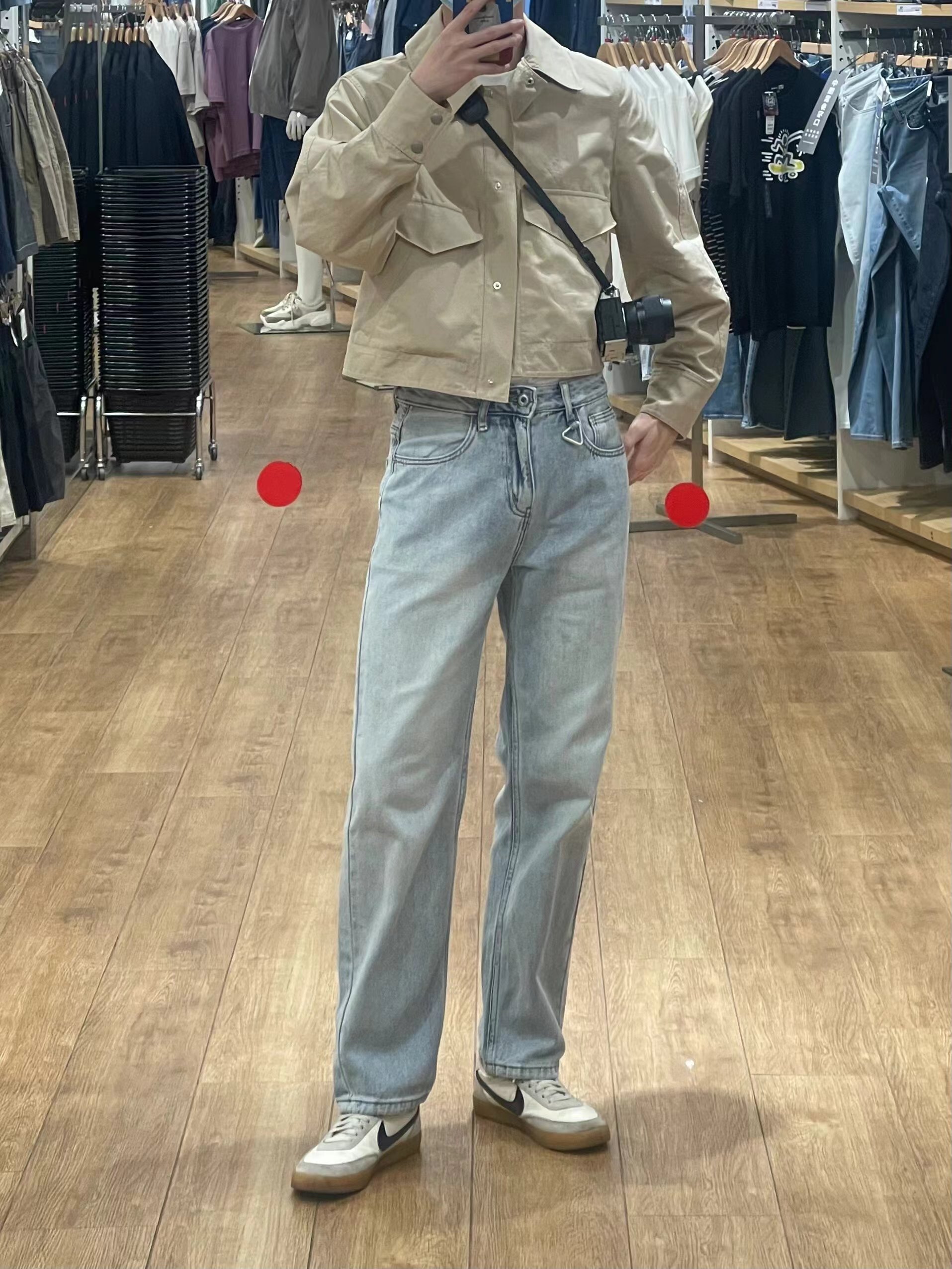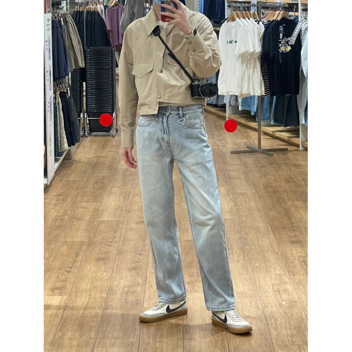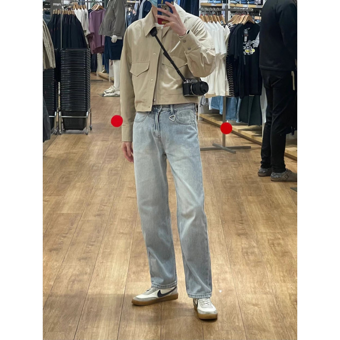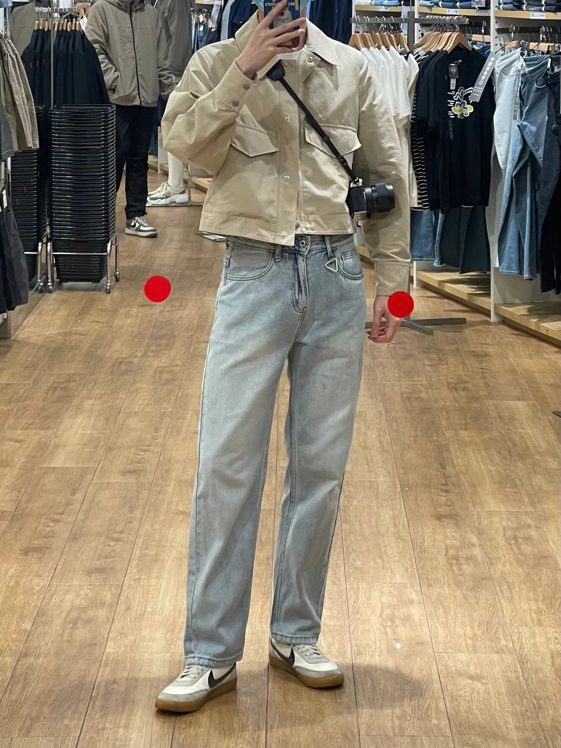 日系百搭簡約修身水洗泛白牛仔褲男潮流穿搭高級感設計直筒長褲子