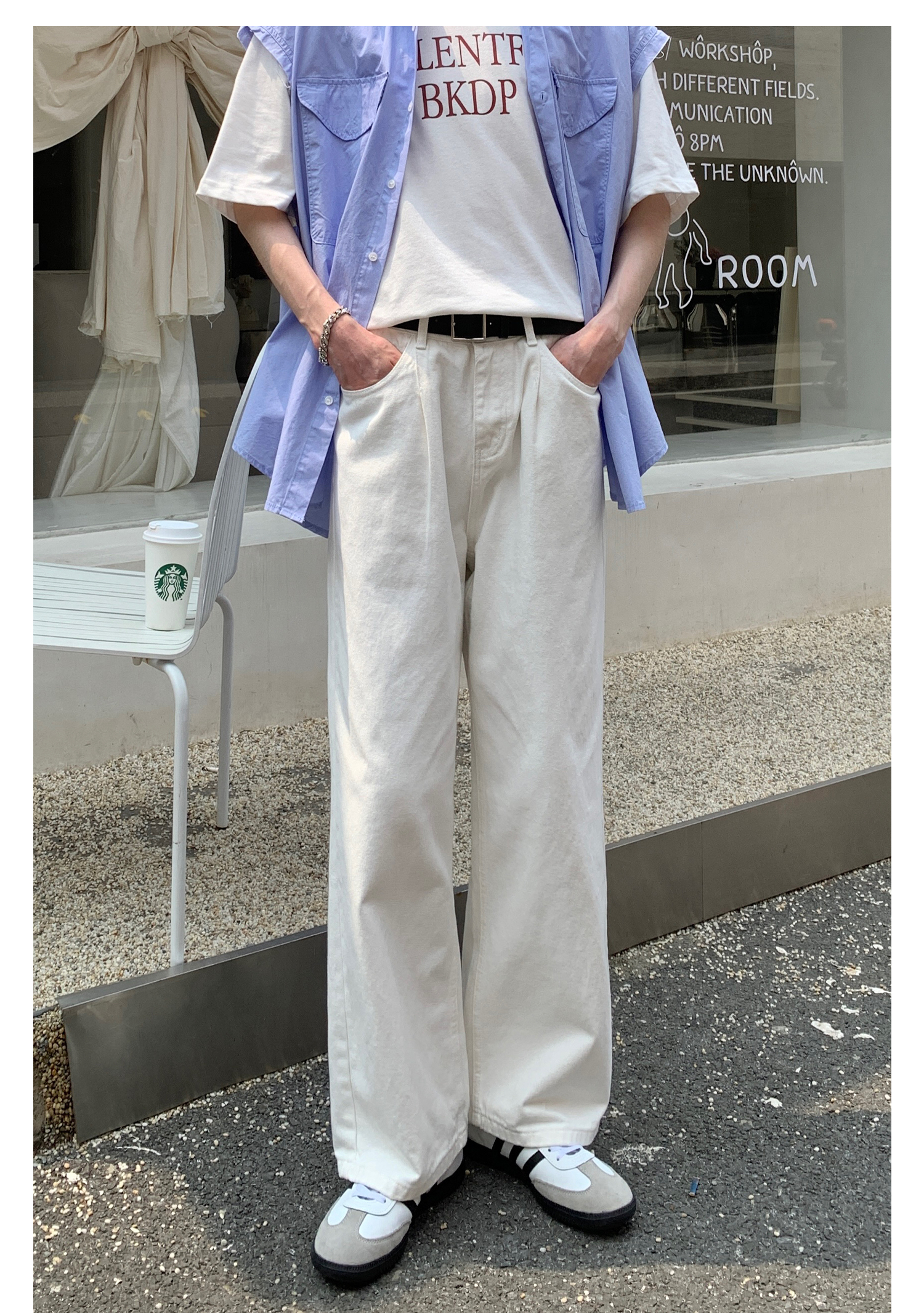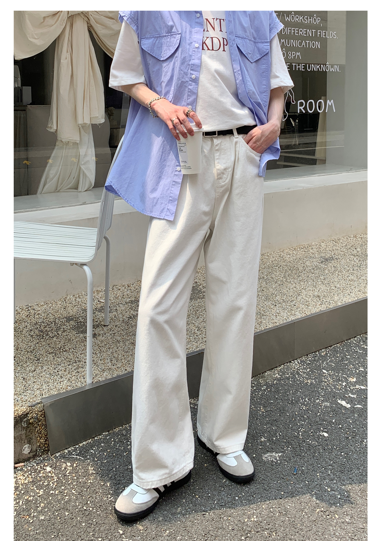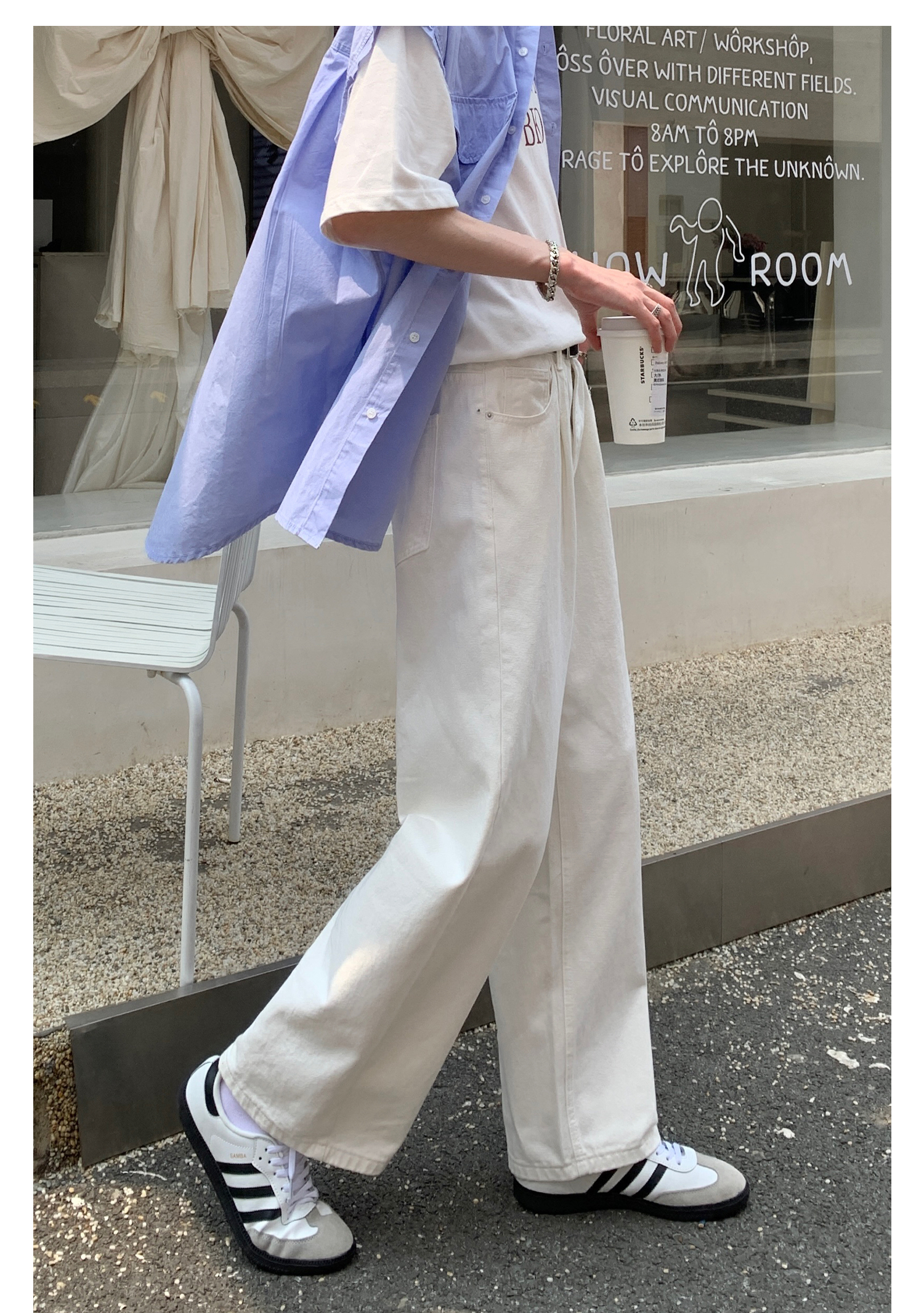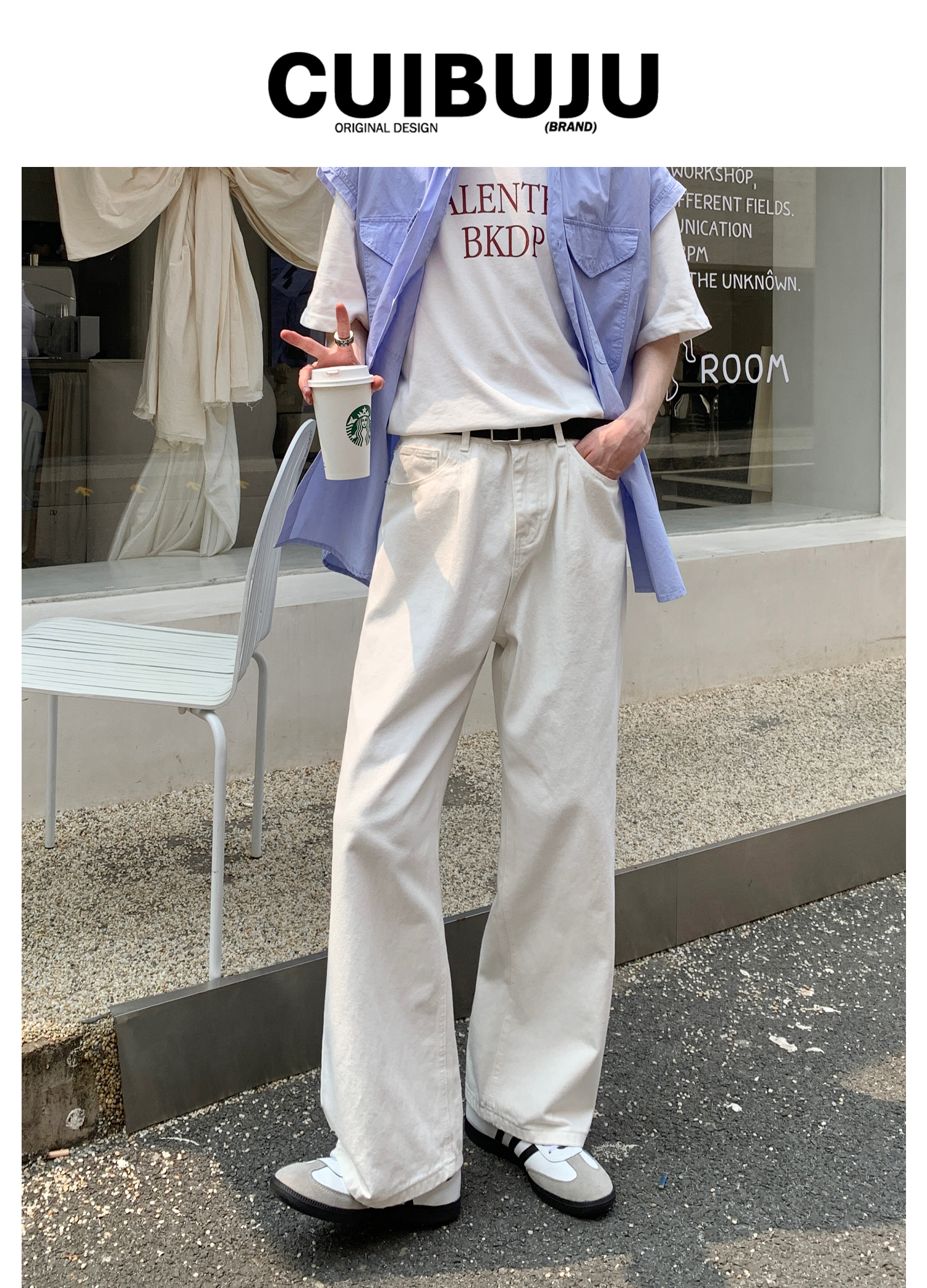 cuibuju 韓版基礎簡約純色直筒寬松廓形長褲 流行時尚牛仔褲vibe