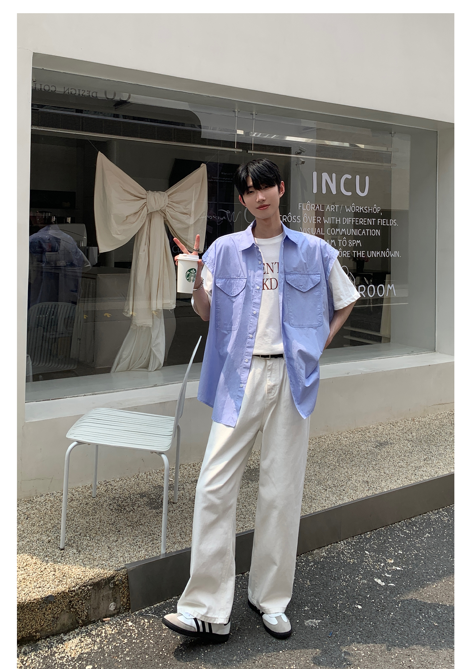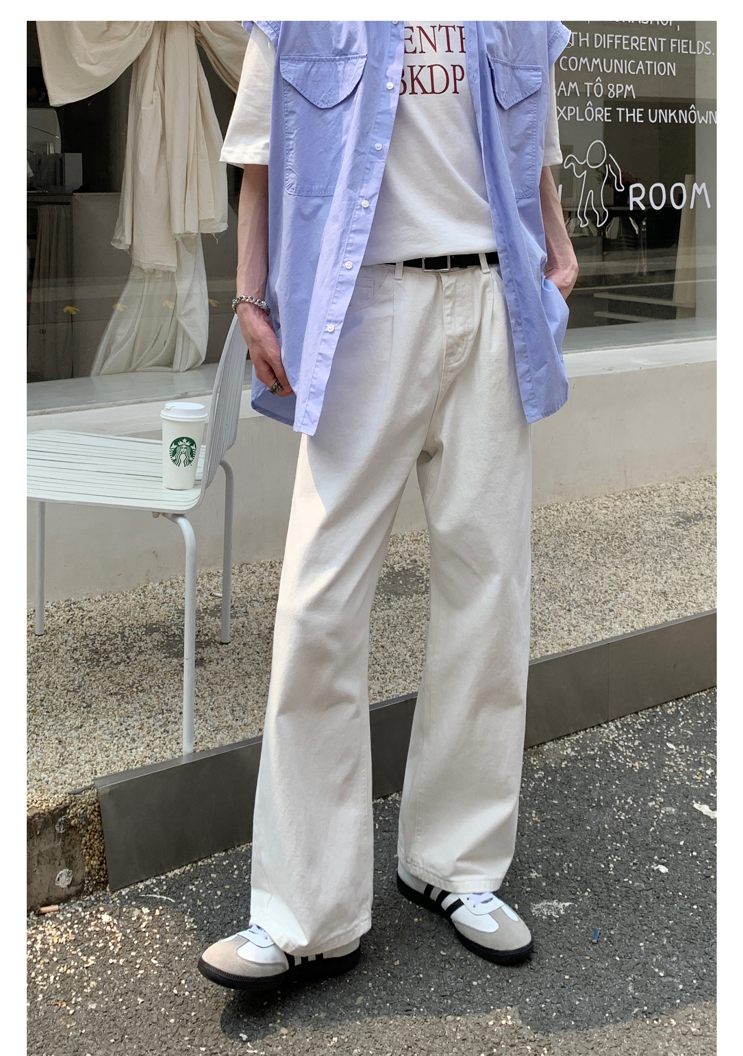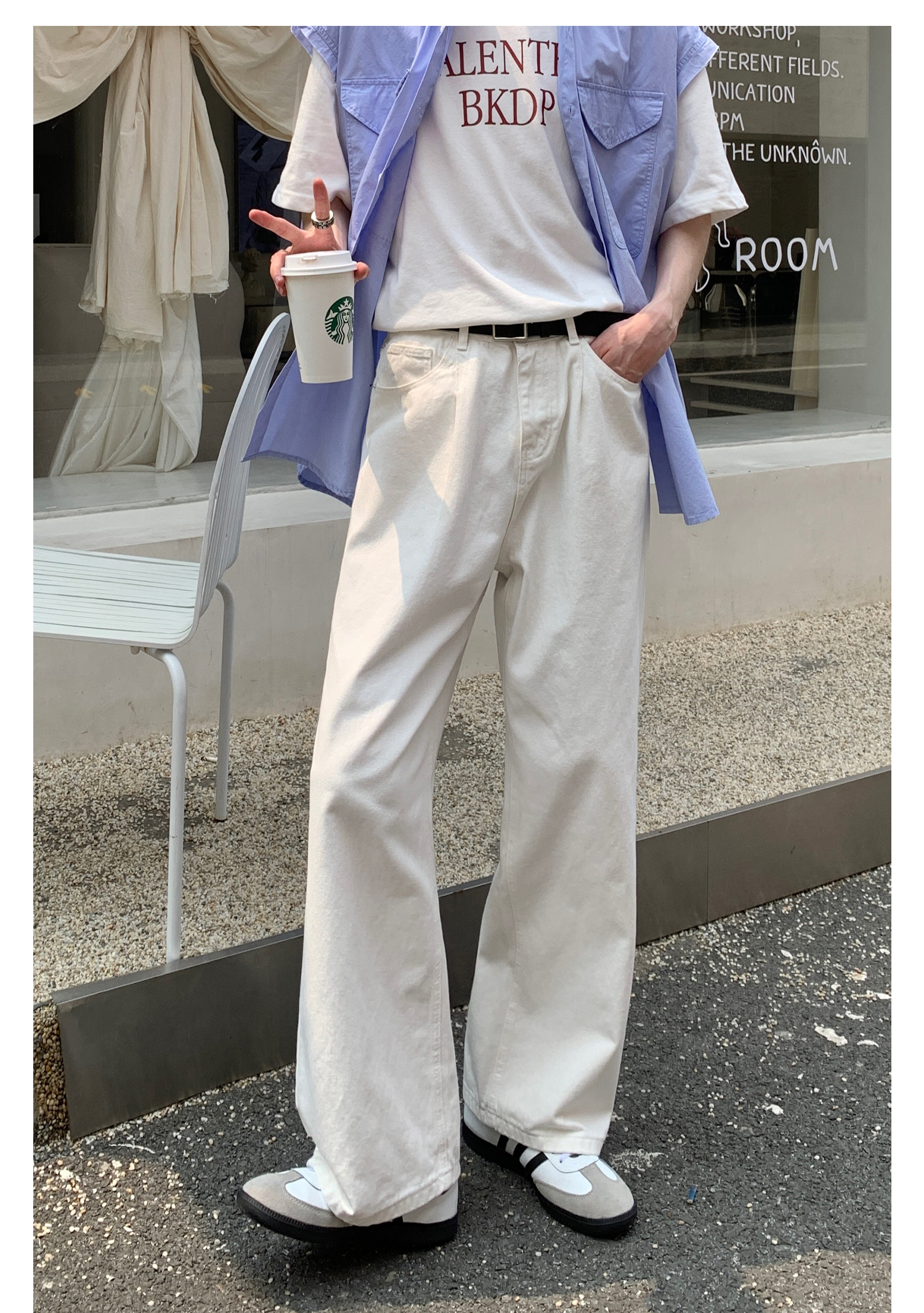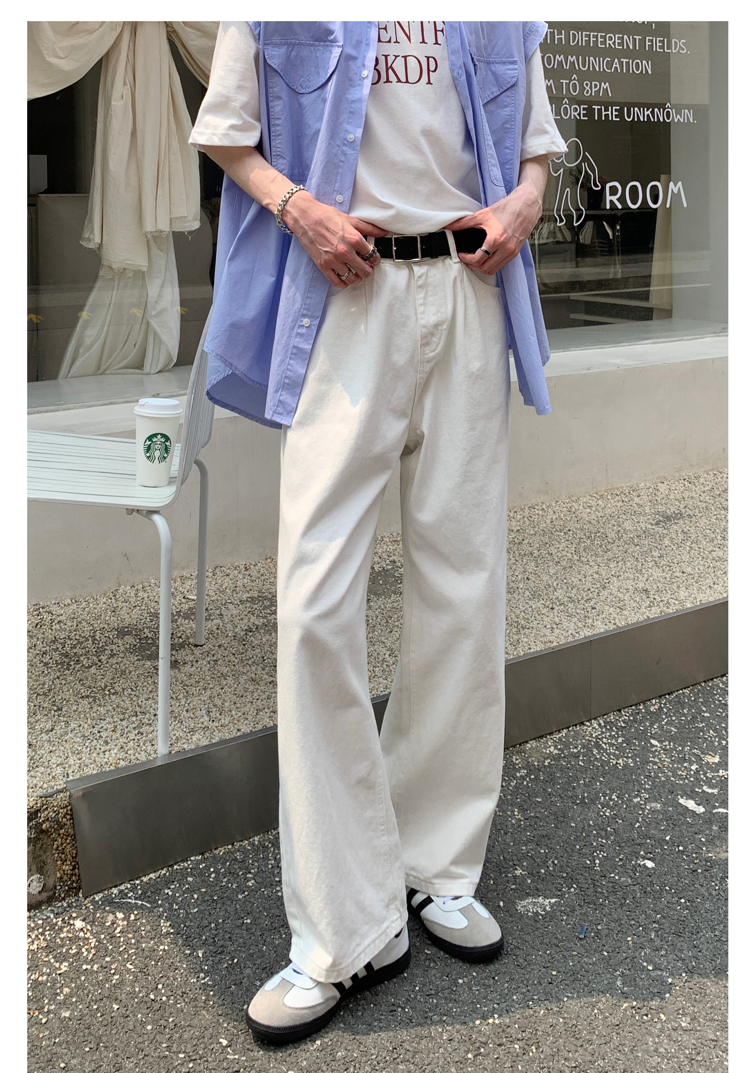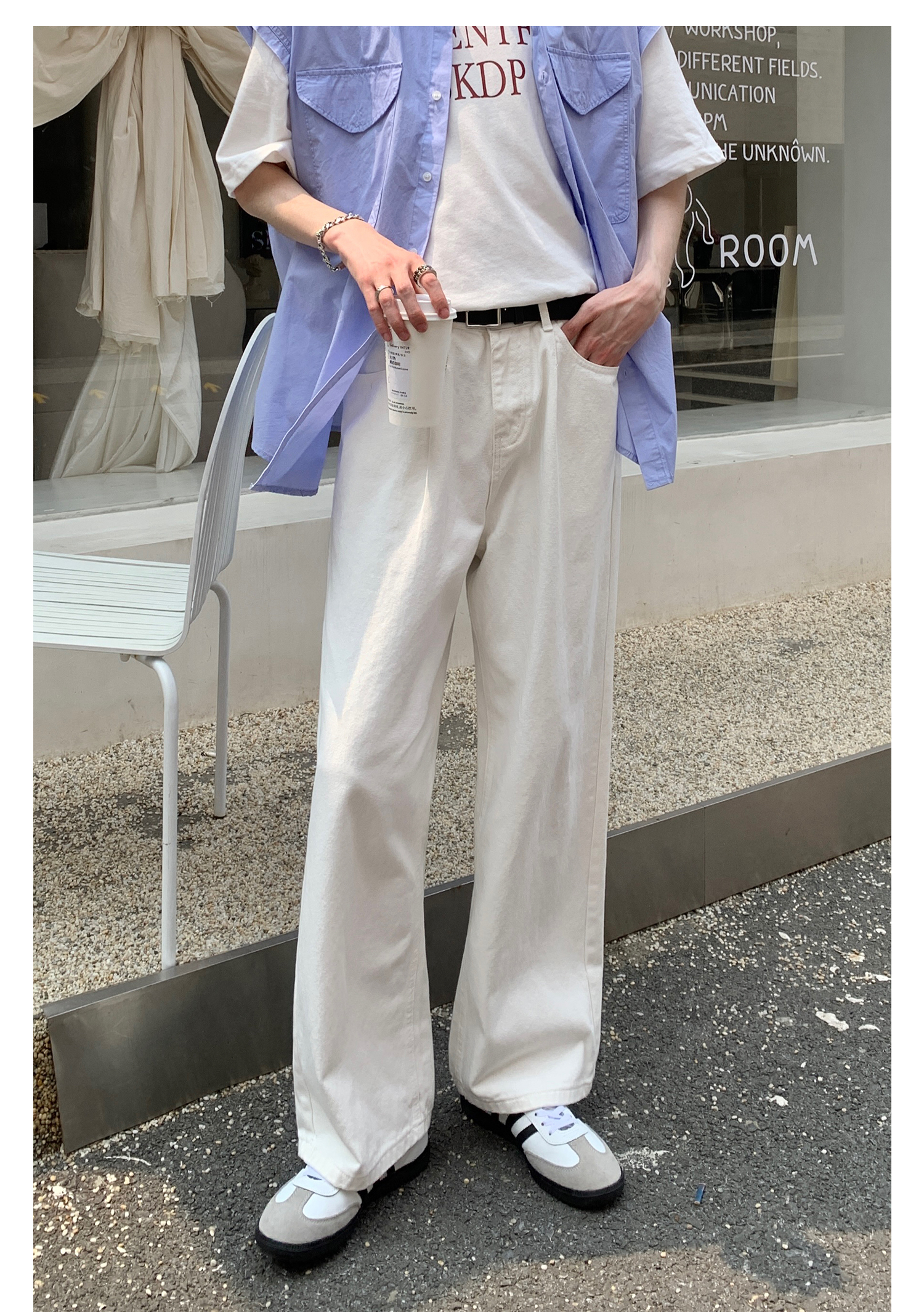 cuibuju 韓版基礎簡約純色直筒寬松廓形長褲 流行時尚牛仔褲vibe