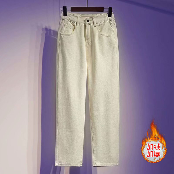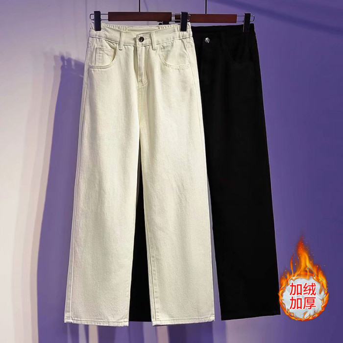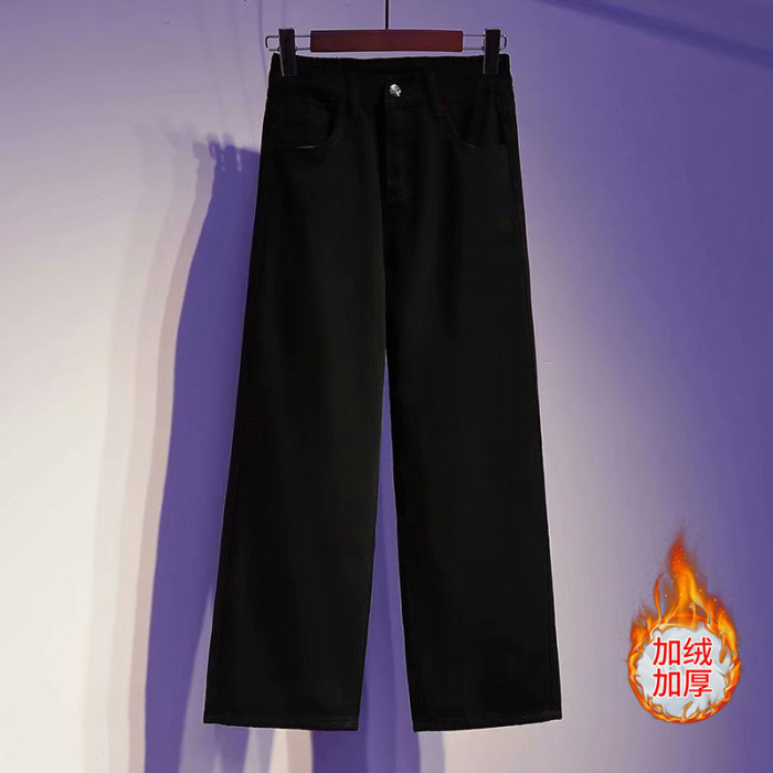 2025秋冬港風純色直筒牛仔褲男加絨加厚寬松濶腿褲子休閒百搭長褲