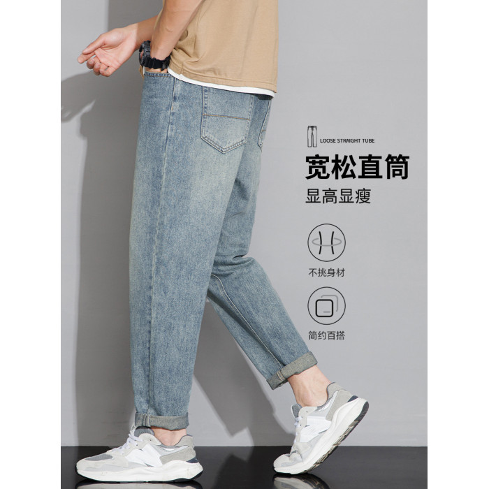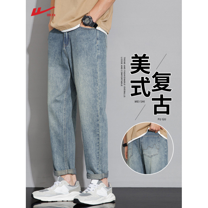 迴力牛仔褲男士2025新款秋冬季加絨潮牌寬松直筒男生百搭休閒長褲