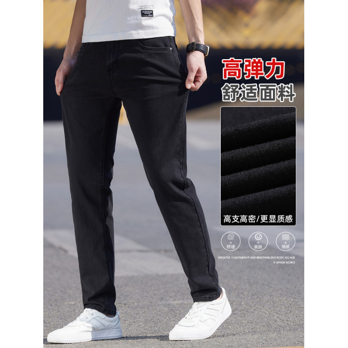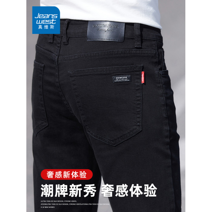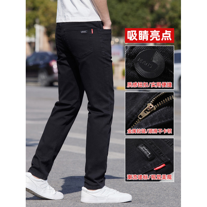 真維斯秋冬季黑色牛仔褲男士修身直筒加絨休閒長褲子男款2025新款