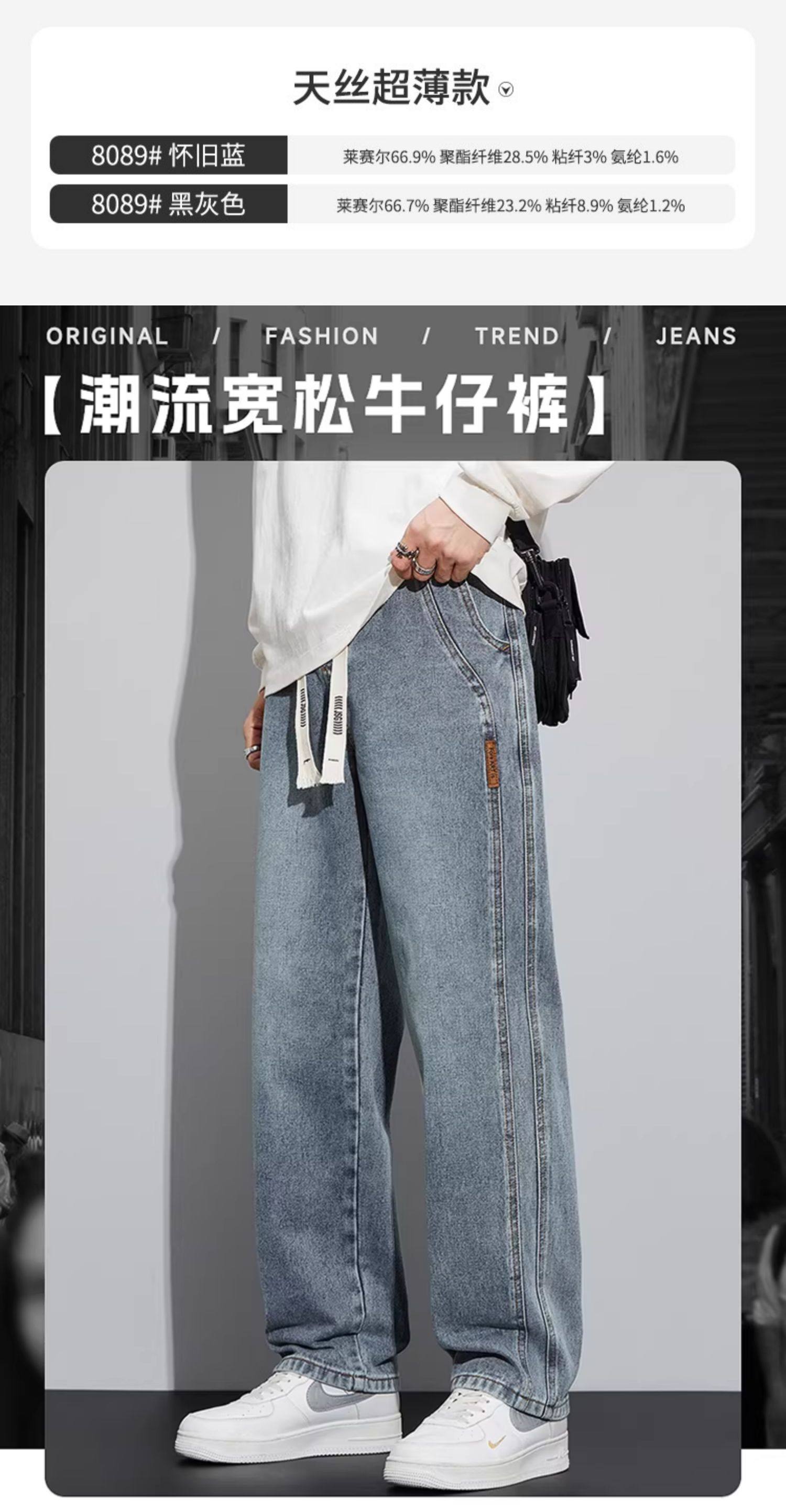 牛仔褲男士春秋款直筒寬鬆休閒褲子美式潮牌濶腿新款男生長褲加絨