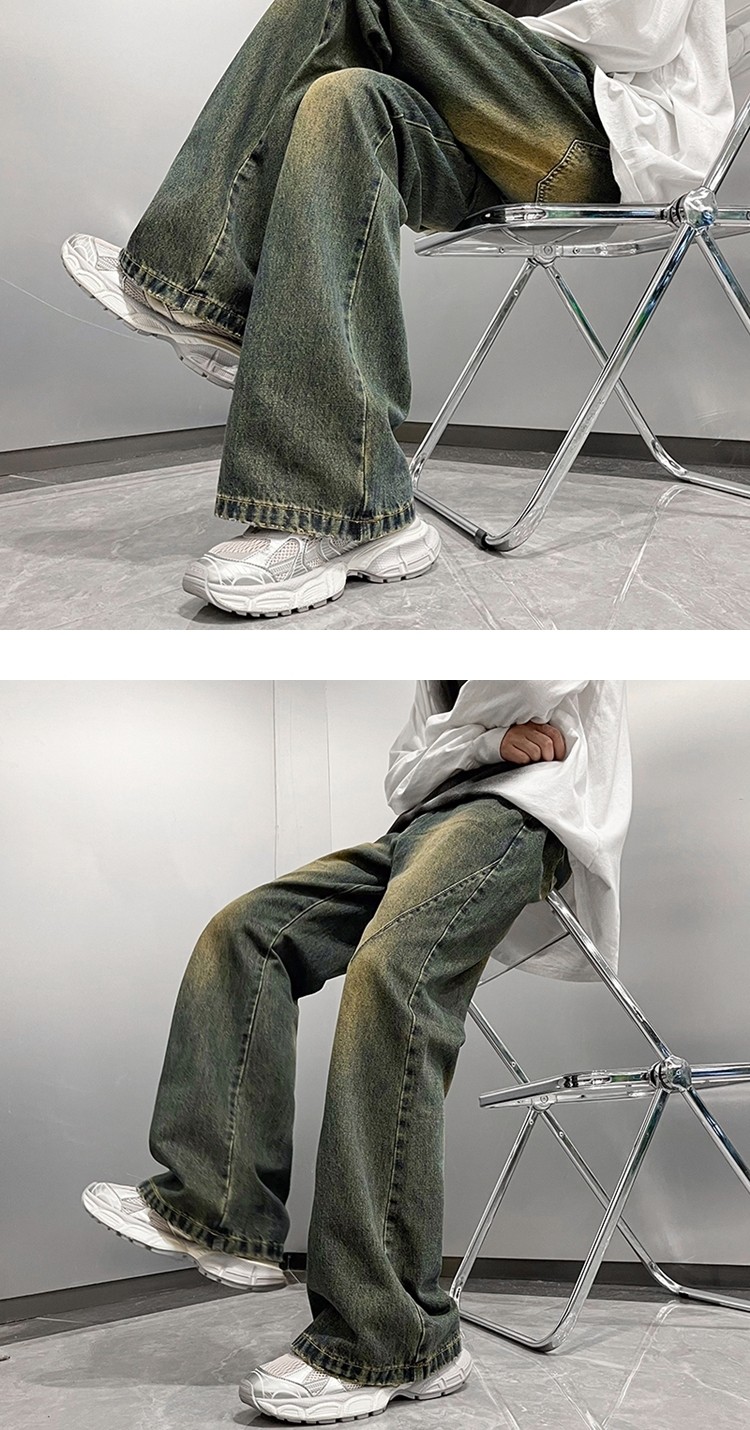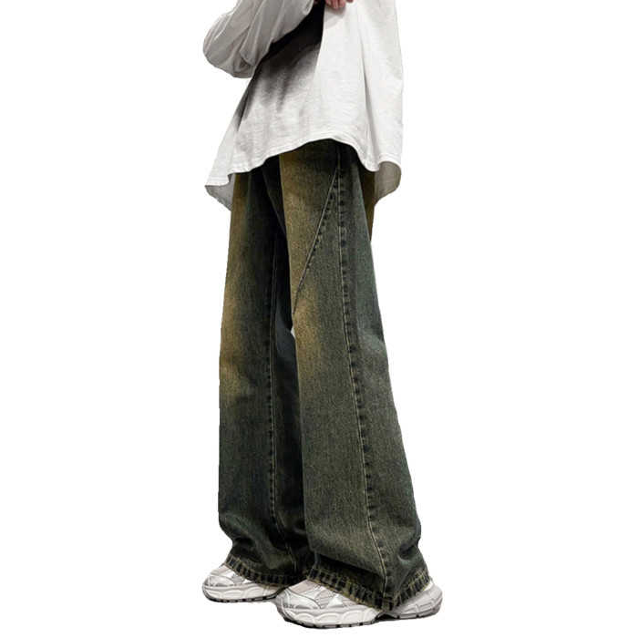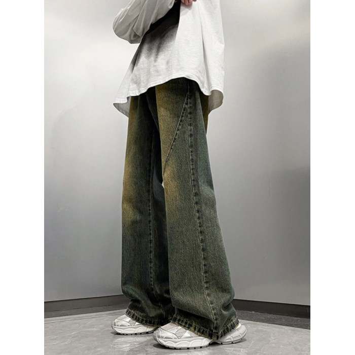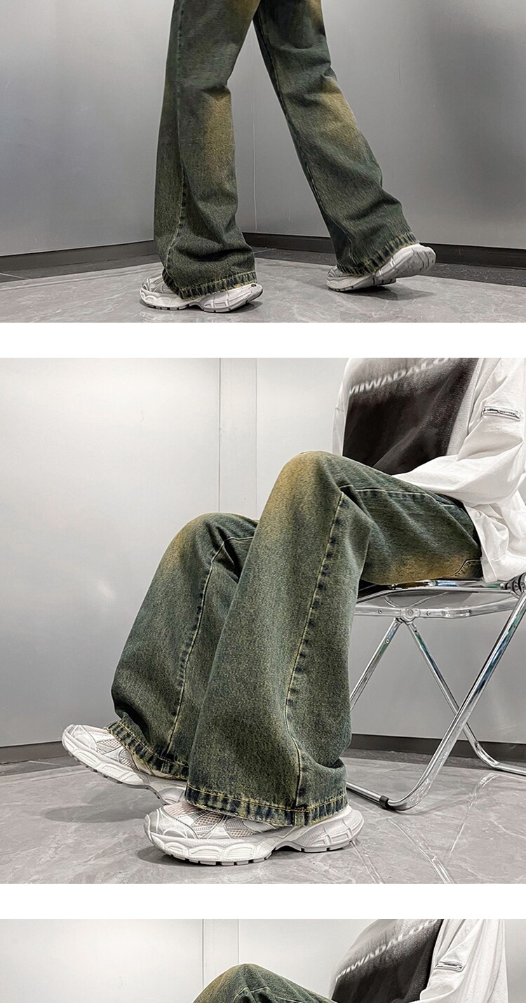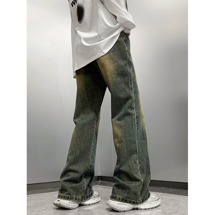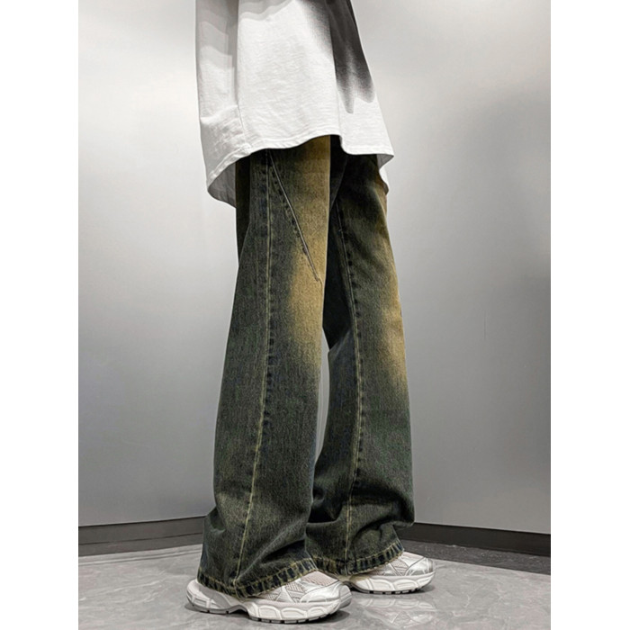 微喇褲子男款美式復古做舊牛仔褲春秋季高街潮牌vibe寬松濶腿長褲