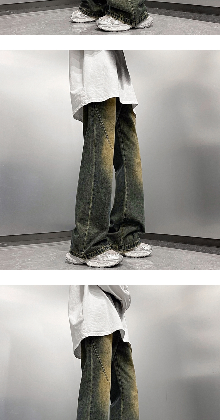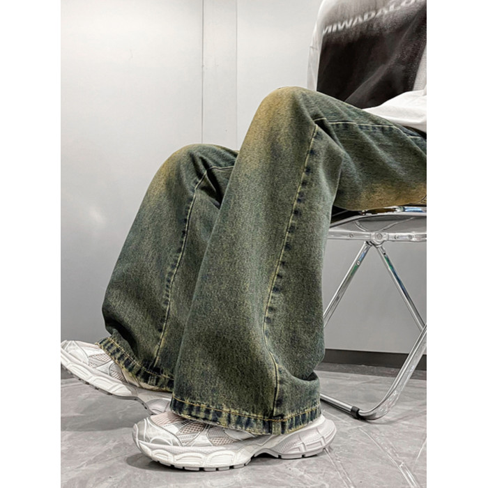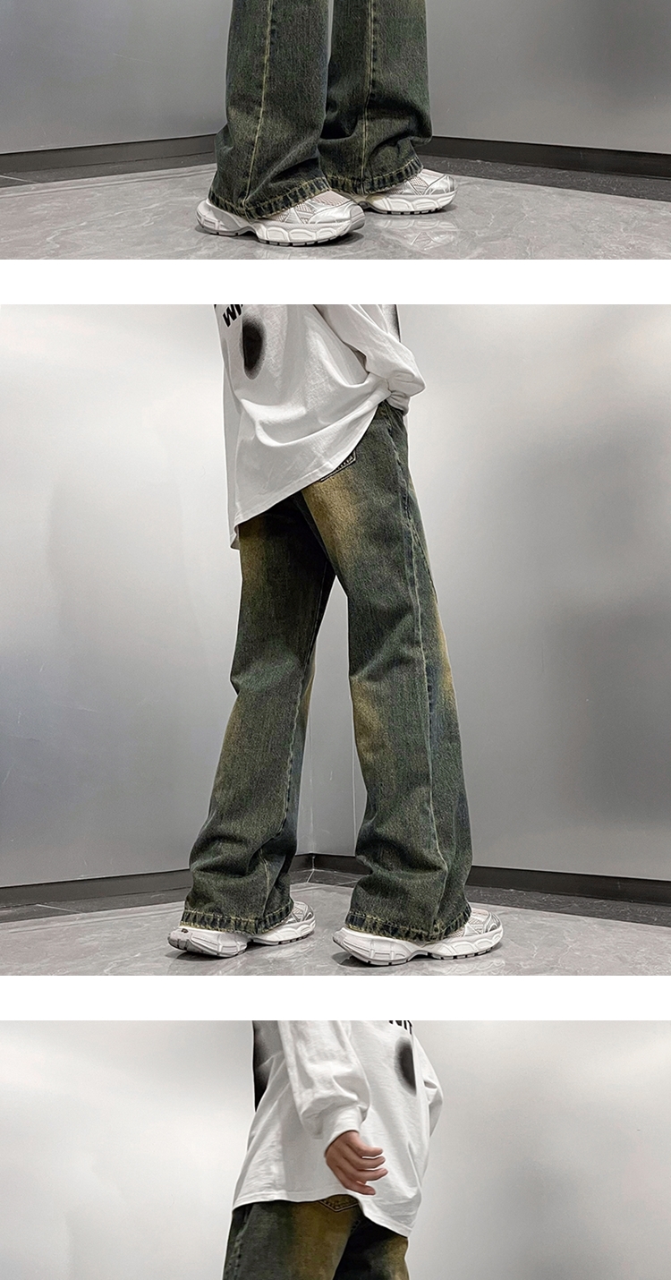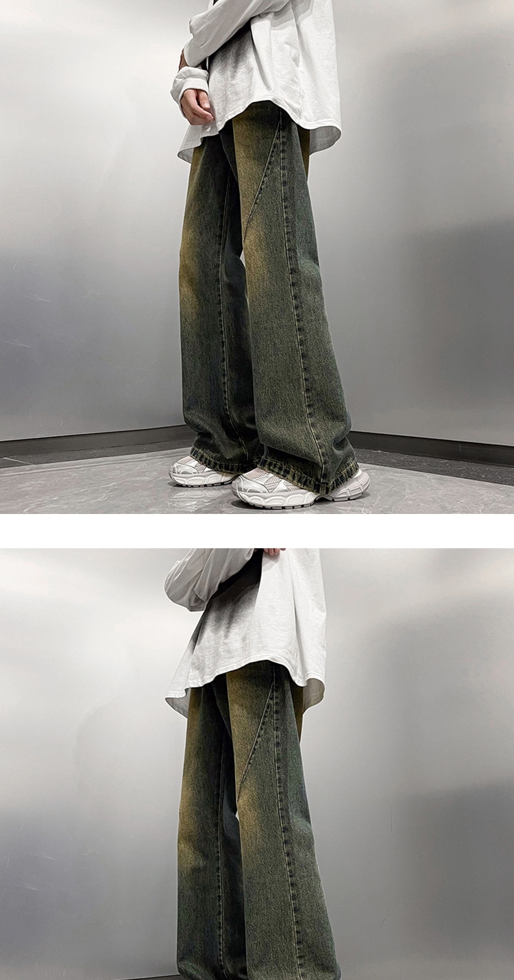 微喇褲子男款美式復古做舊牛仔褲春秋季高街潮牌vibe寬松濶腿長褲