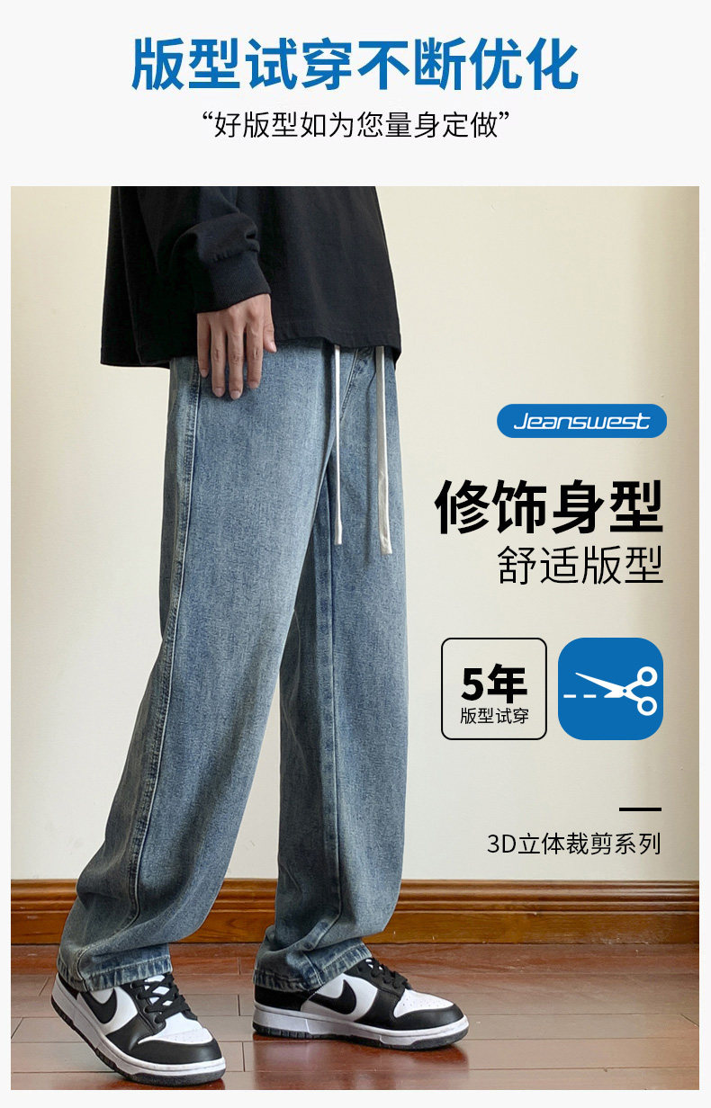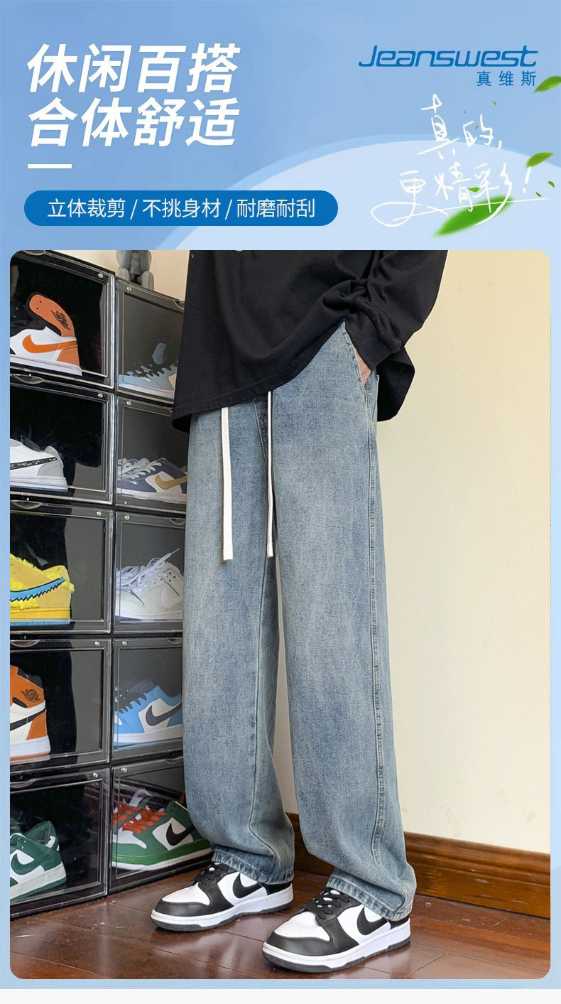 真維斯男士春夏季牛仔褲2026新款直筒百搭寬鬆濶腿男生休閒長褲子