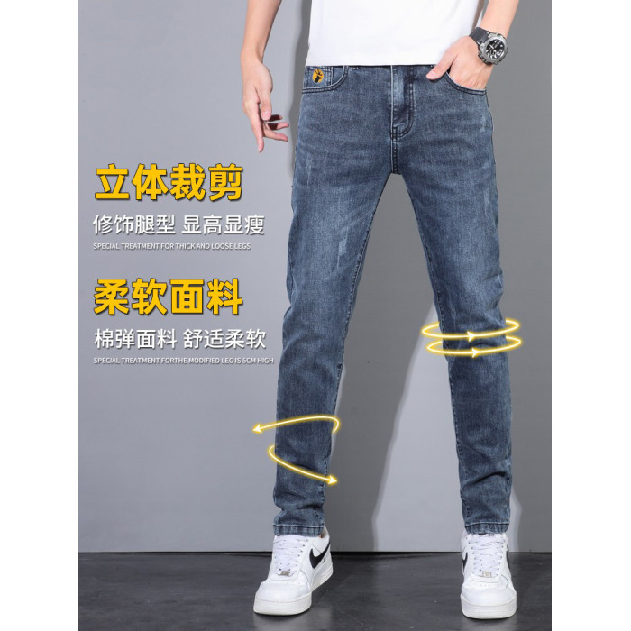 啄木鳥2026新款牛仔褲男士夏季薄款修身小腳直筒春季休閒褲子男款