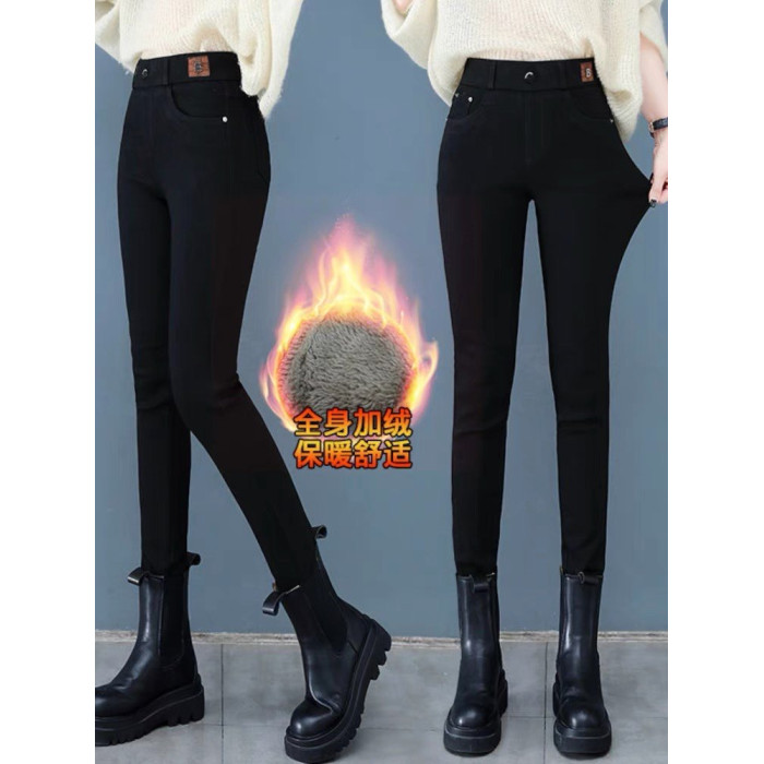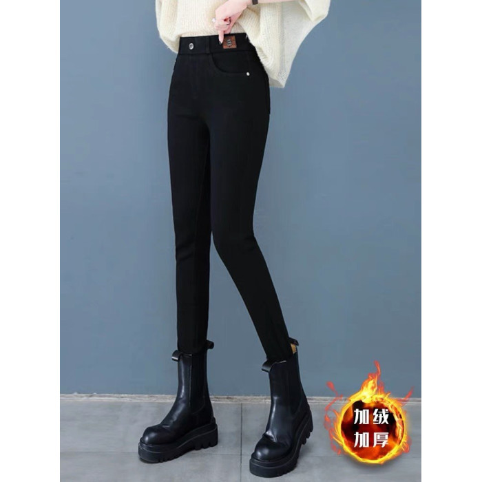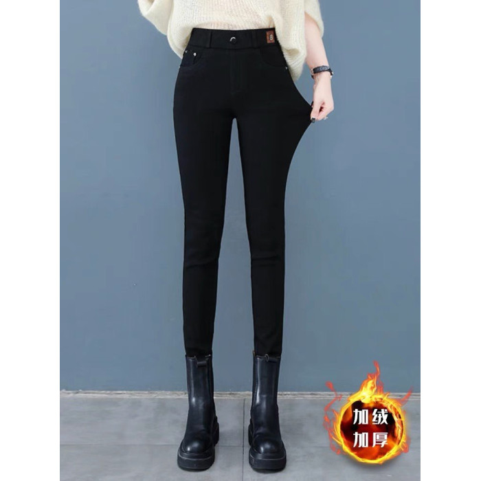加絨加厚松緊腰休閒小腳打底褲女秋冬季2025今年新款流行鉛筆褲子