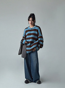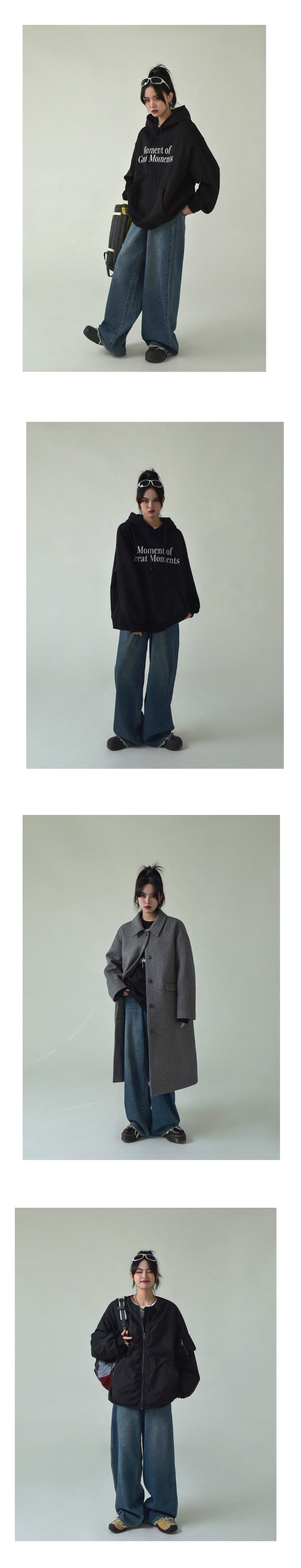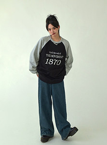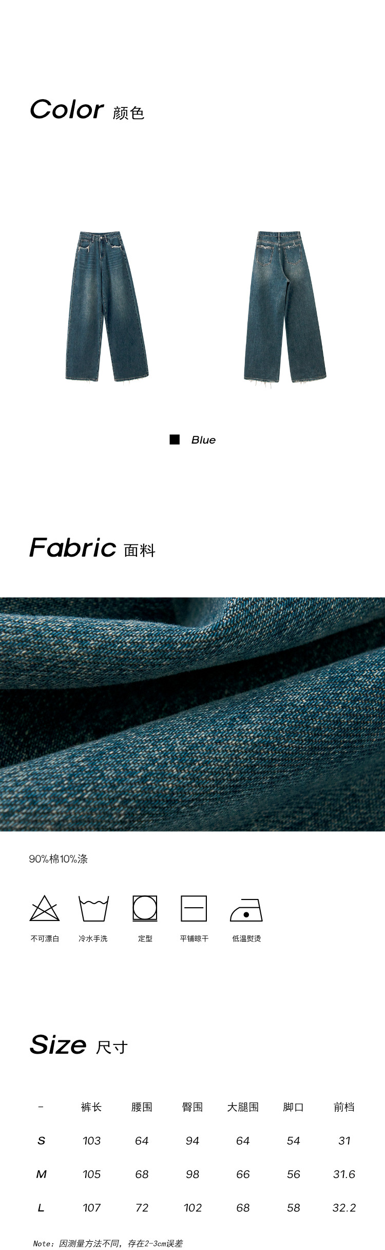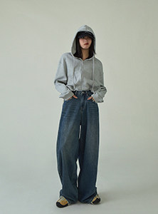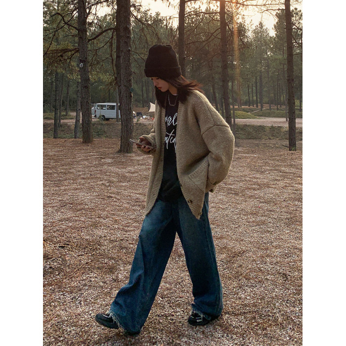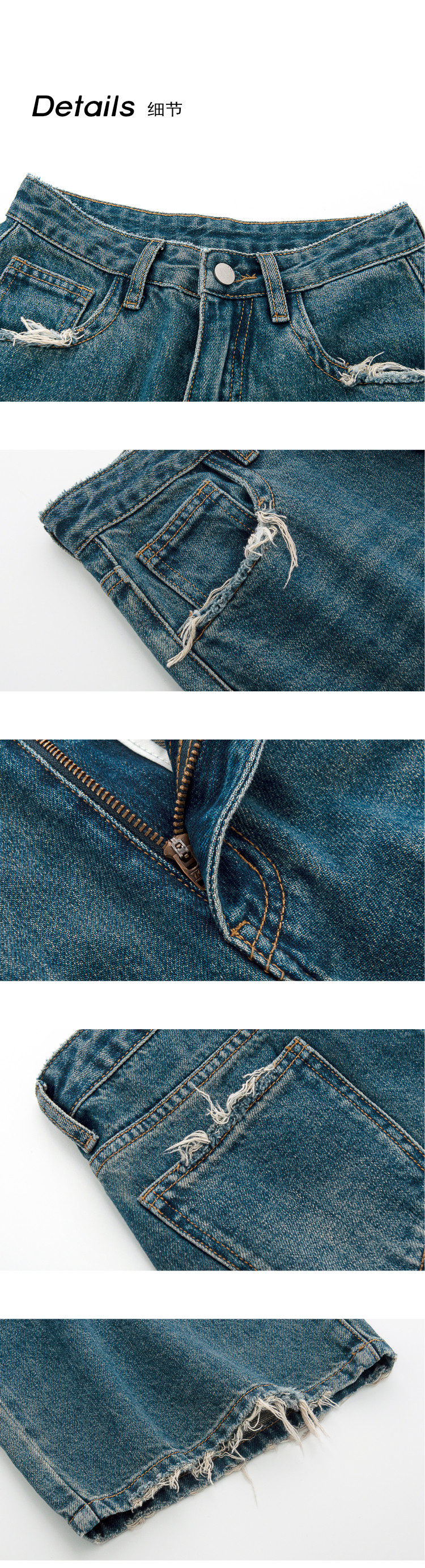 SIXI四喜家春季 復古做舊毛須邊濶腿牛仔褲女高腰直筒老爹拖地褲