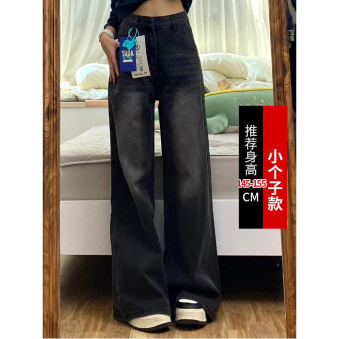復古不貼腿微喇叭牛仔褲女XS小個子梨形粗腿顯高顯瘦寬鬆濶腿長褲