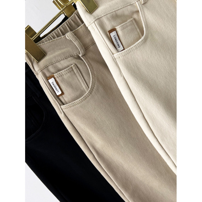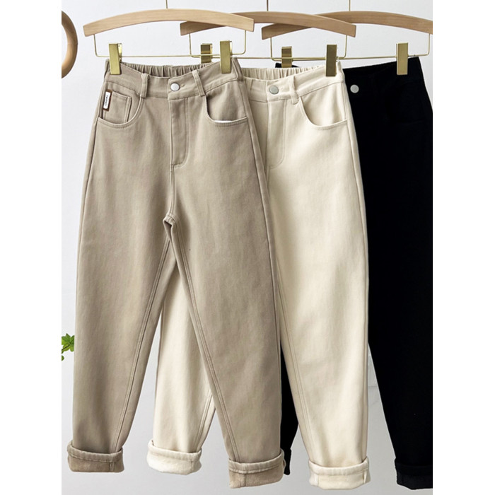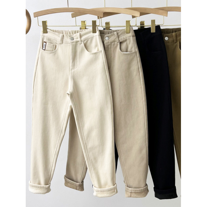 高腰加絨牛仔褲女冬季加厚歐洲站蘿蔔褲小個子寬鬆顯瘦小腳老爹褲