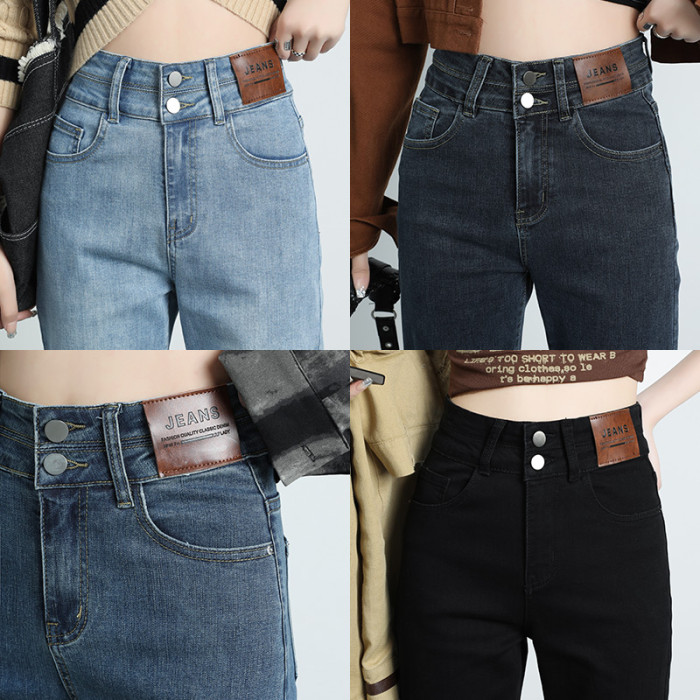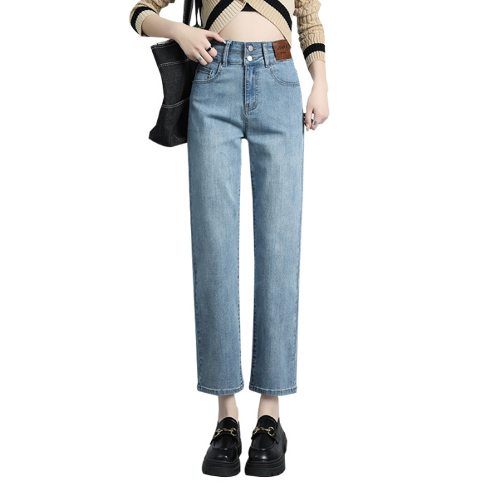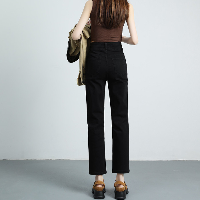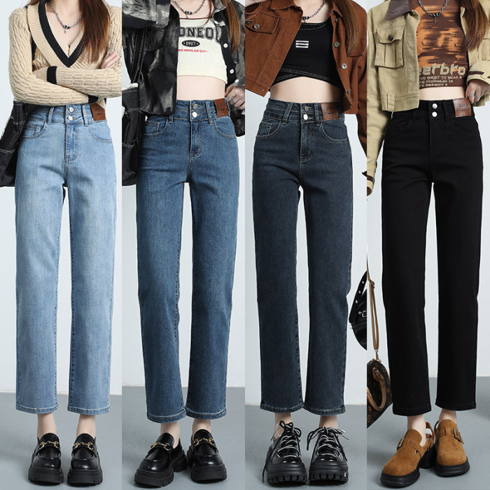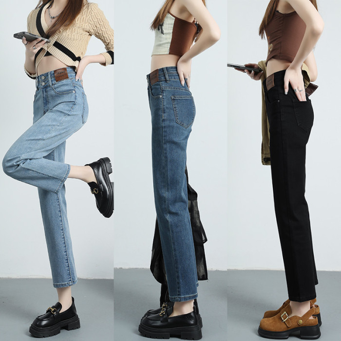 高腰彈力八九分小個子彈力直筒牛仔褲女梨形身材菸琯褲窄版直筒褲