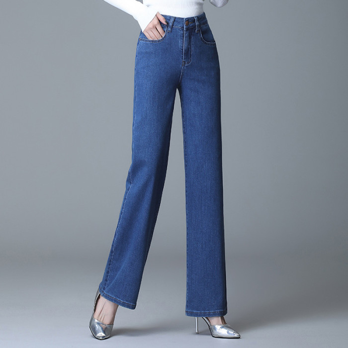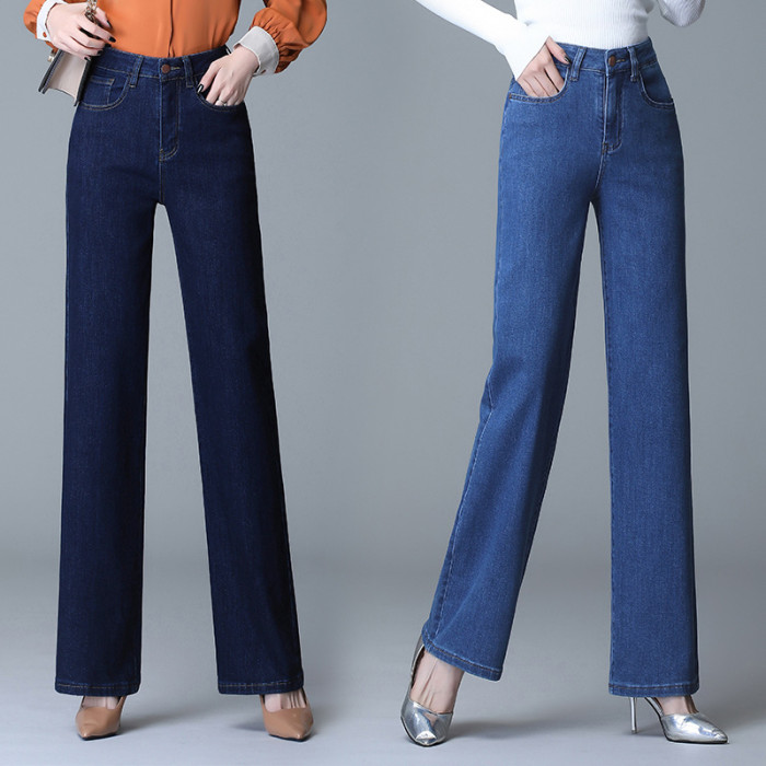 加長版垂感濶腿牛仔褲女高腰寬松顯瘦氣質直筒長褲棉彈大碼媽媽褲