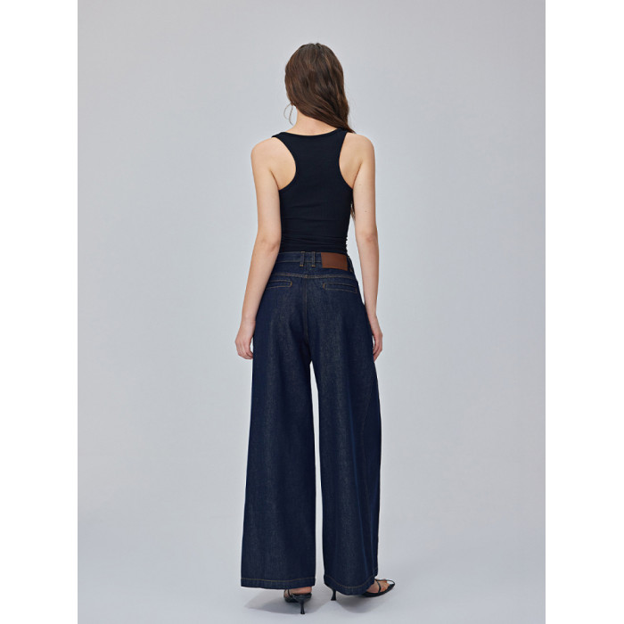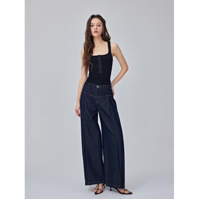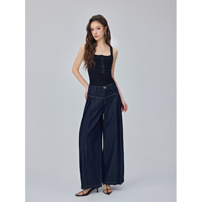 Calure Studio暮藍復古原色春夏季寬松小衆垂感拖地牛仔濶腿褲
