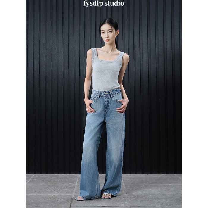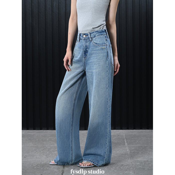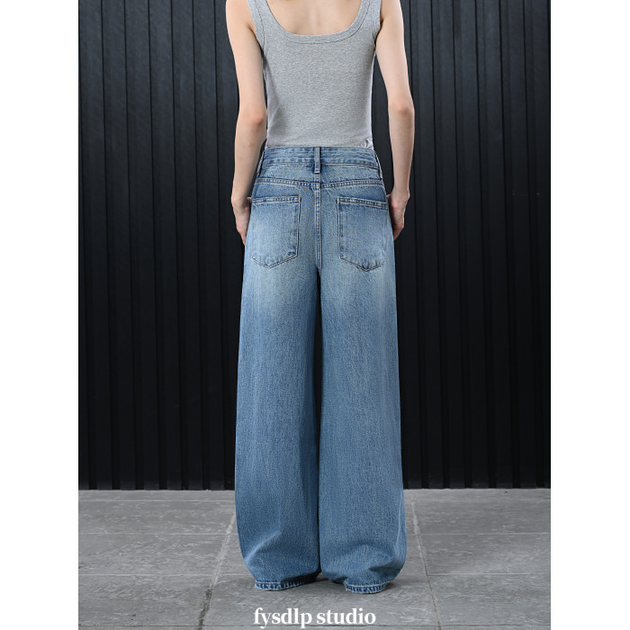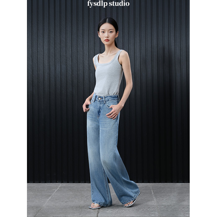 fysdlp版型超好設計感高腰濶腿褲女2025夏季新款街拍凹造型牛仔褲