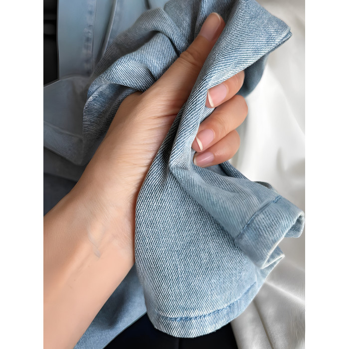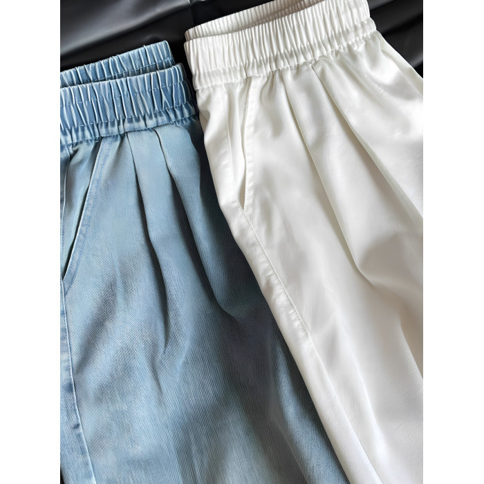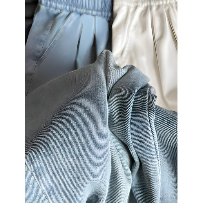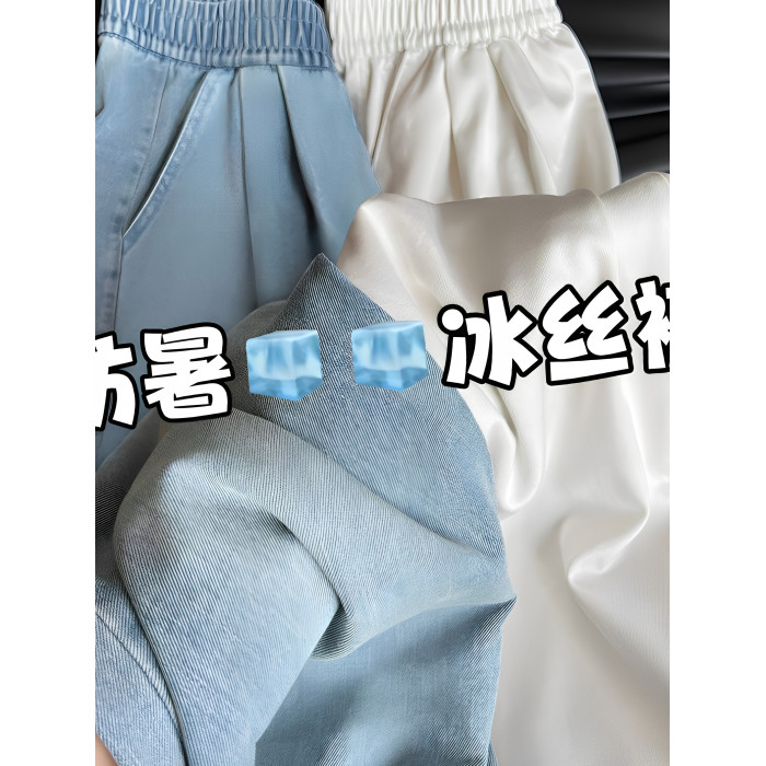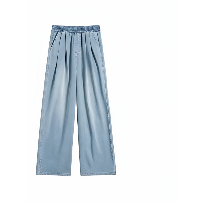 瑟琳娜藍色天絲直筒牛仔褲女夏薄款胖妹妹寬松顯瘦垂感冰絲濶腿褲