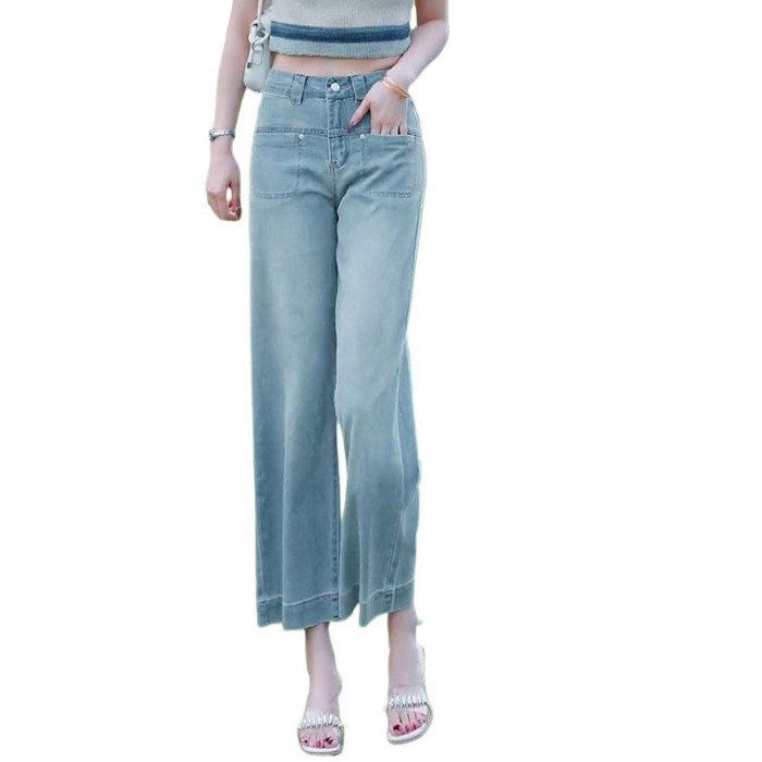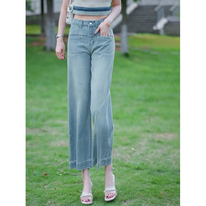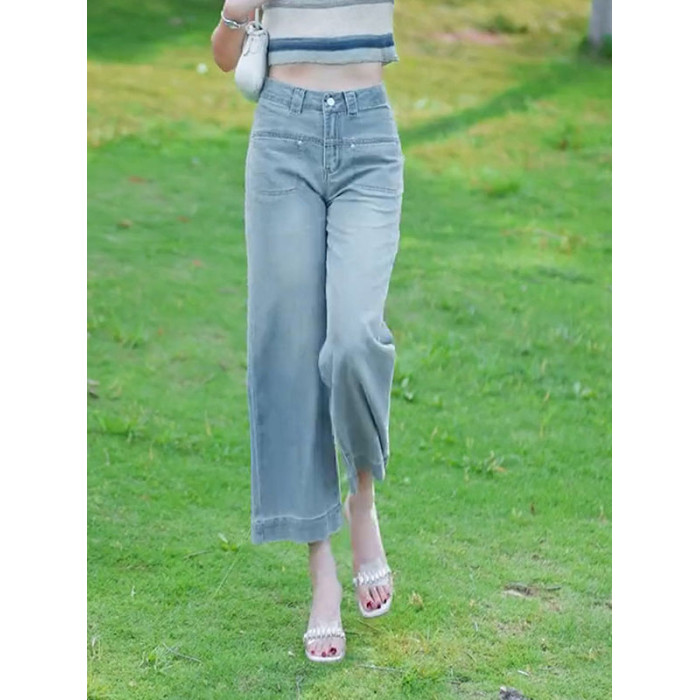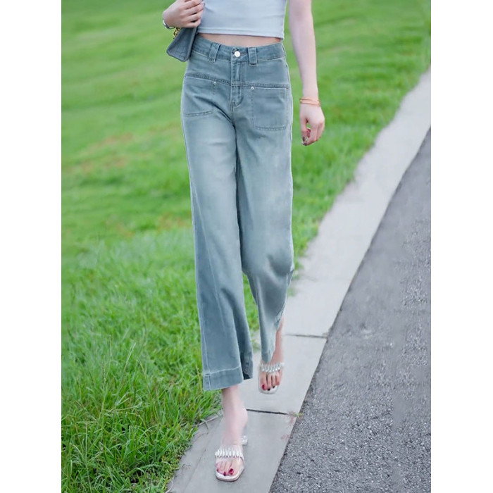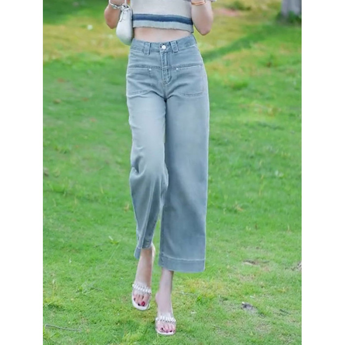 天絲牛仔褲女夏季薄款2025新款高腰冰絲垂感小個子九分直筒濶腿褲