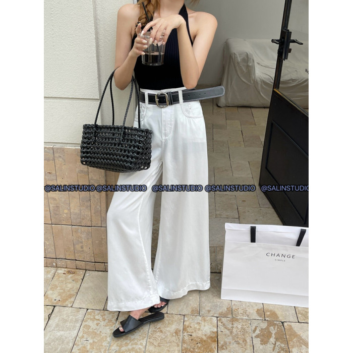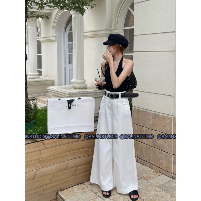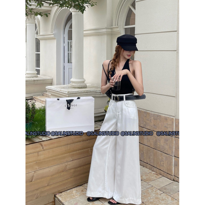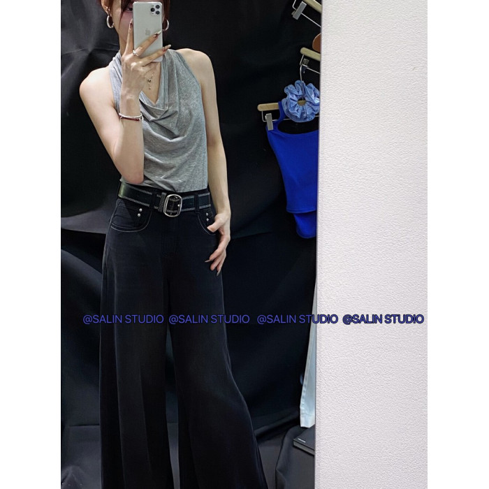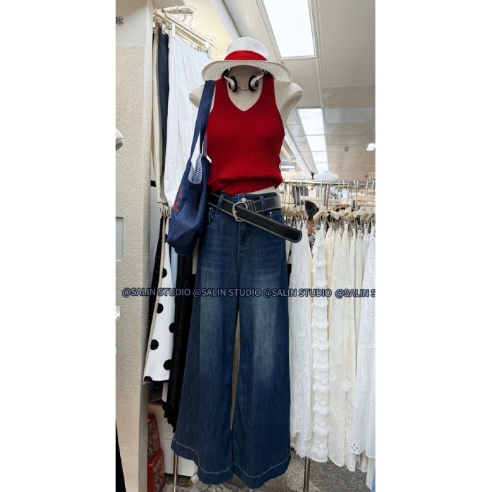 SALIN莎琳2025夏季新款深藍色直筒牛仔褲女寬松顯瘦長款濶腿褲女
