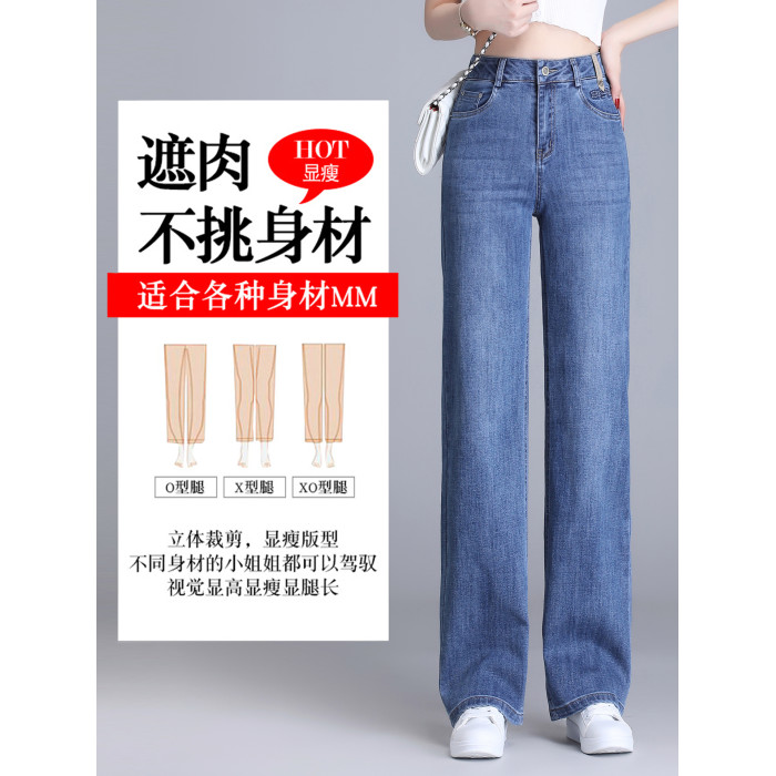 玖姿直筒牛仔褲女特價2025年夏季新款高腰薄款顯瘦百搭窄版濶腿褲