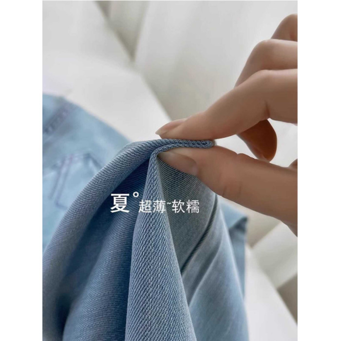 大碼女裝天絲牛仔褲夏季胖mm梨形身材顯瘦直筒垂感冰絲濶腿褲薄款