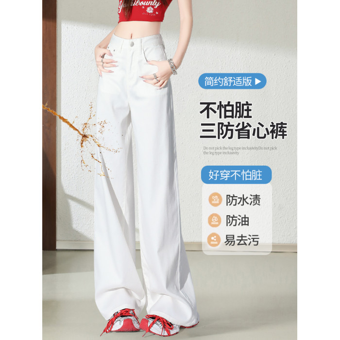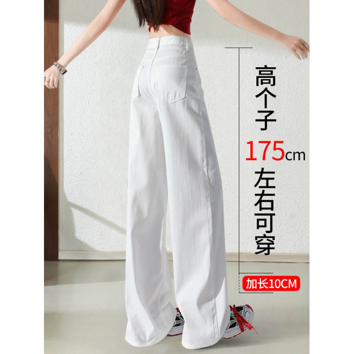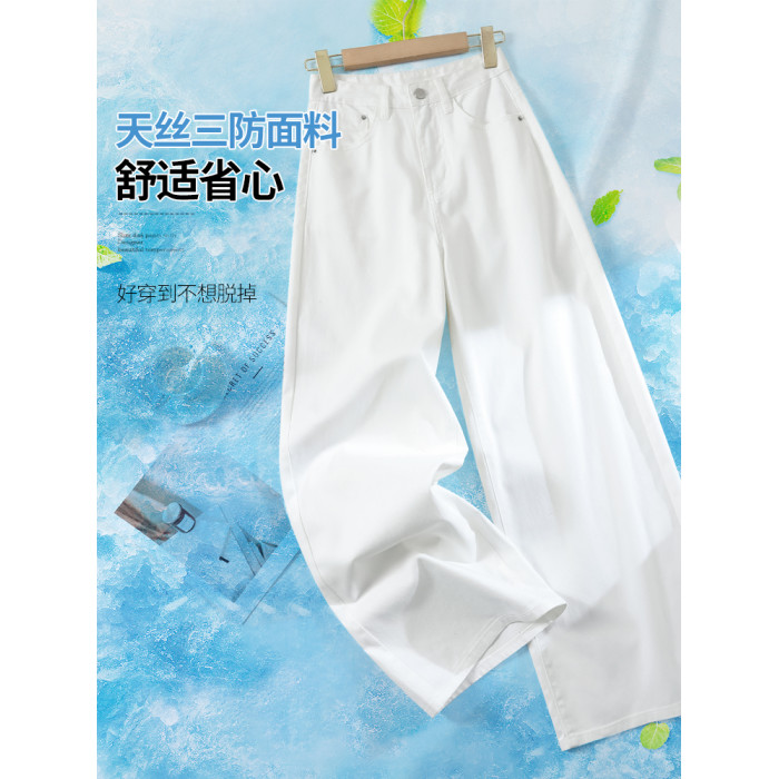 高級天絲牛仔褲女夏季薄款加長白色三防高個子垂感百搭高腰濶腿褲