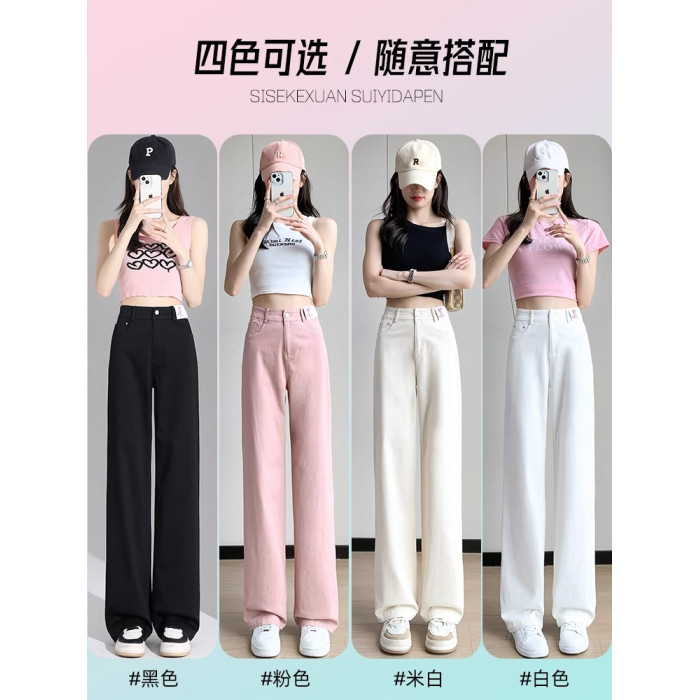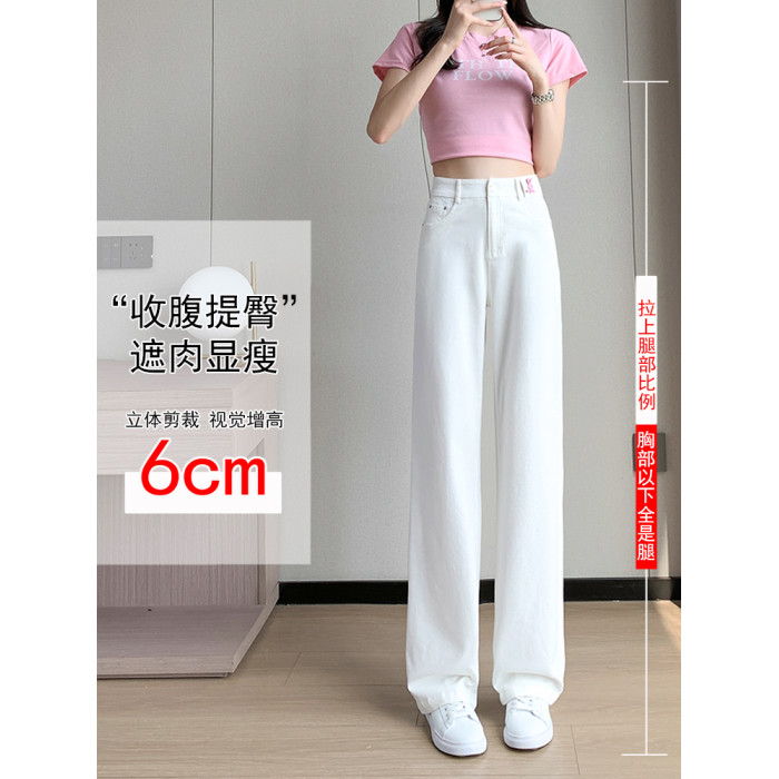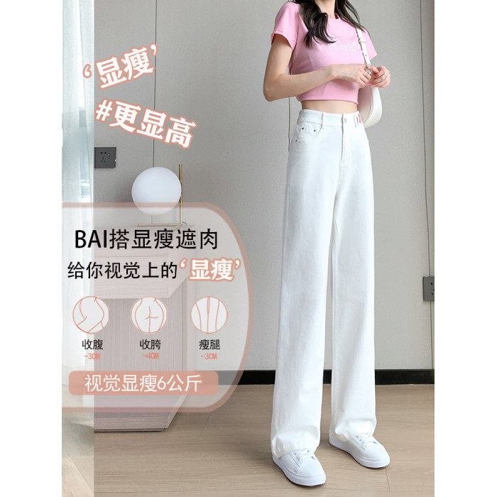 隅見丨白色天絲棉牛仔女夏季薄款高腰顯瘦垂感加長寬松窄版濶腿褲