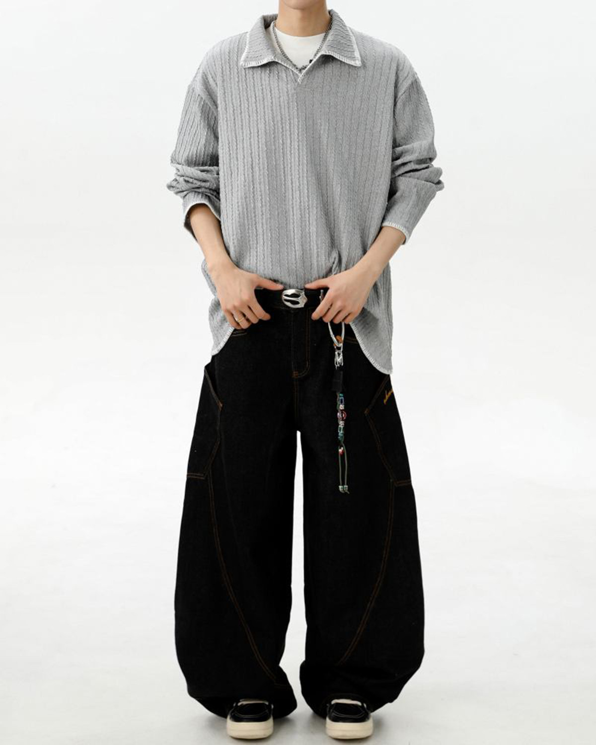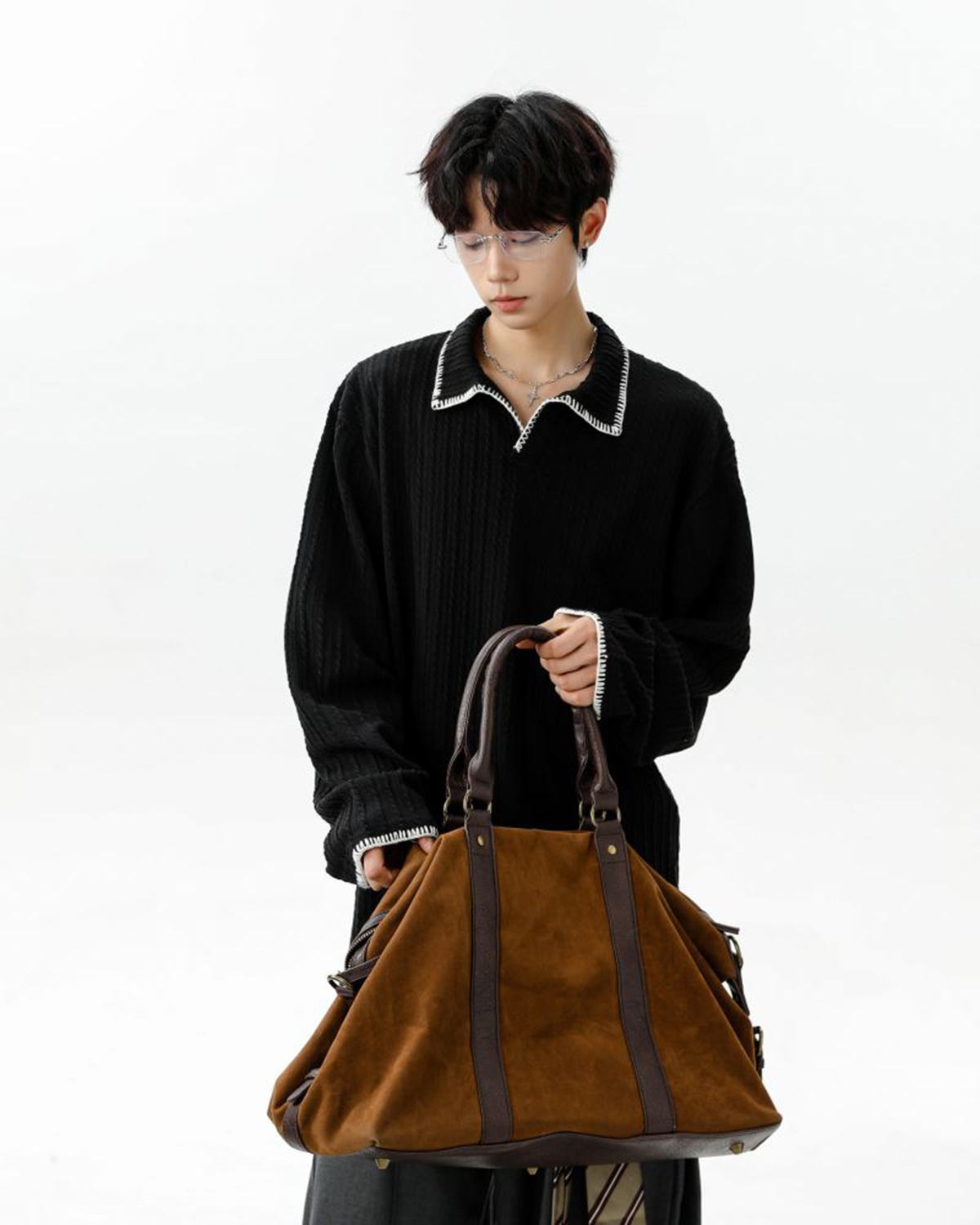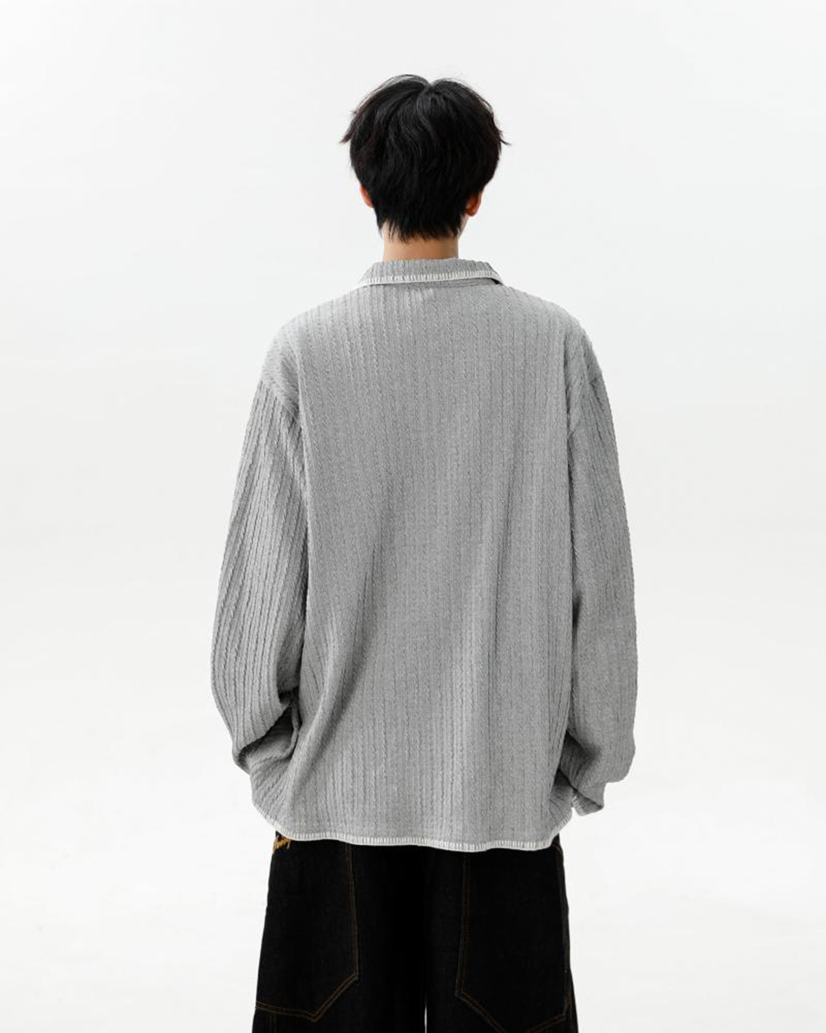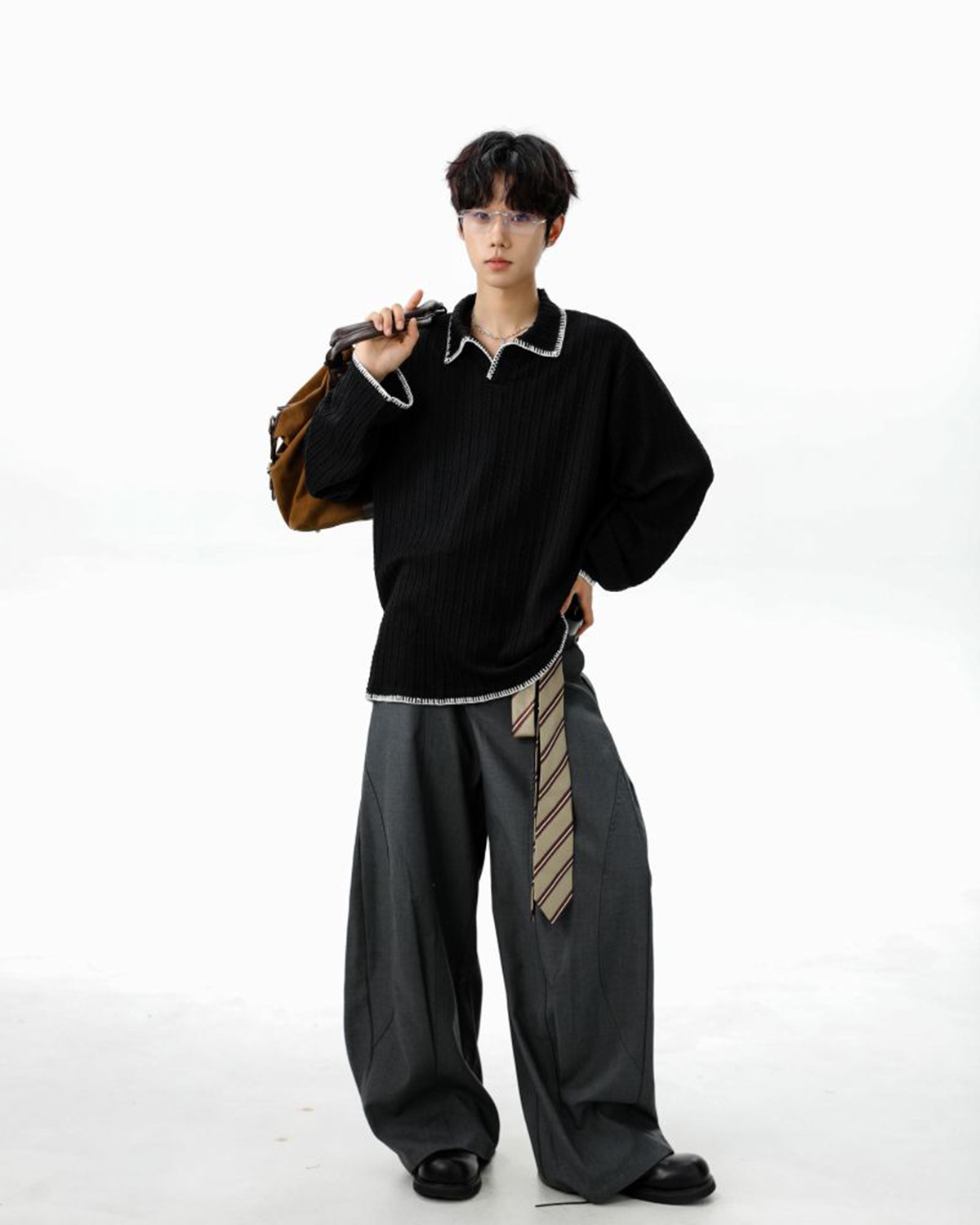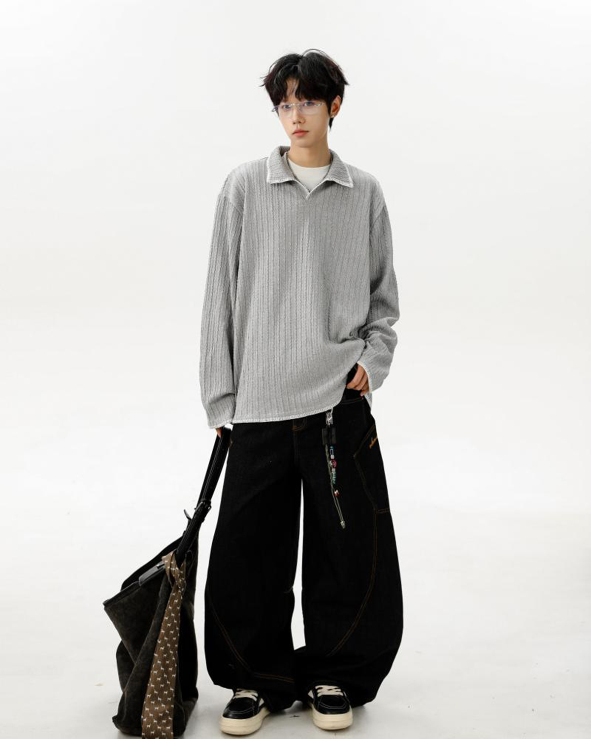 V37老錢風慵懶感翻領打底衛衣男款秋季美式肌理感潮牌撞色長袖T恤