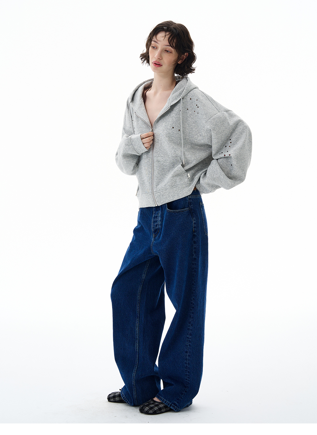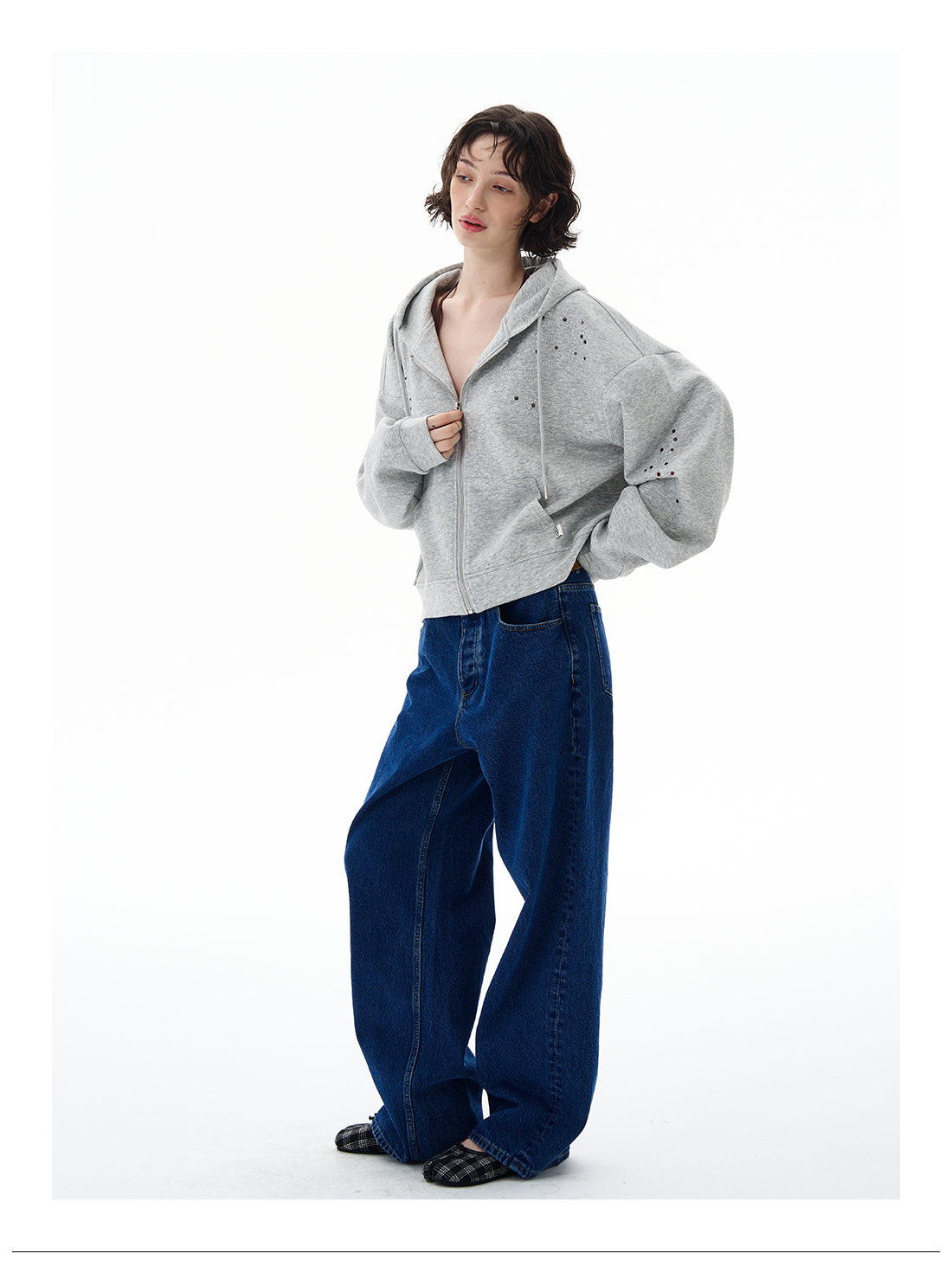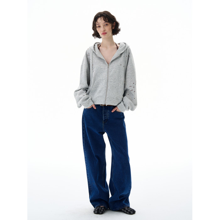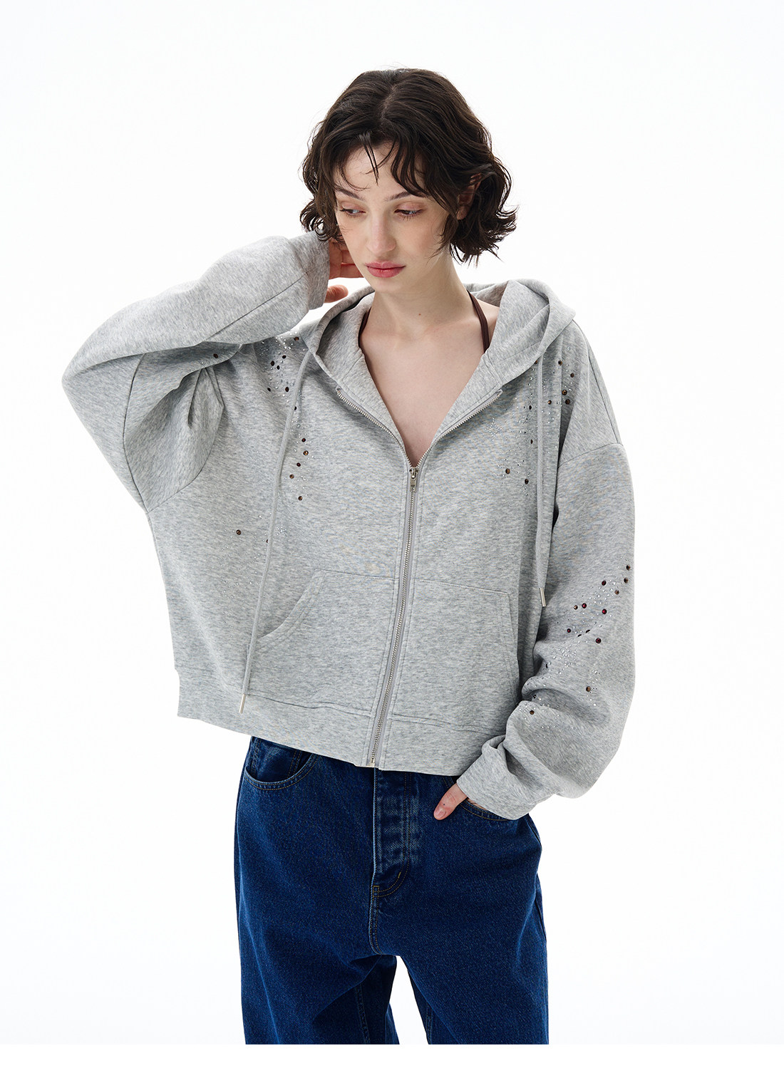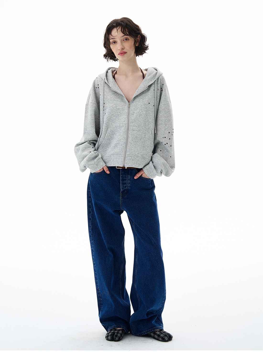 尾郎的店秋冬美式復古燙鑽開衫拉鍊衛衣男女設計感小衆外套情侶潮