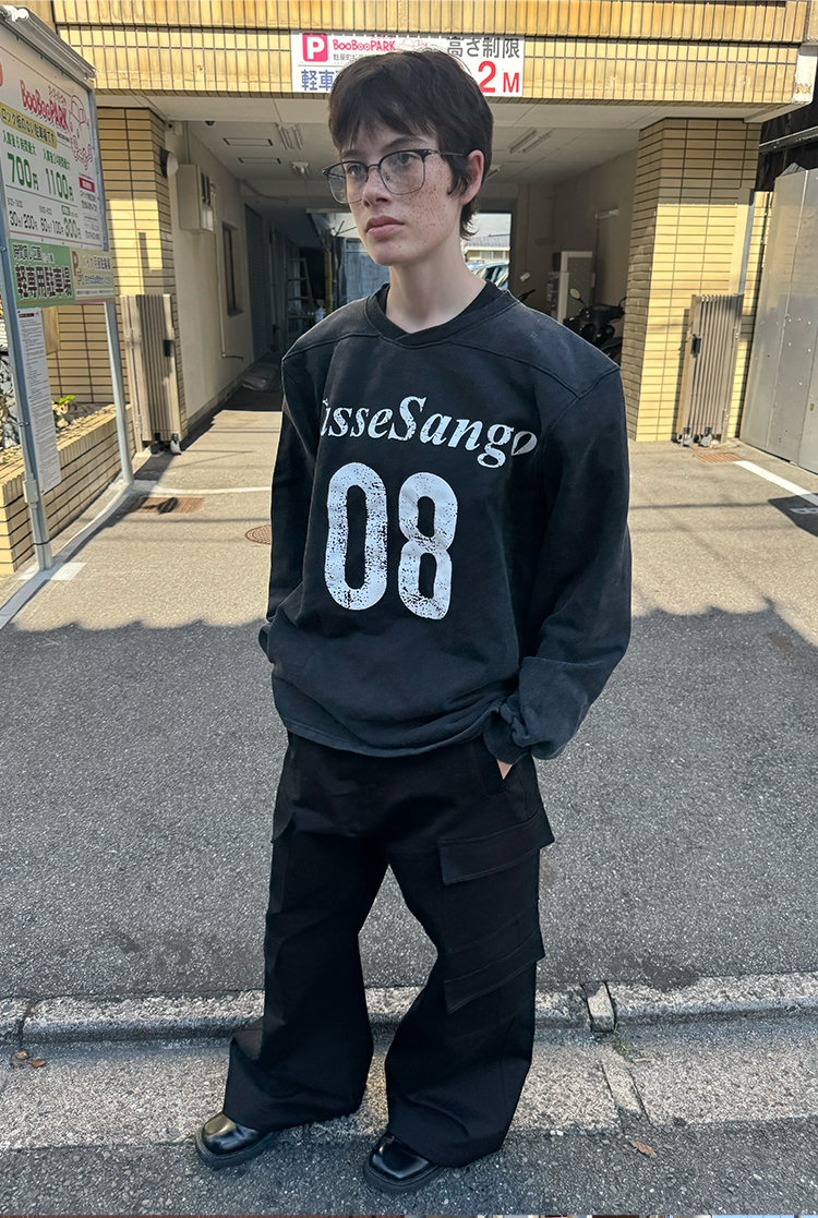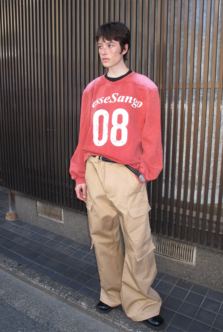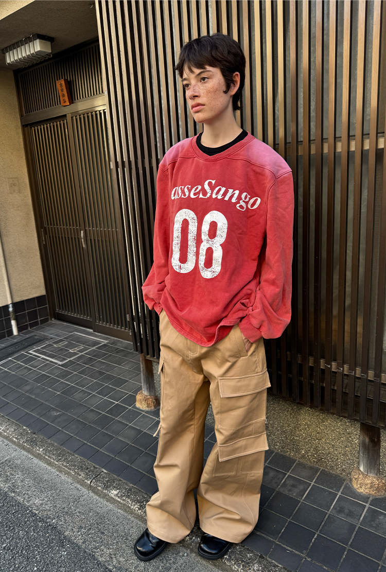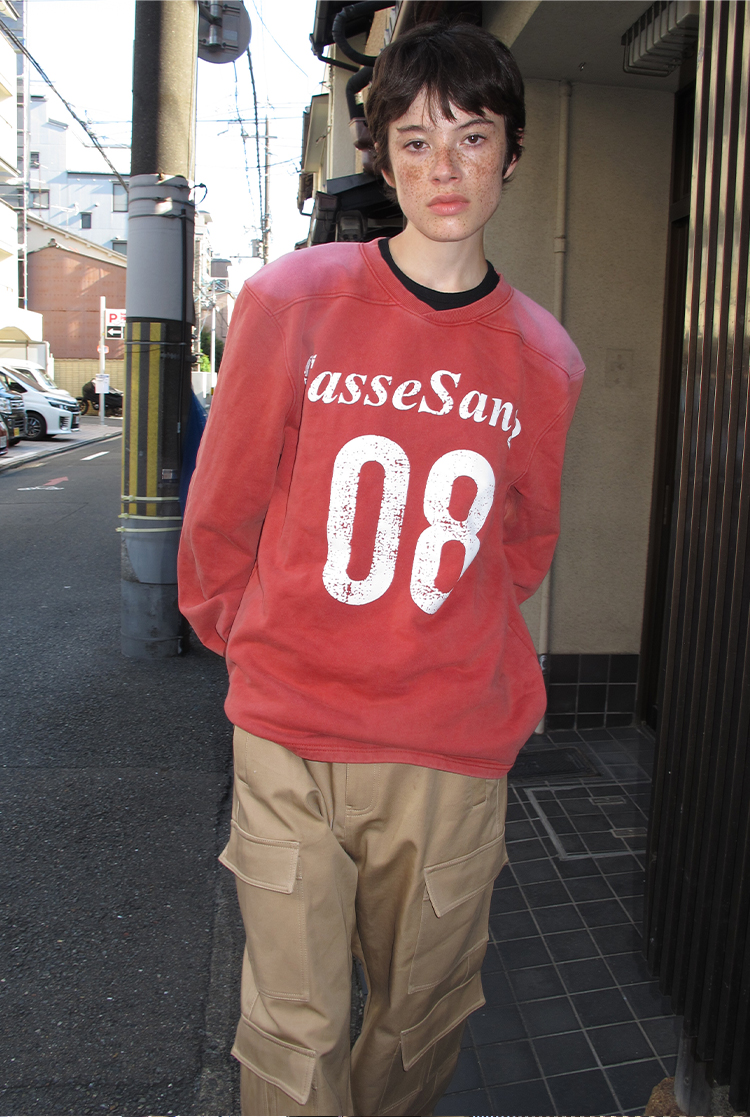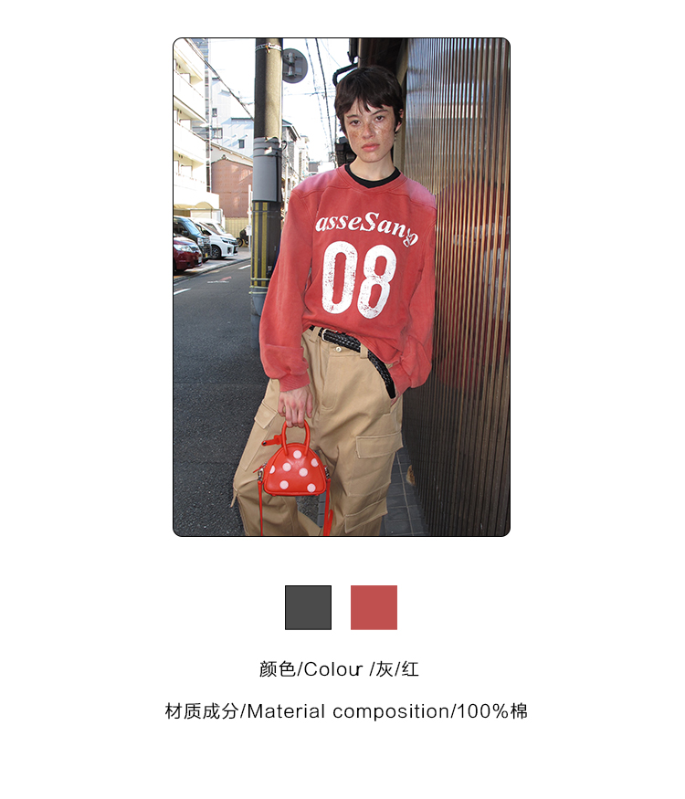 CasseSango 08字母印花美式復古水洗做舊橄欖球服運動寬肩衛衣