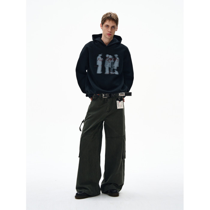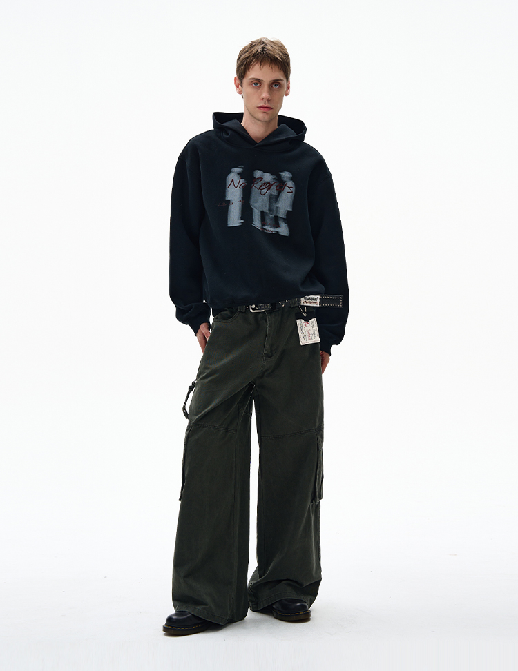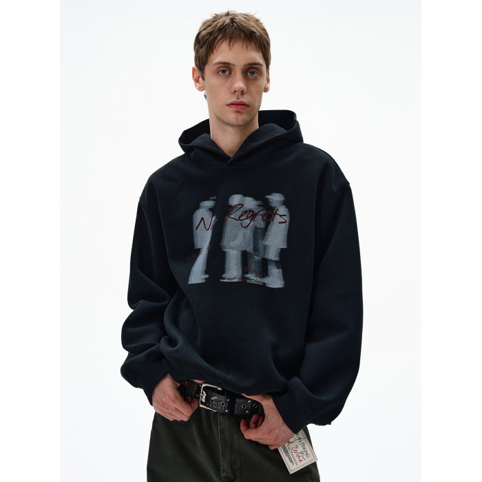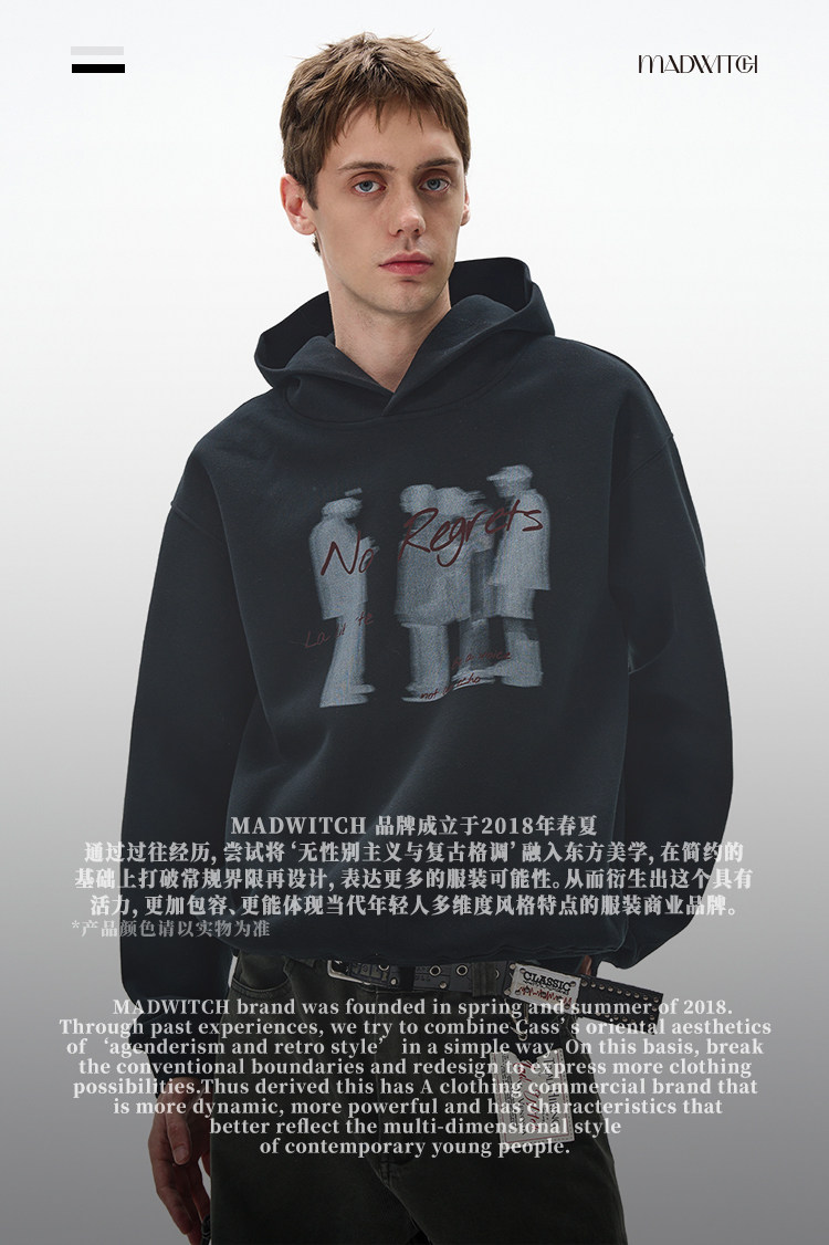 MADWITCH美式幻影人像印花連帽衛衣男女寬松休閒復古街頭情侶帽衫