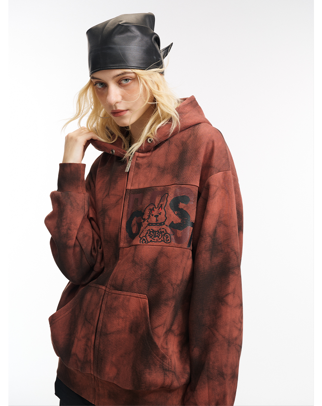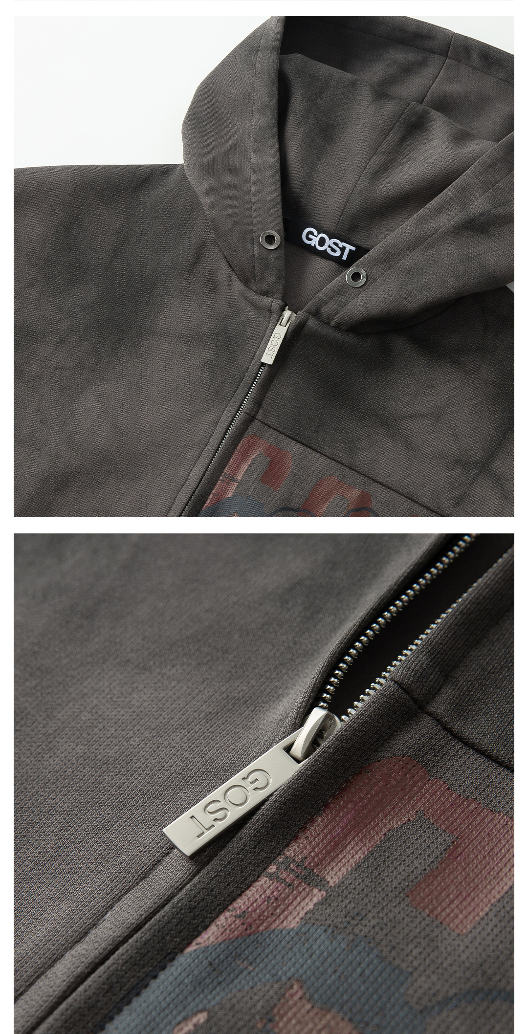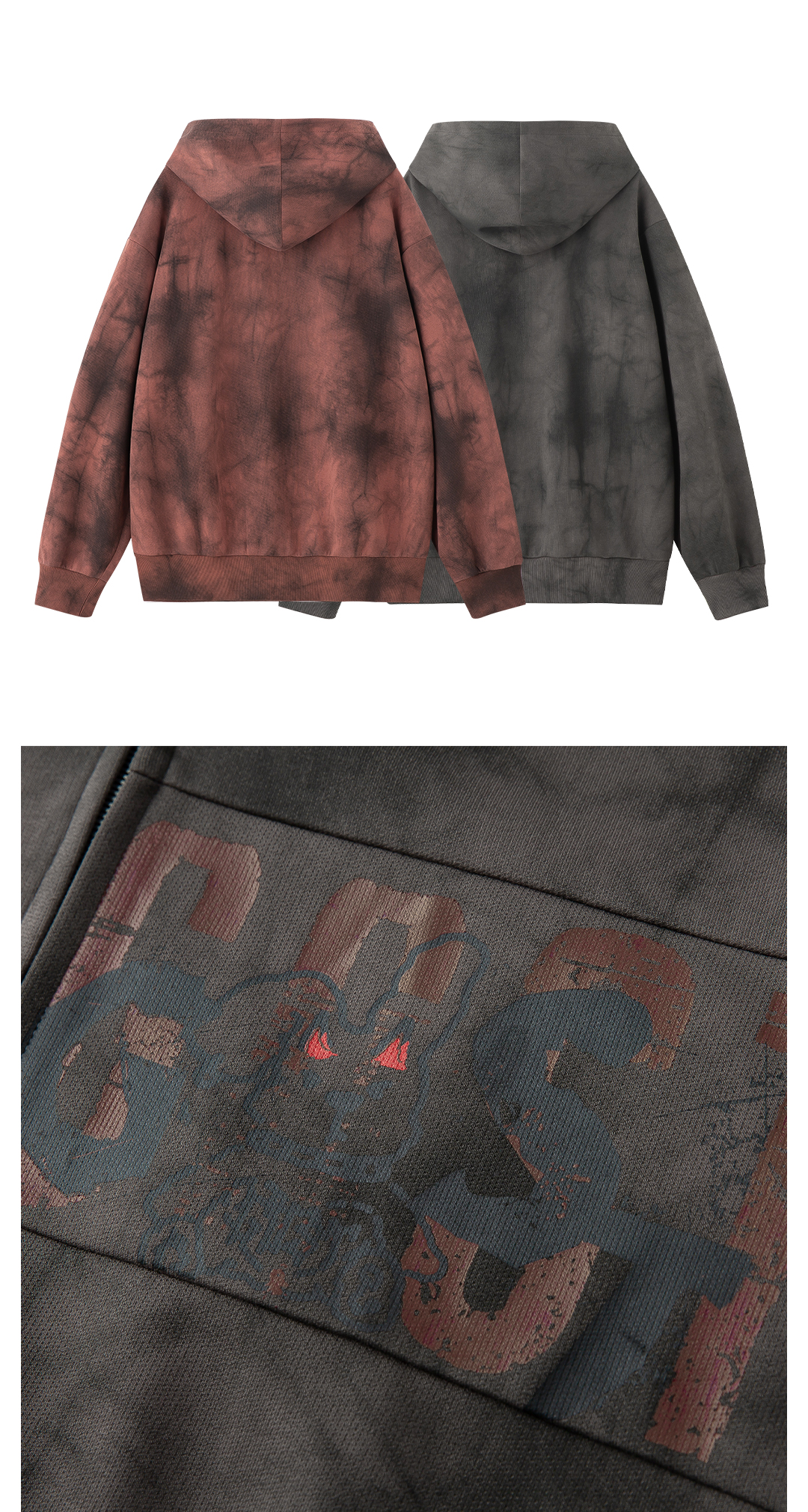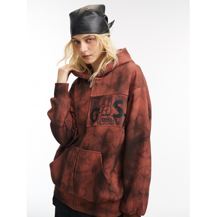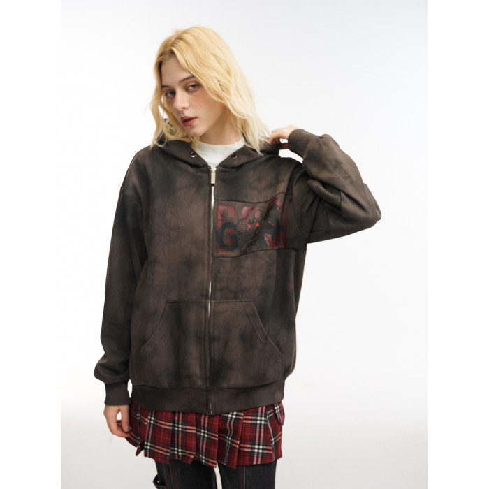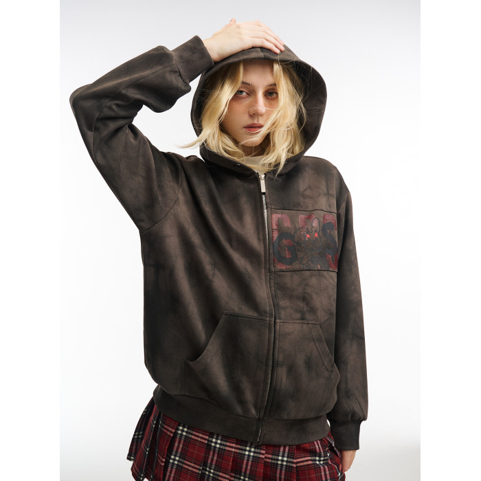 GOST美式復古惡魔角小兔斑駁迷彩拉鍊衛衣女連帽衫情侶款開衫外套