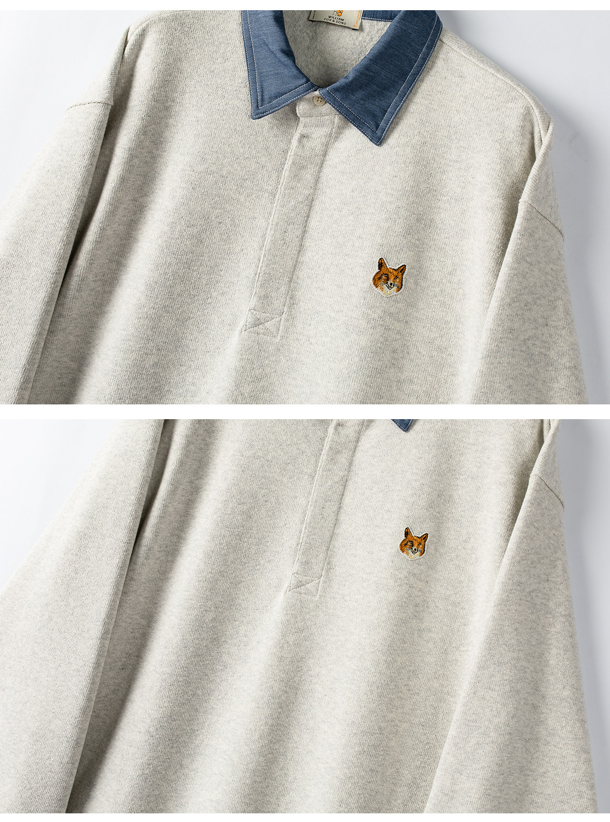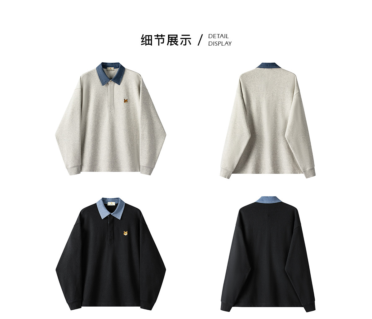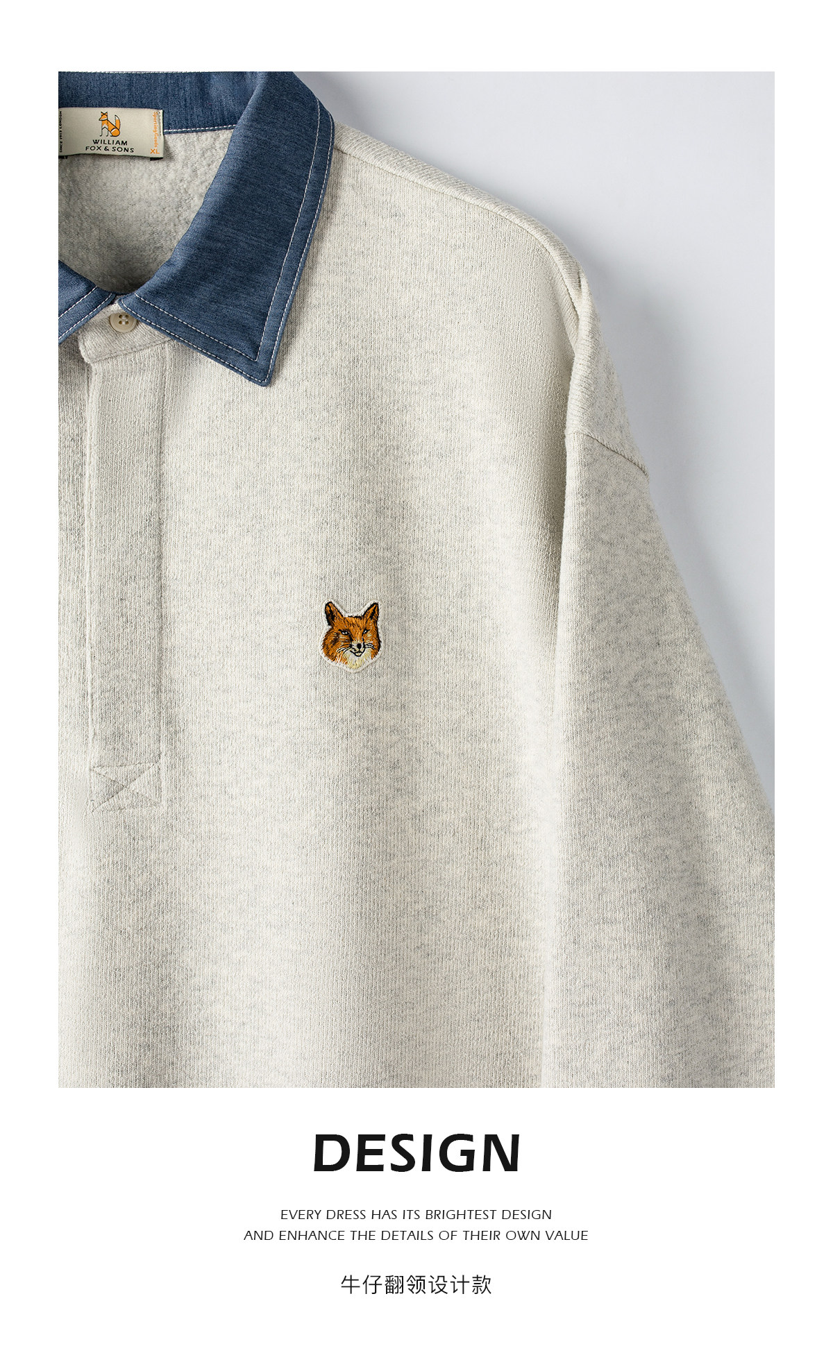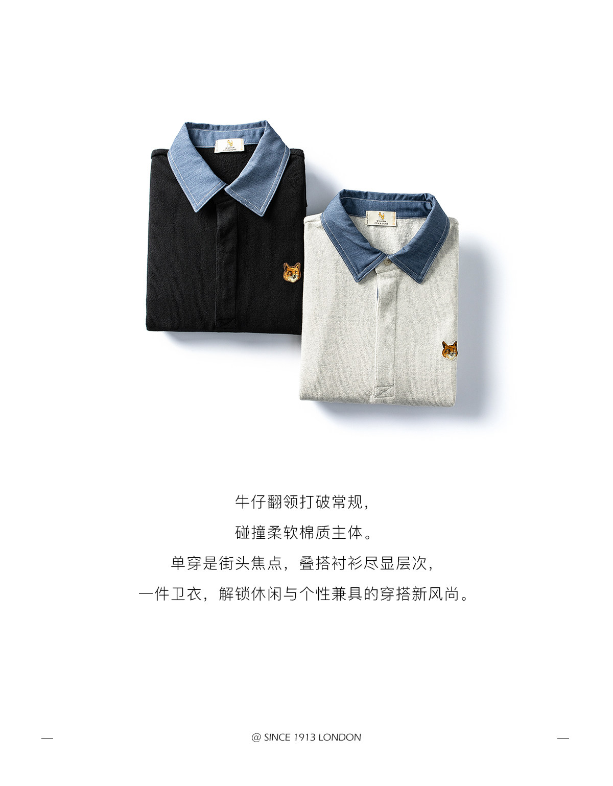 英國小狐狸2025年秋季都市學院風撞色襯衫翻領親膚短絨衛衣男女款