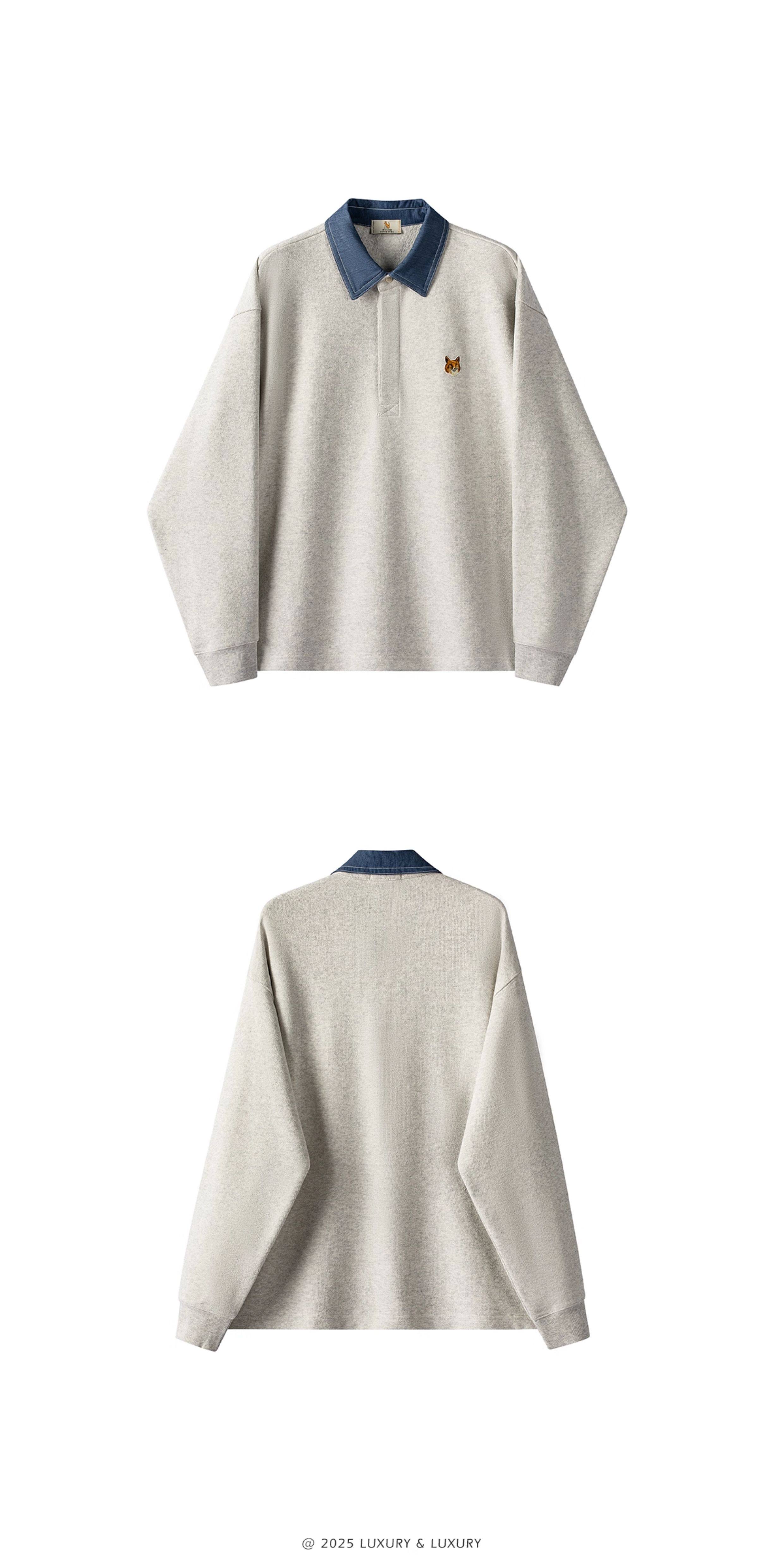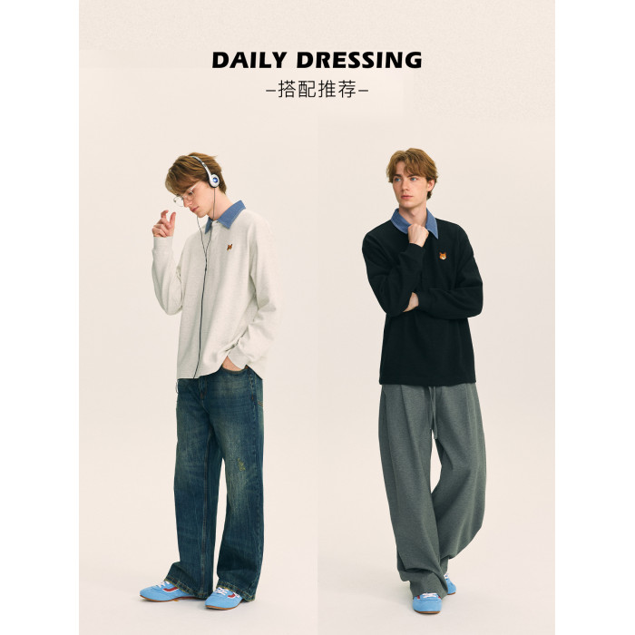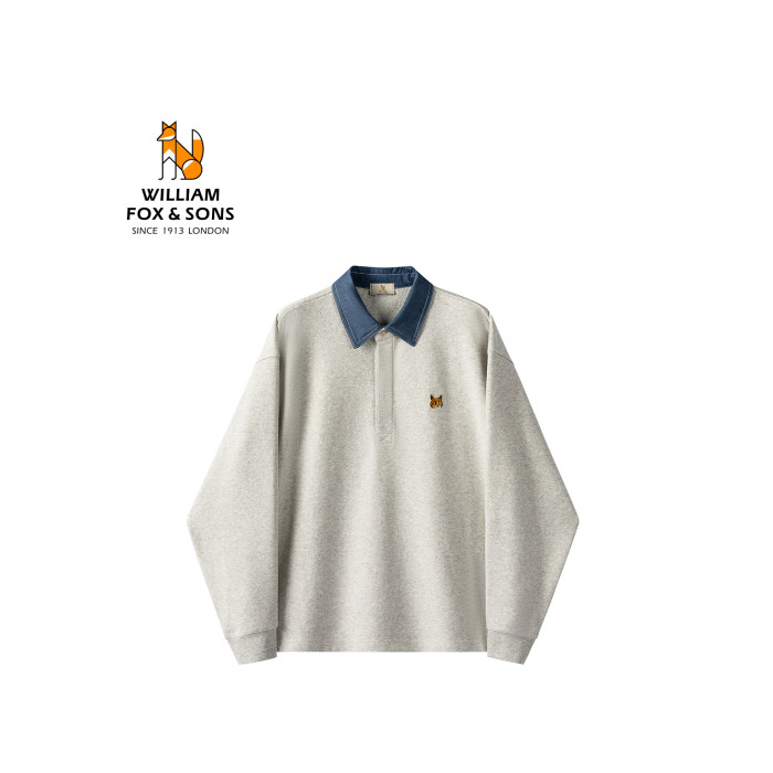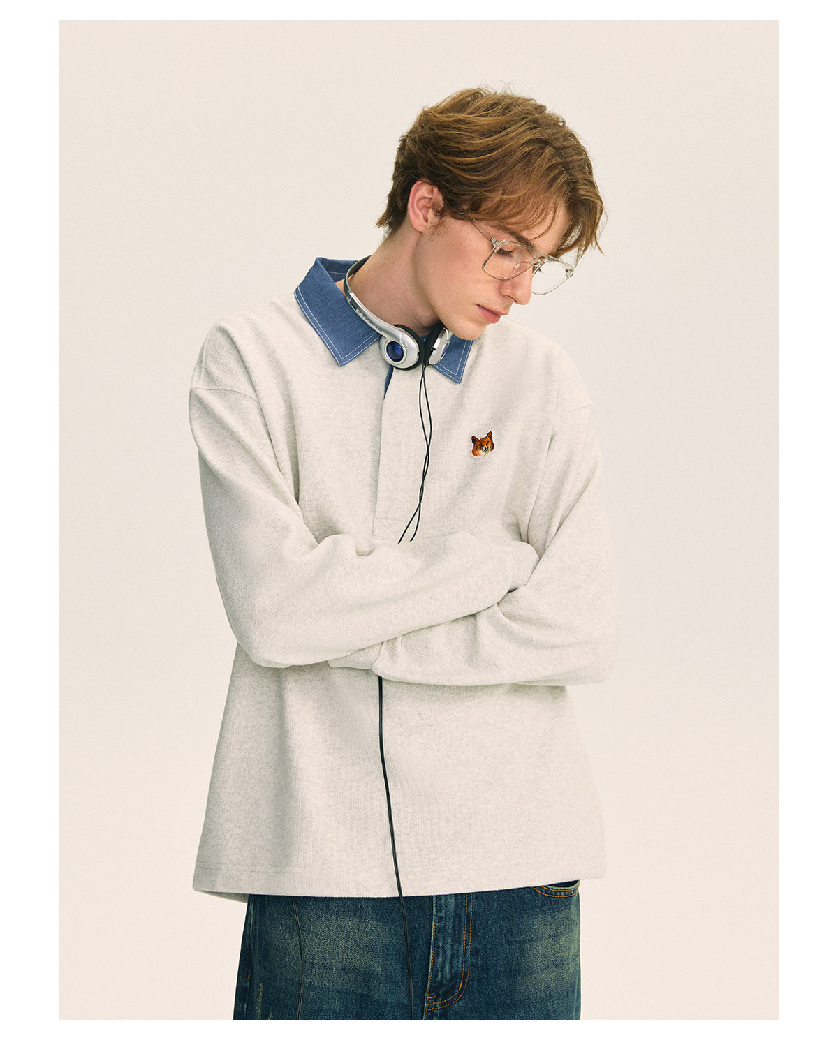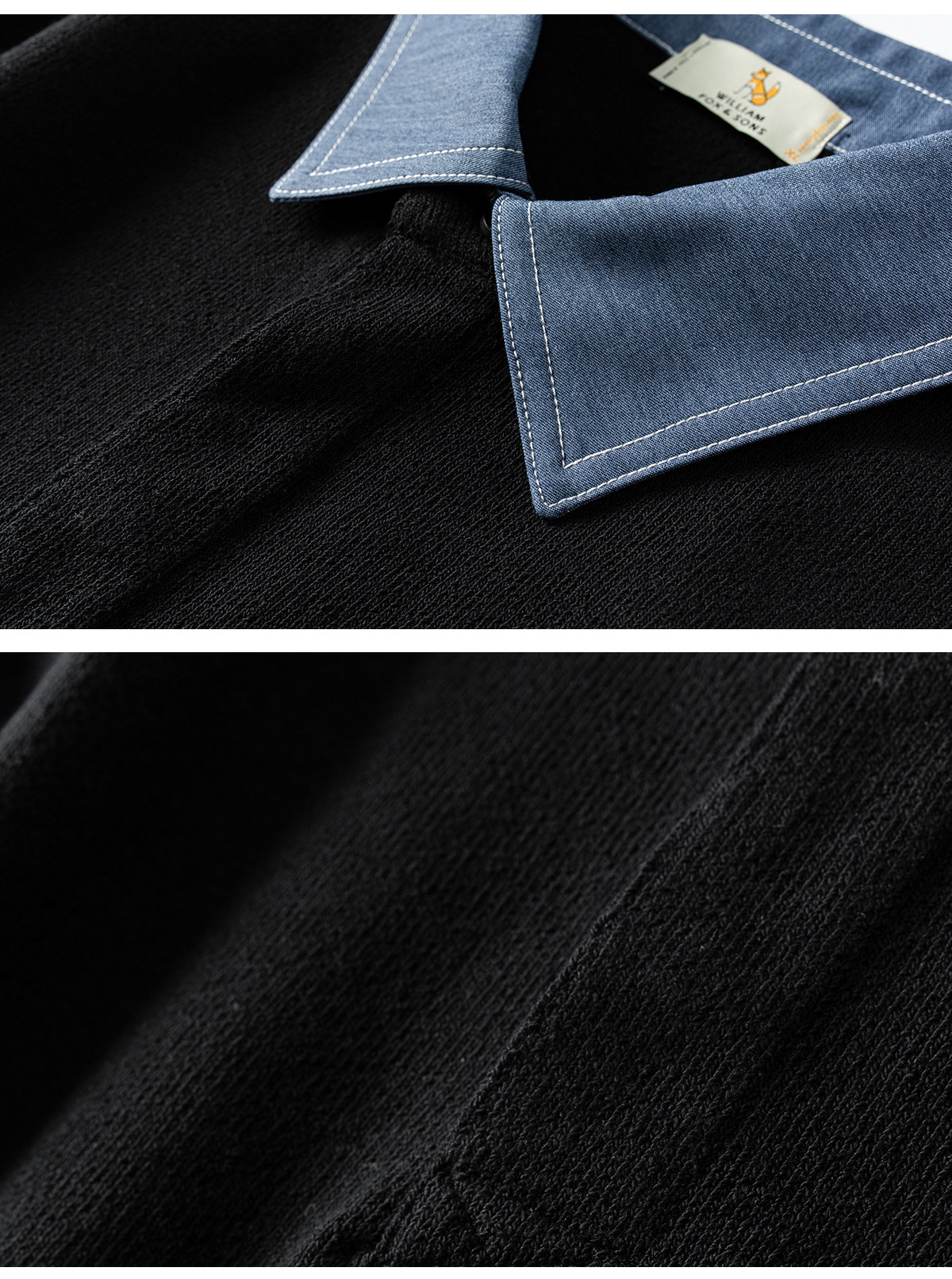 英國小狐狸2025年秋季都市學院風撞色襯衫翻領親膚短絨衛衣男女款