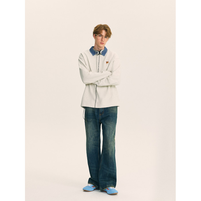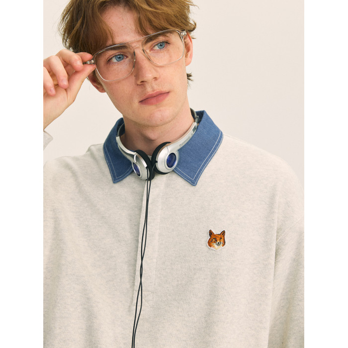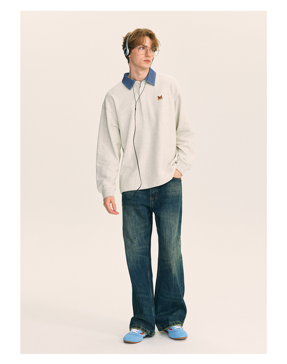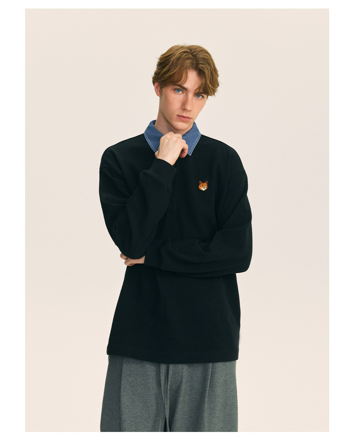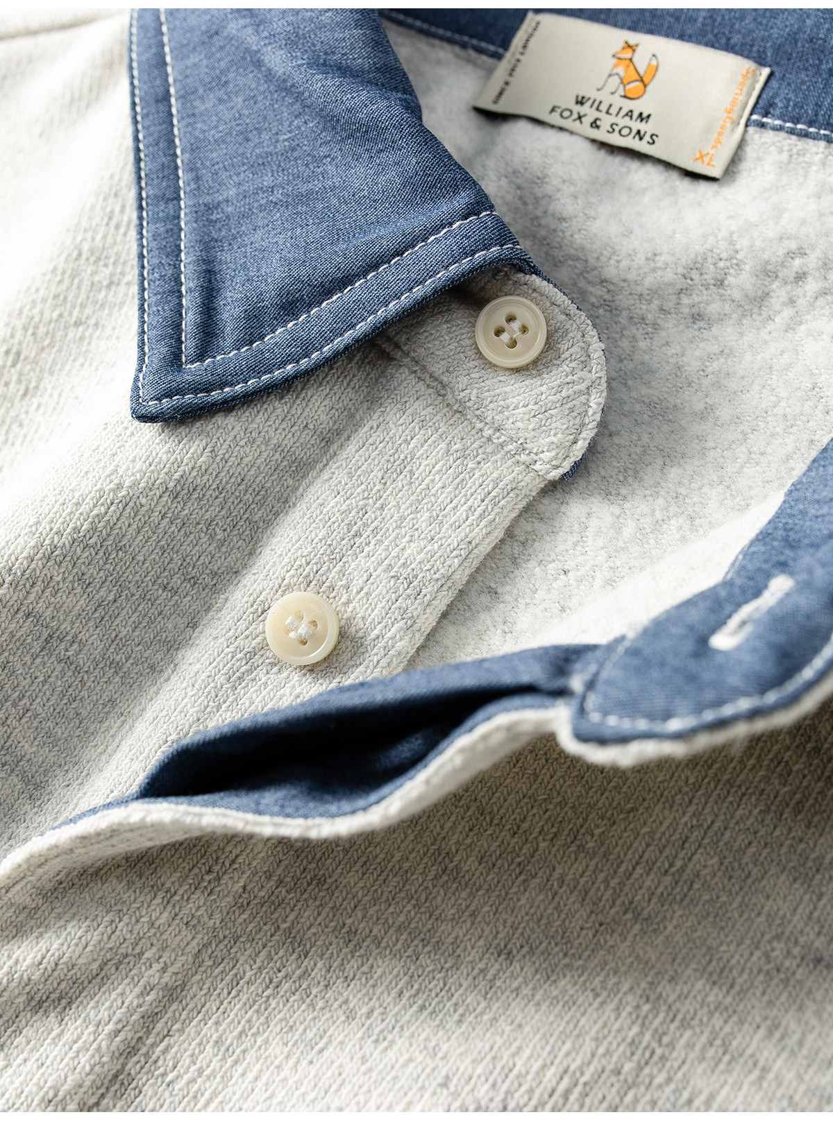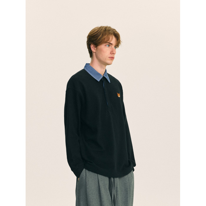 英國小狐狸2025年秋季都市學院風撞色襯衫翻領親膚短絨衛衣男女款