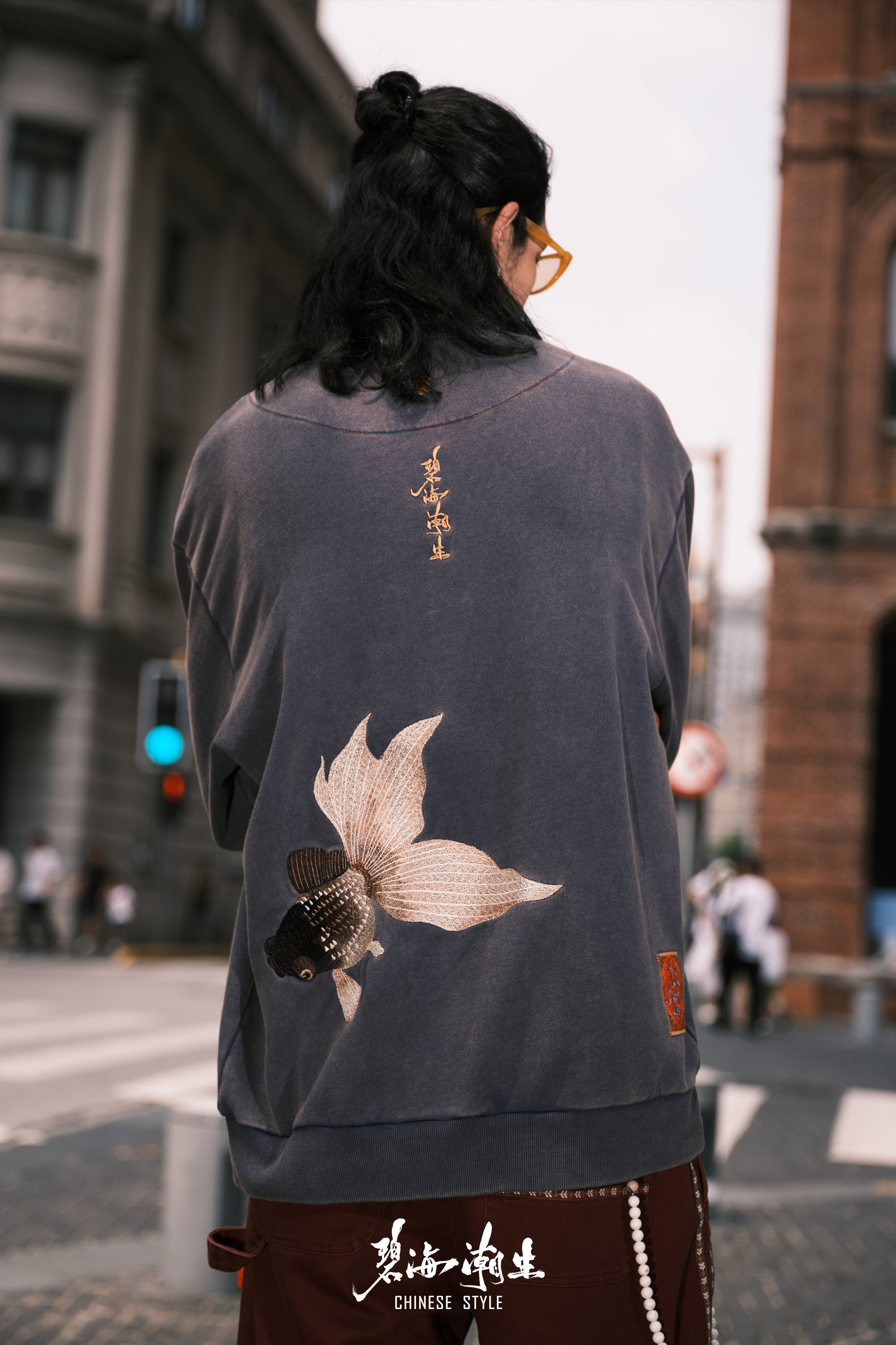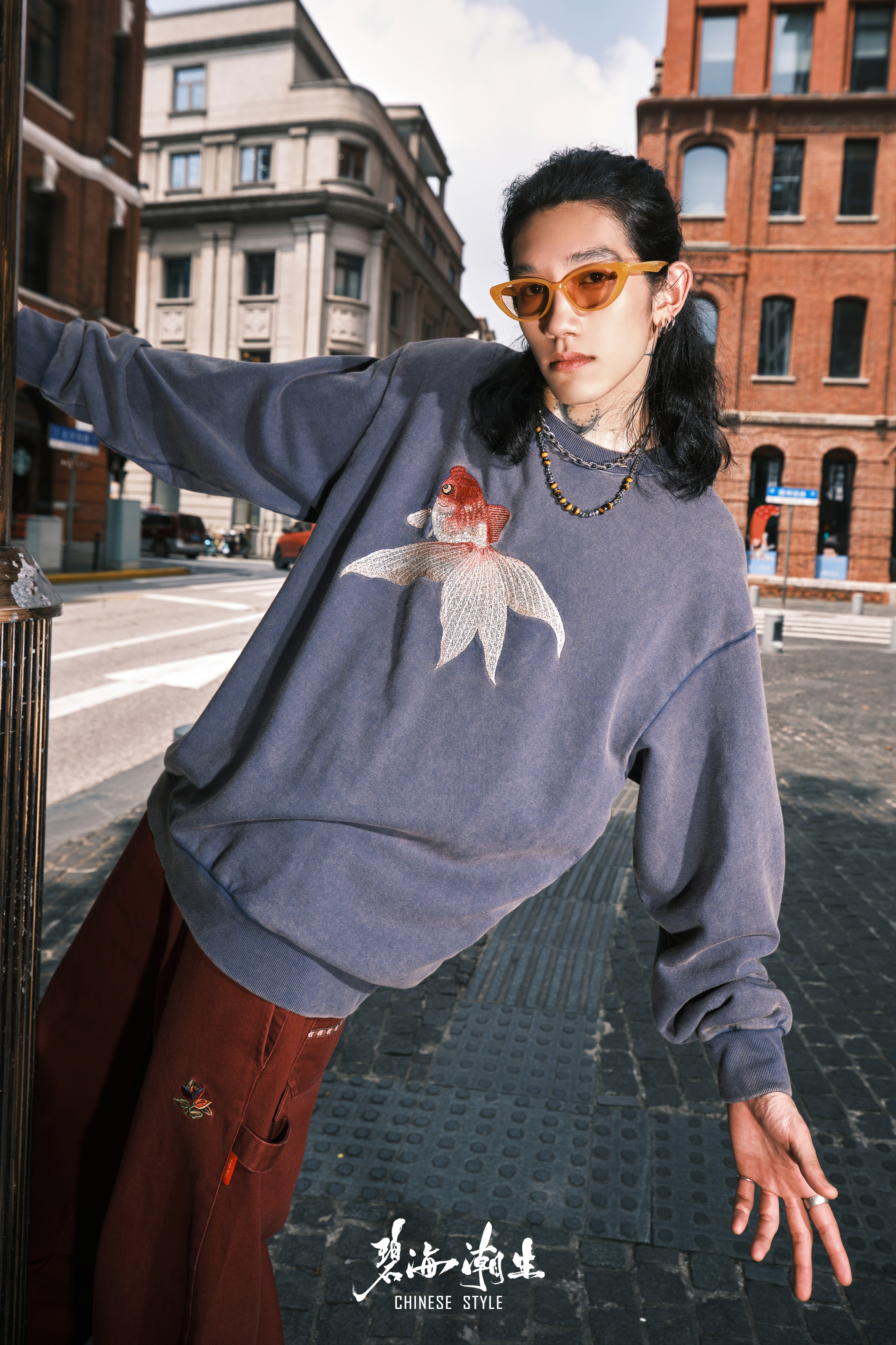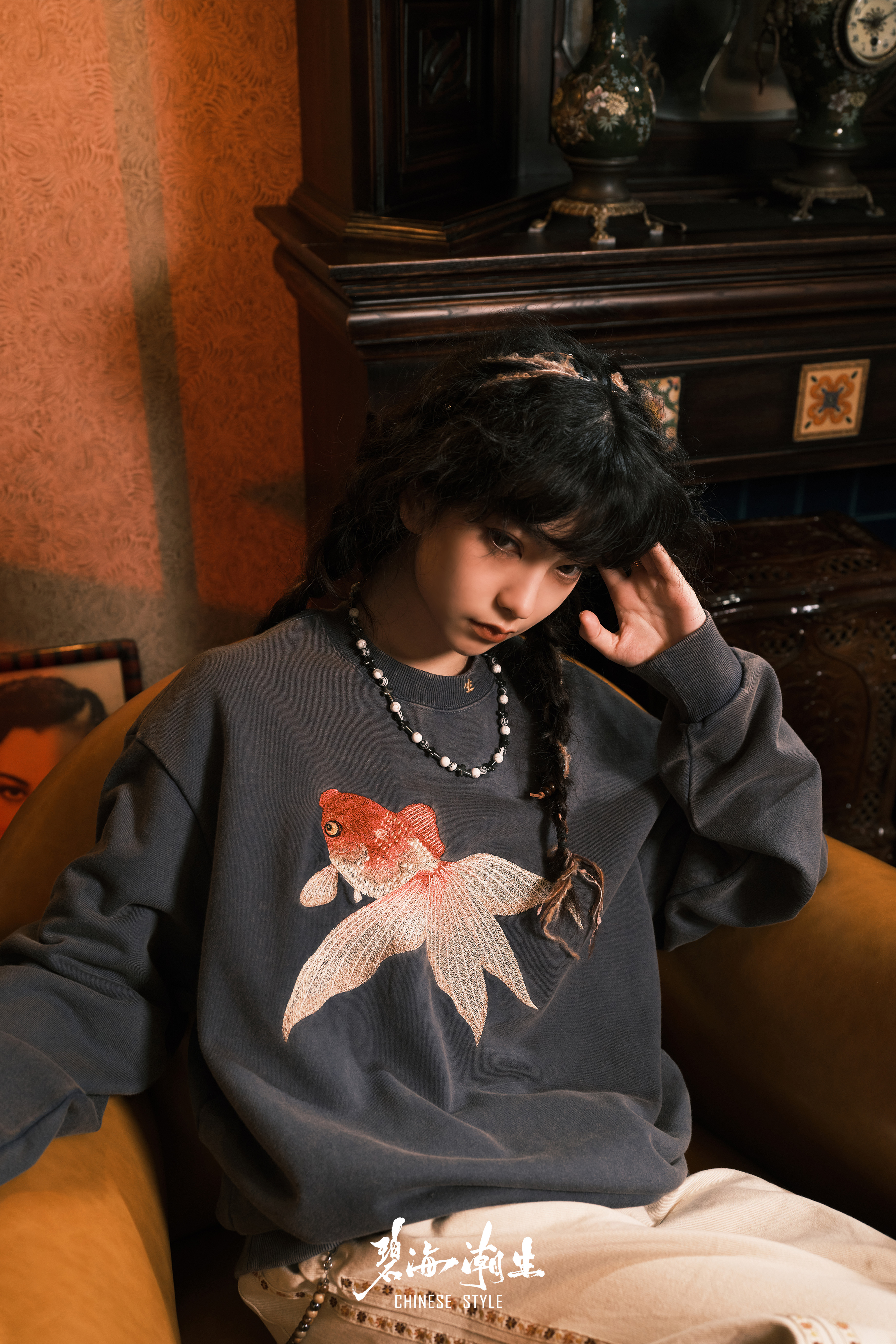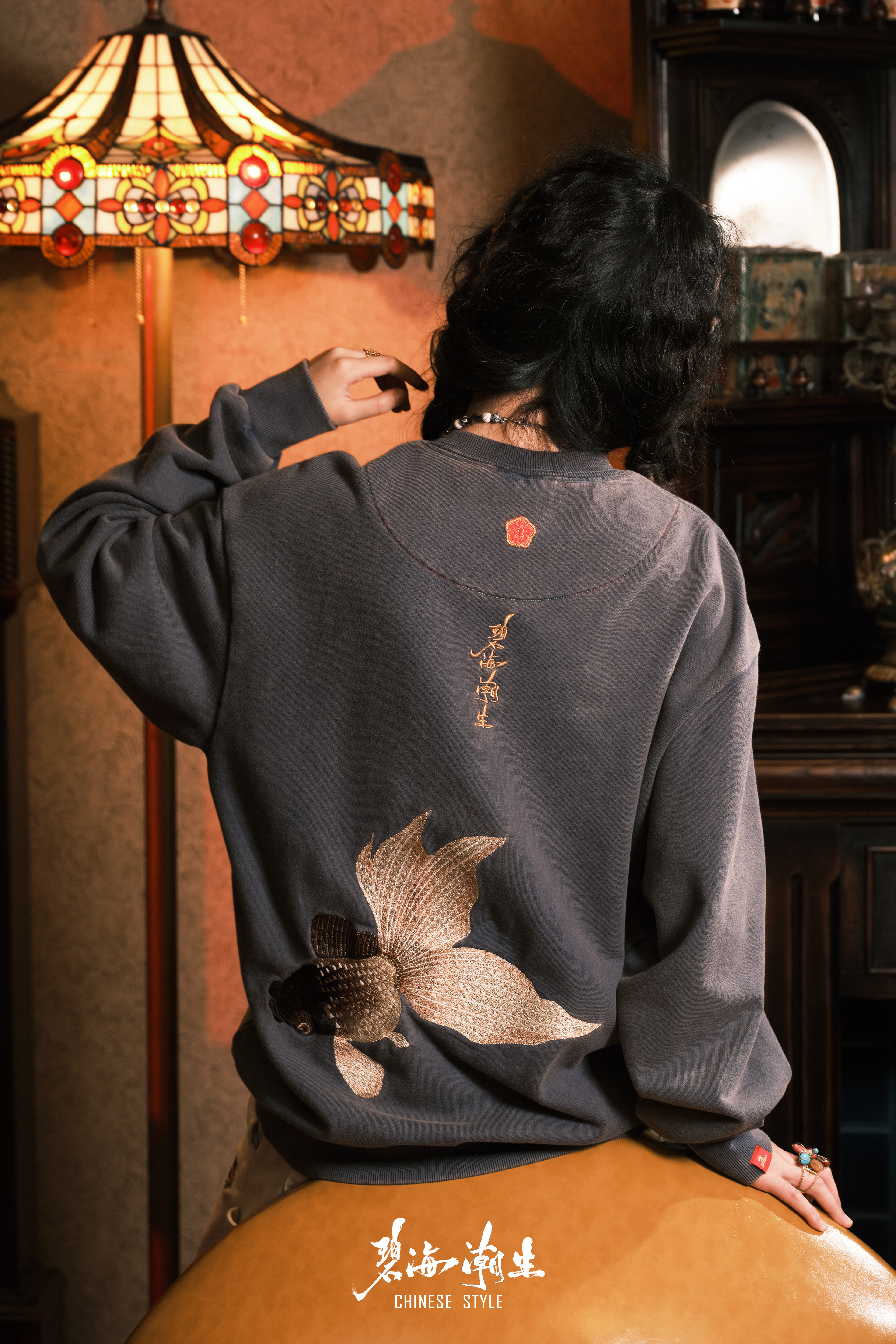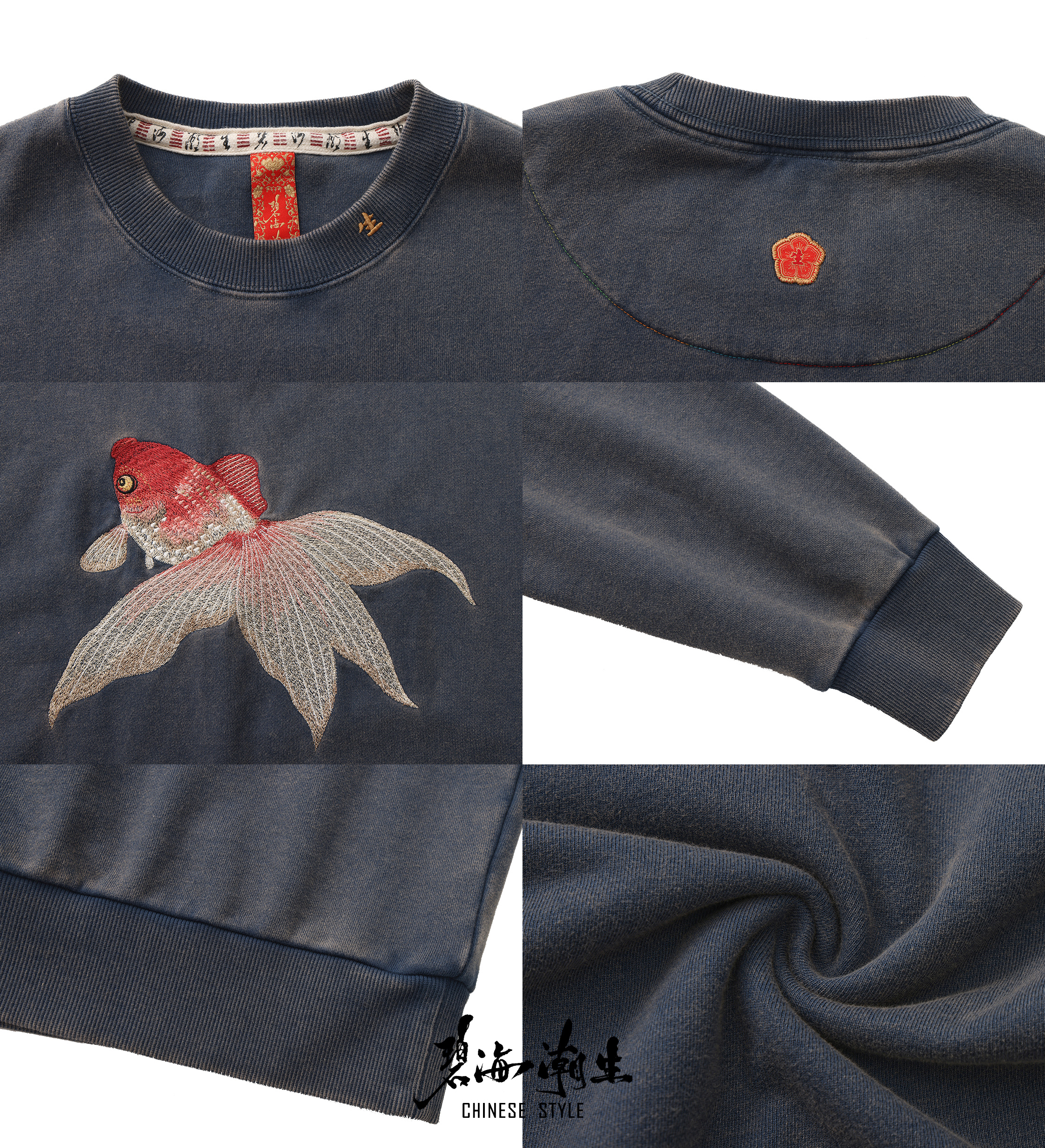 碧海潮生【金玉滿堂•藍】秋冬新款風國潮刺綉套頭圓領衛衣