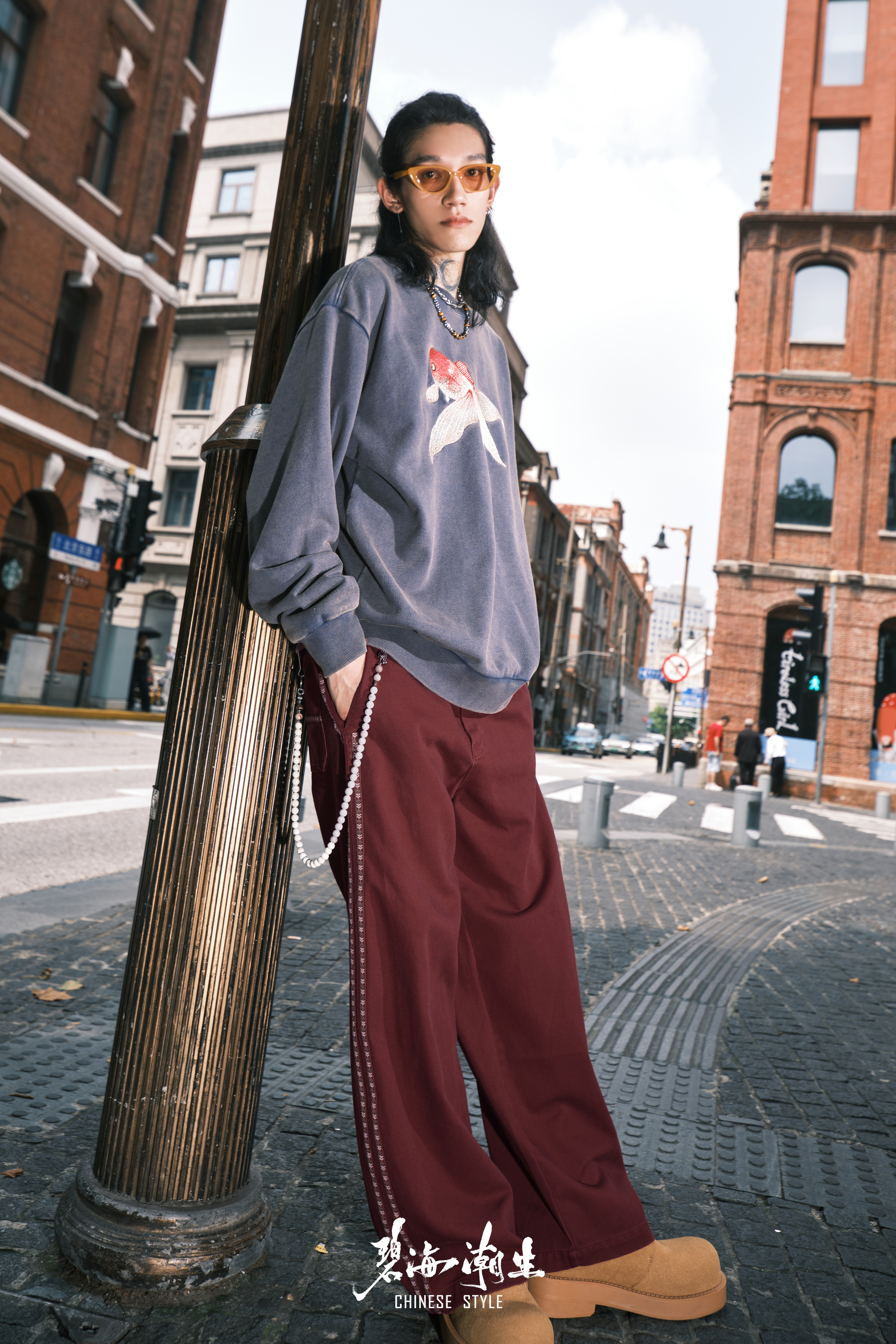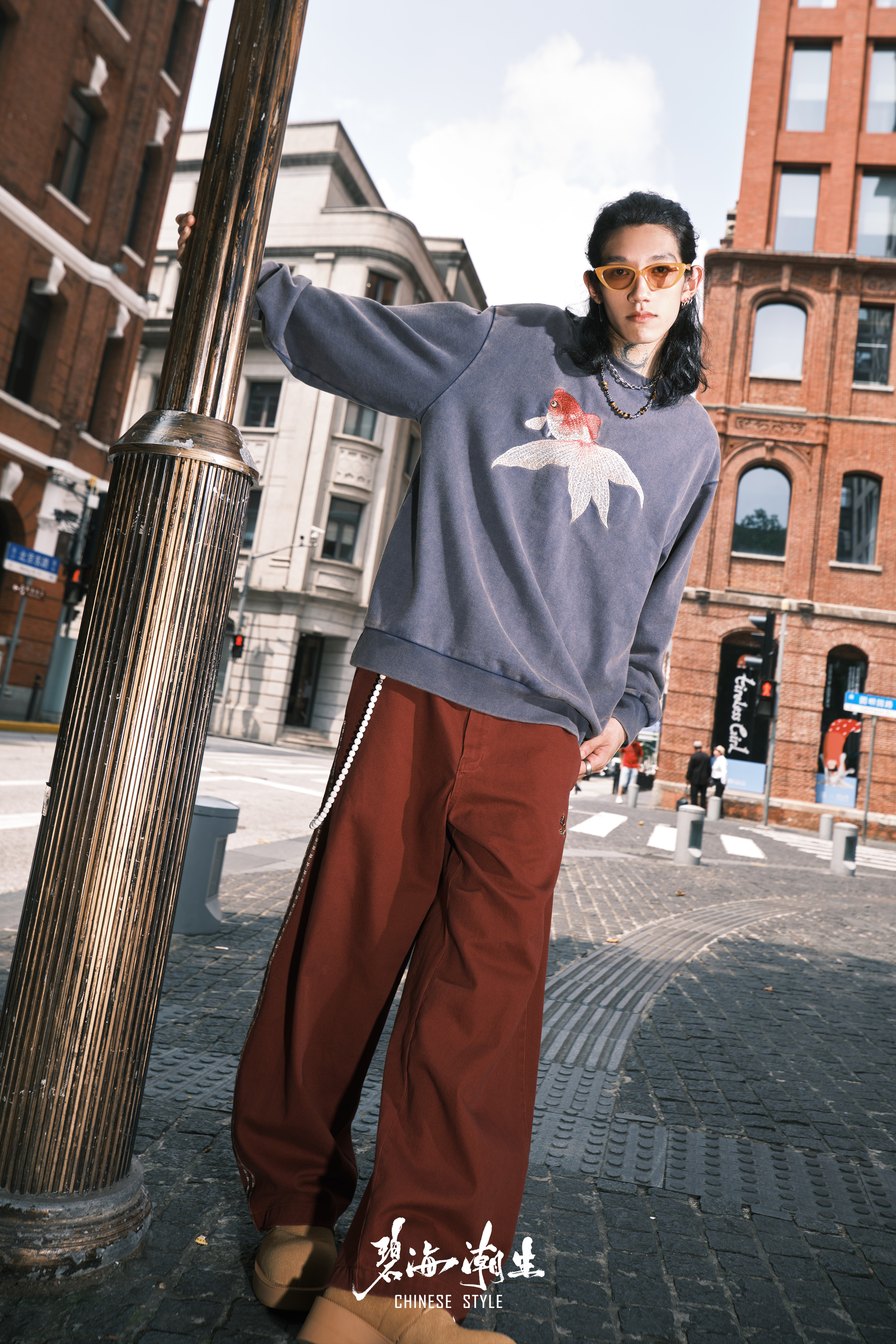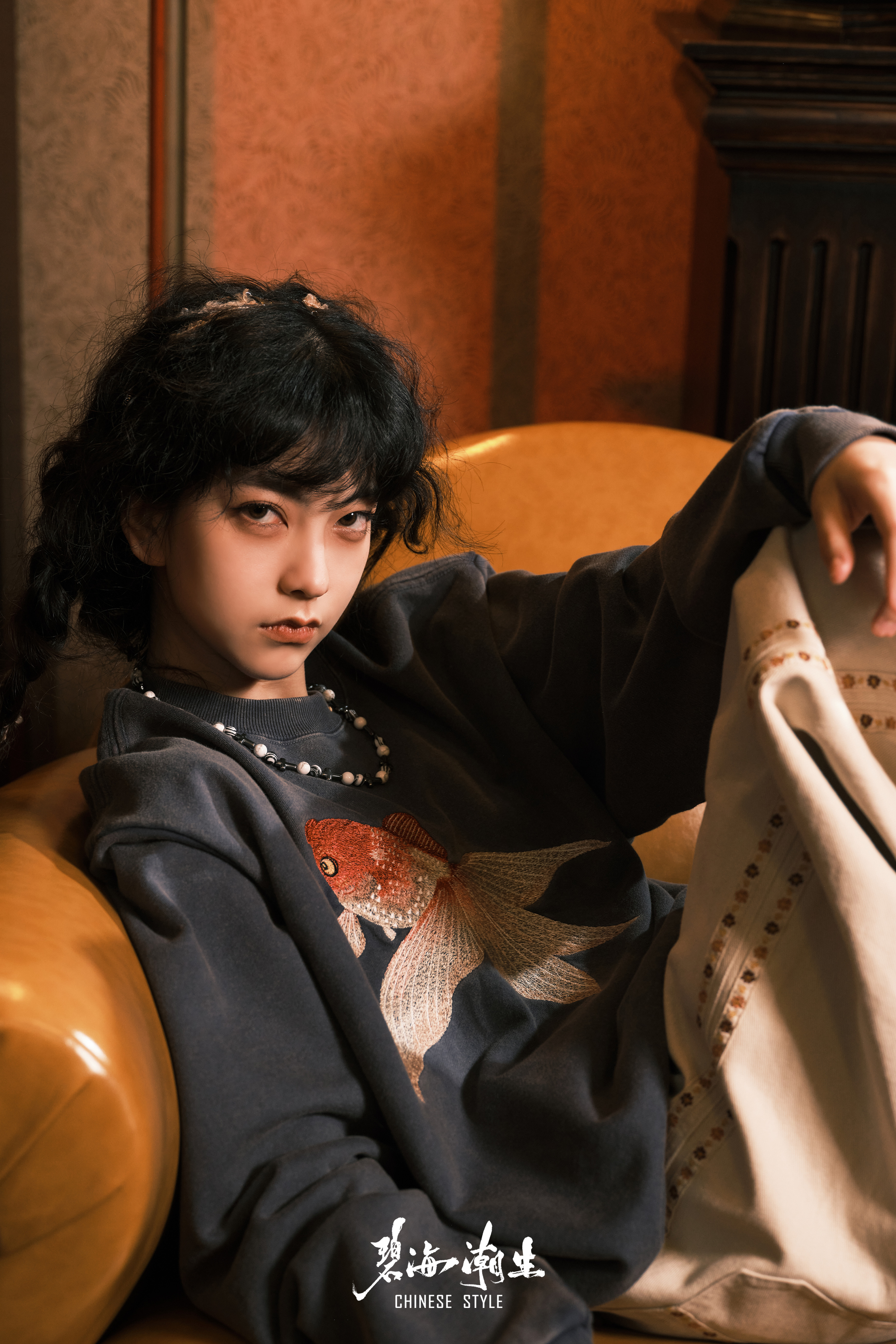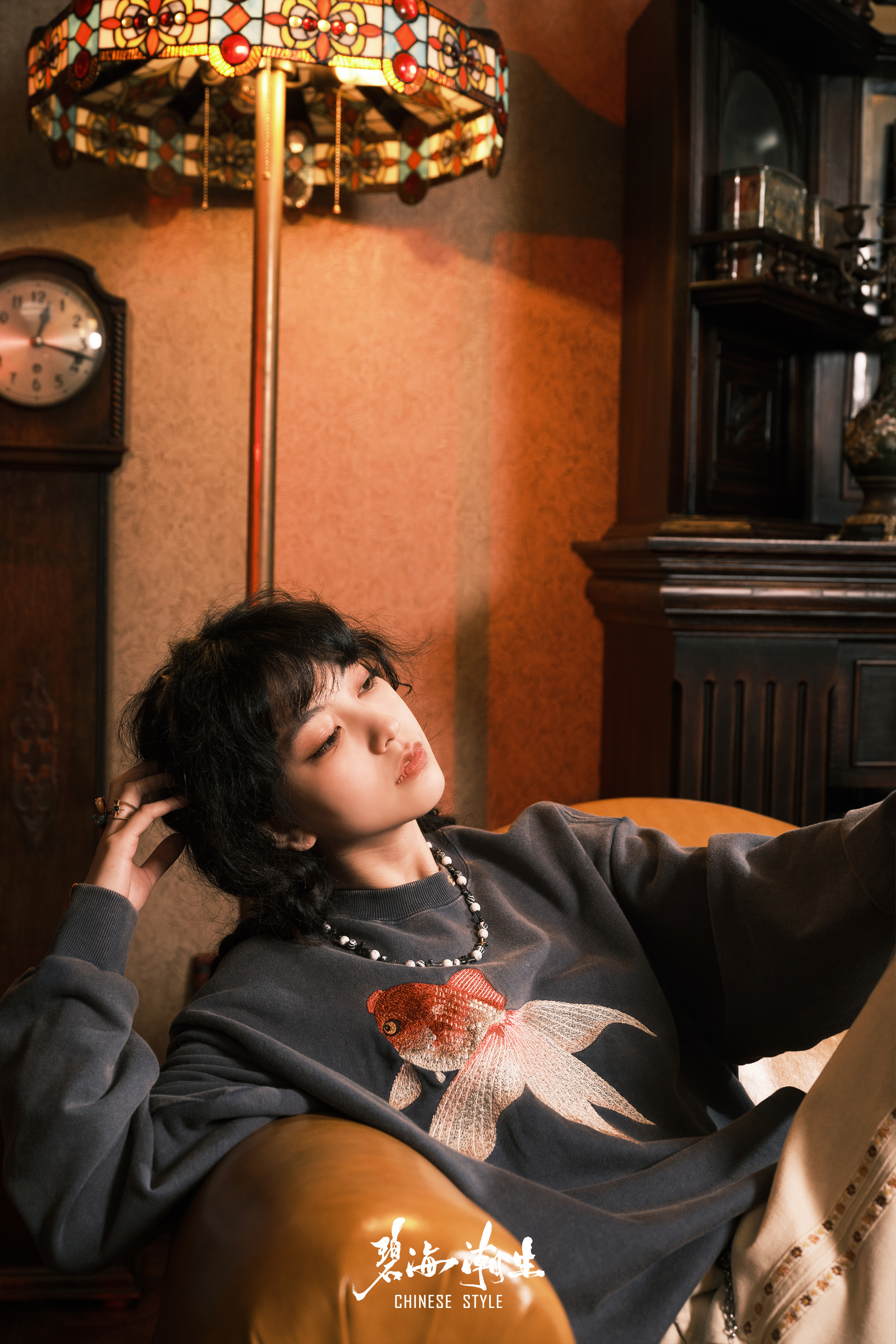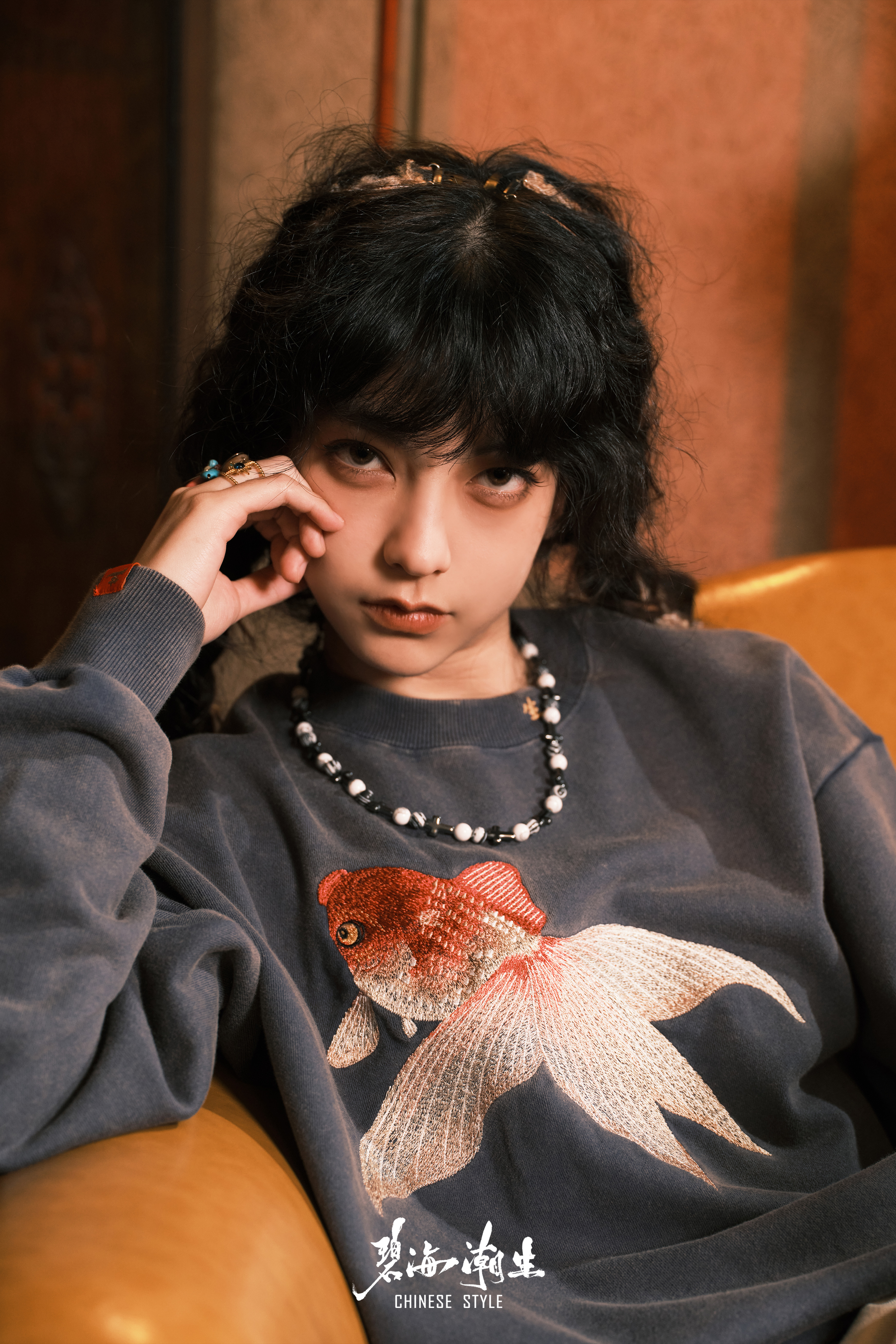 碧海潮生【金玉滿堂•藍】秋冬新款風國潮刺綉套頭圓領衛衣