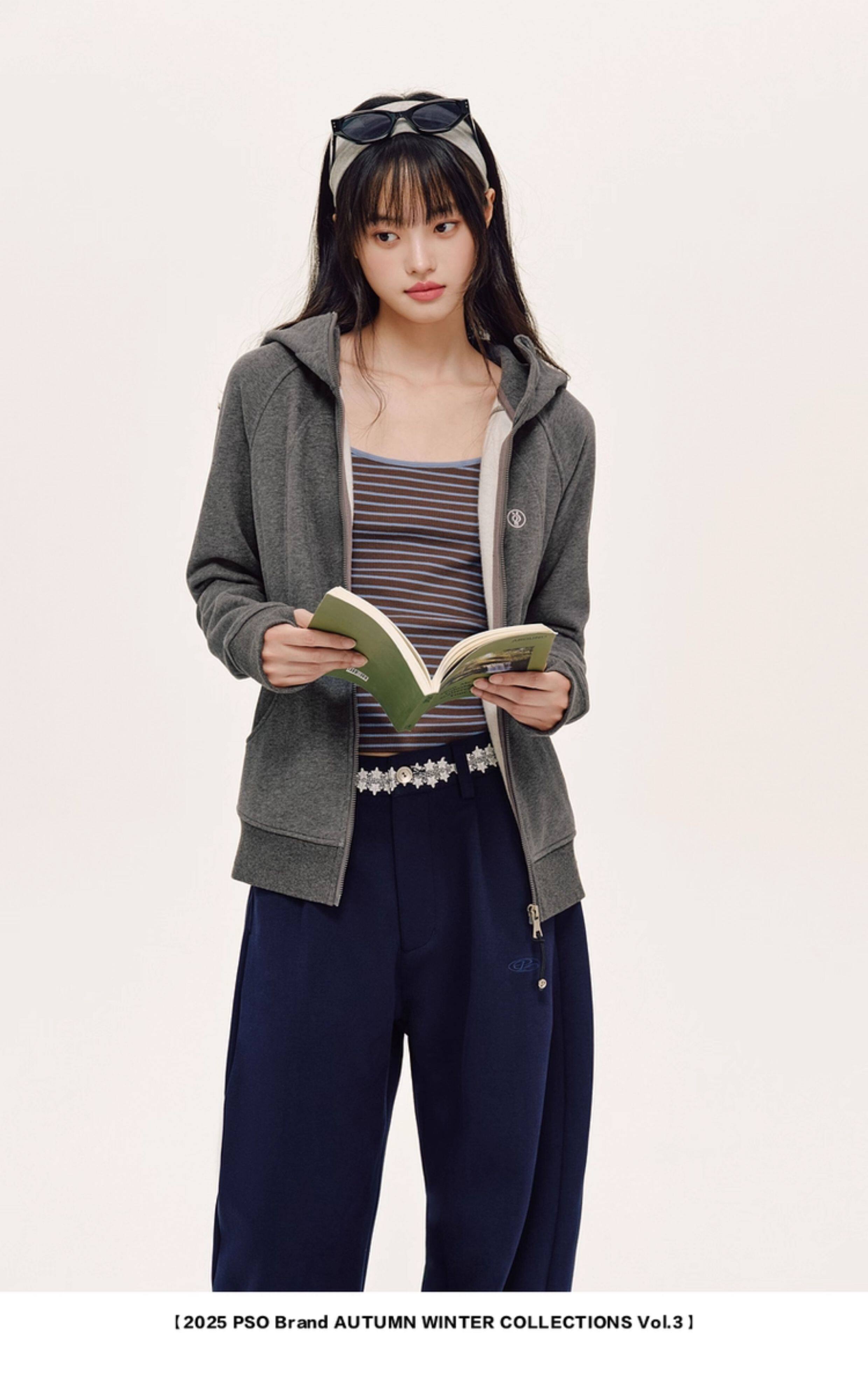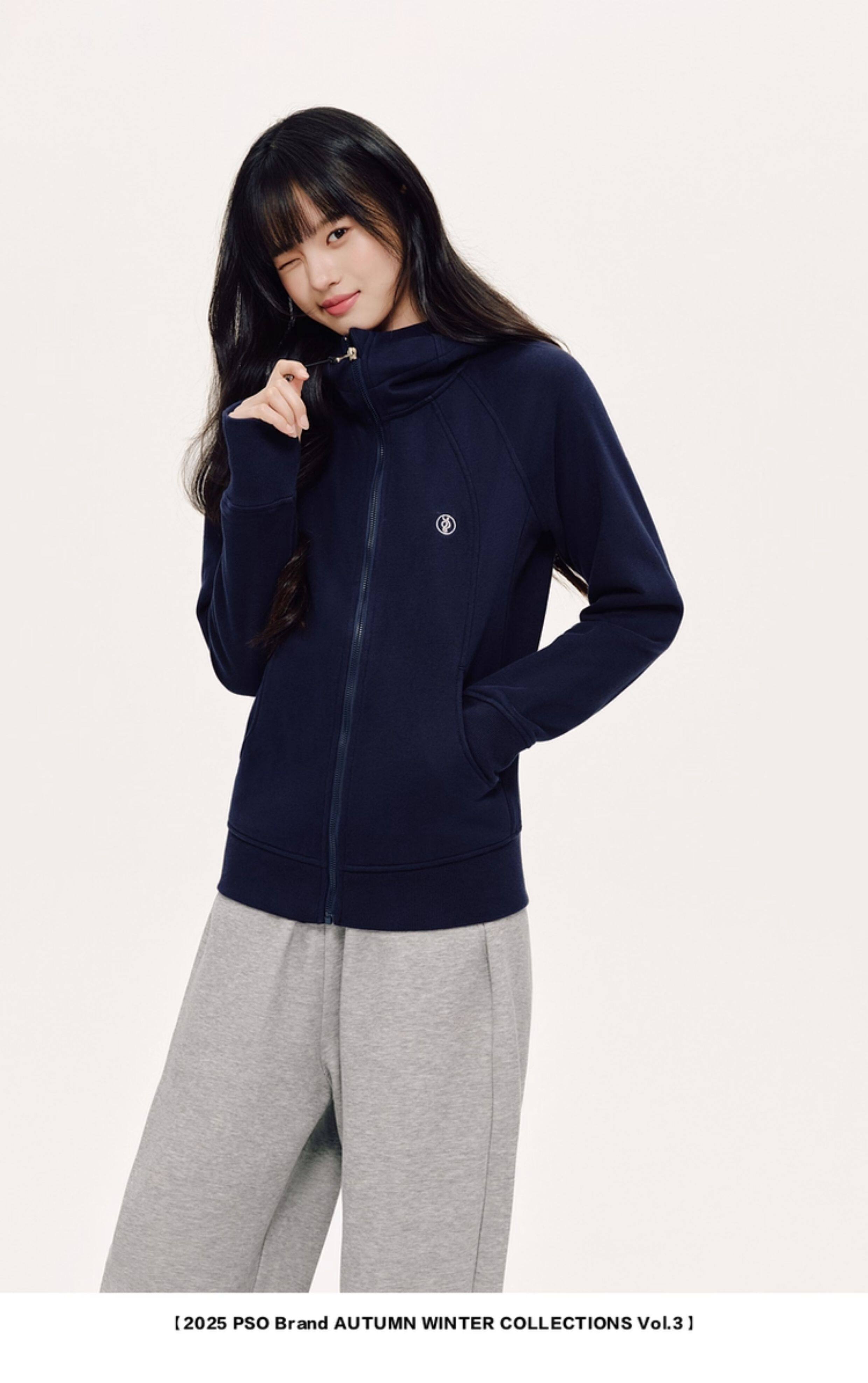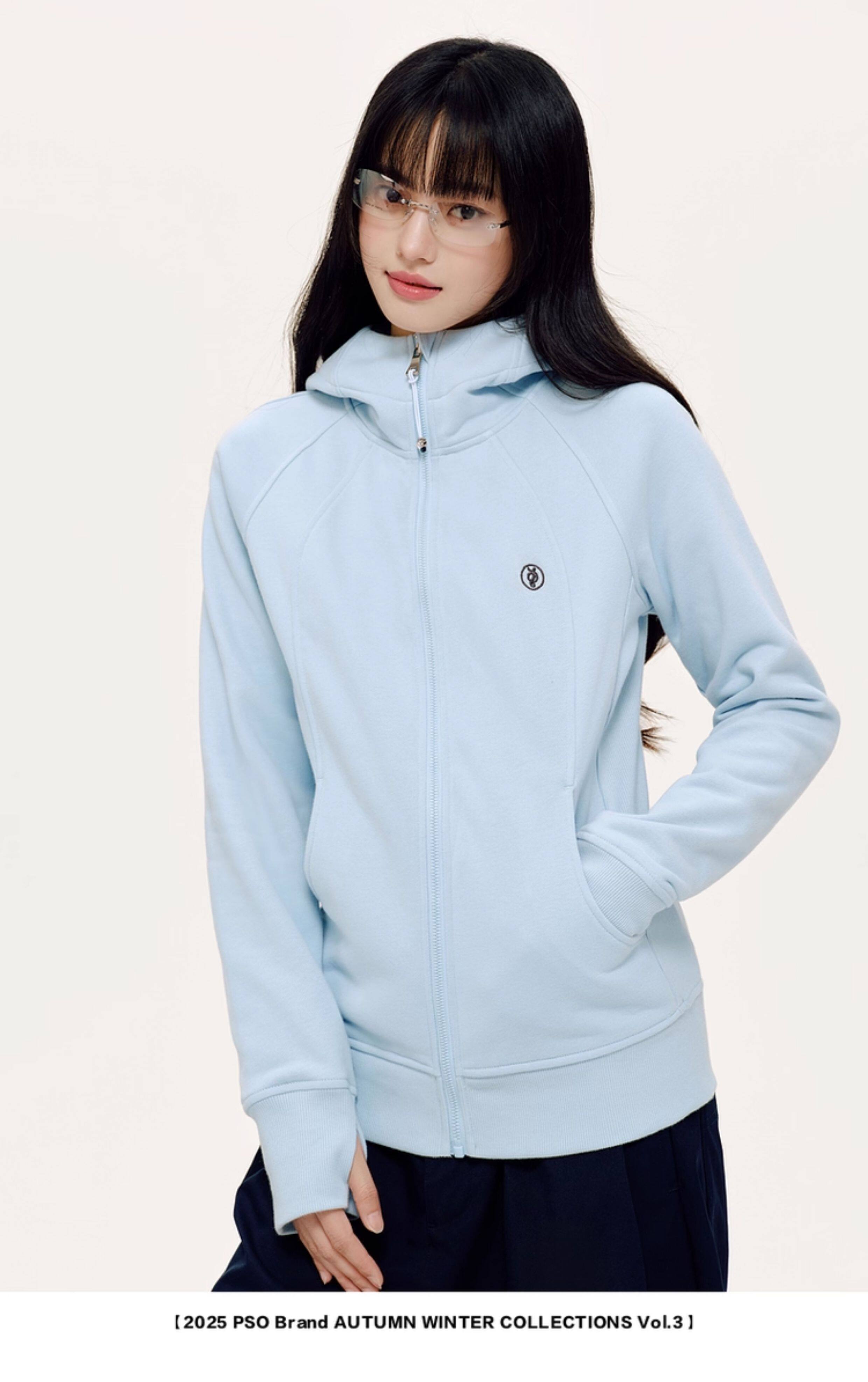 PSO Brand女裝抓絨連帽修身長袖美式衛衣秋冬季開衫運動拉鍊外套