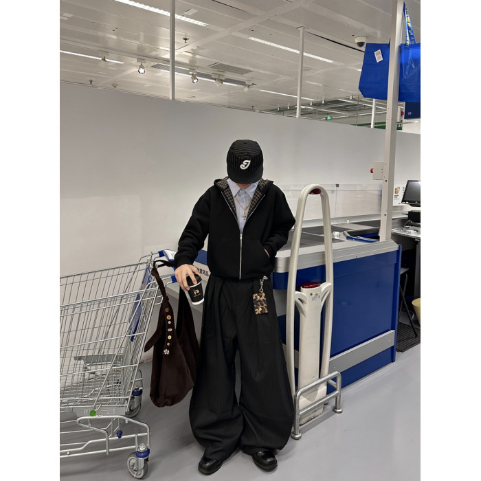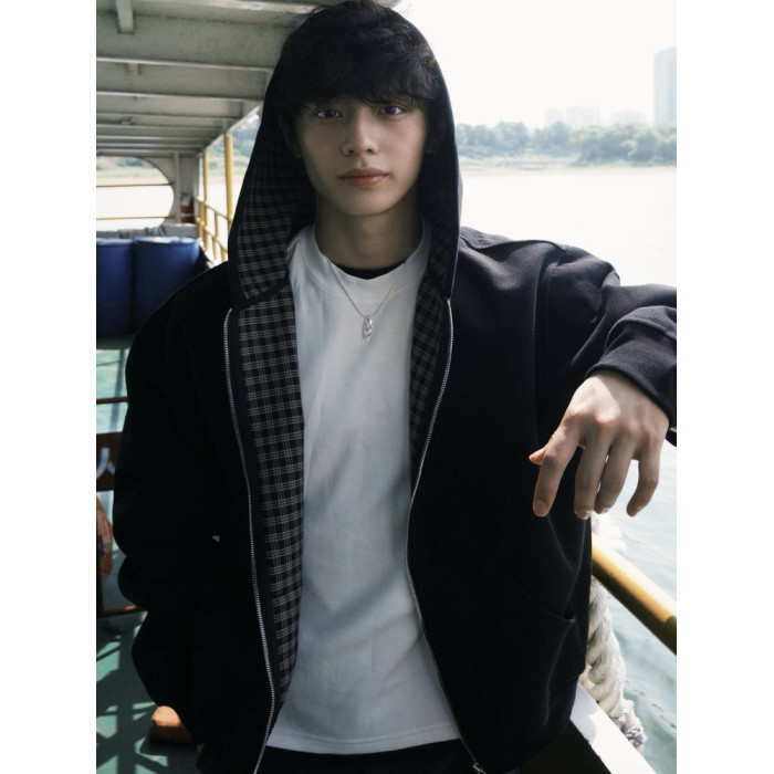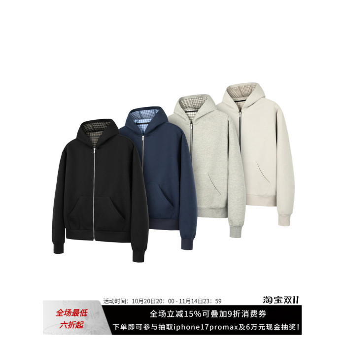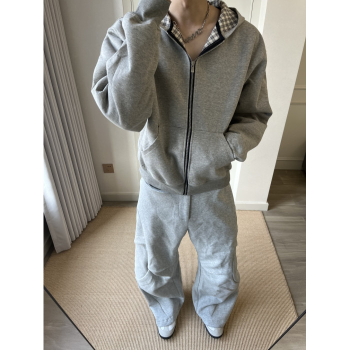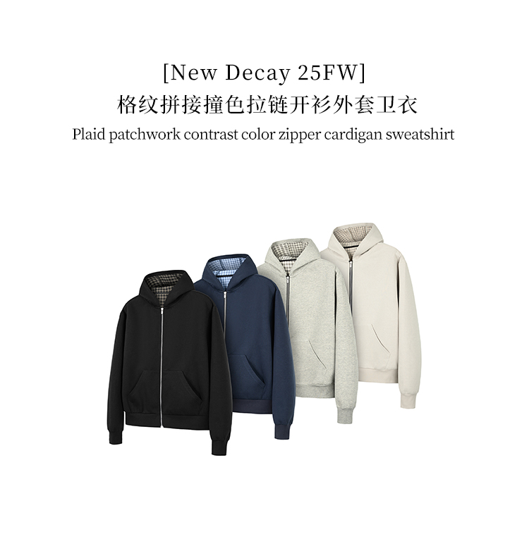 New Decay 25FW 格紋連帽拉鍊開衫休閒通勤寬松連帽衛衣外套男女