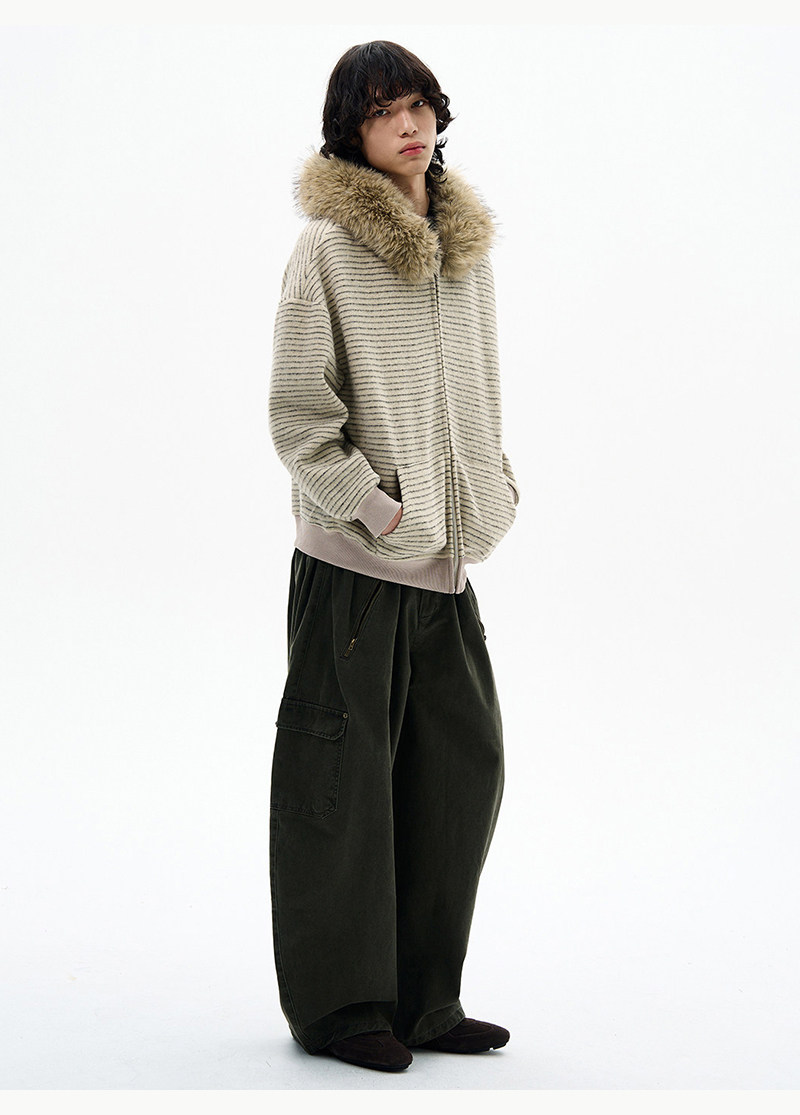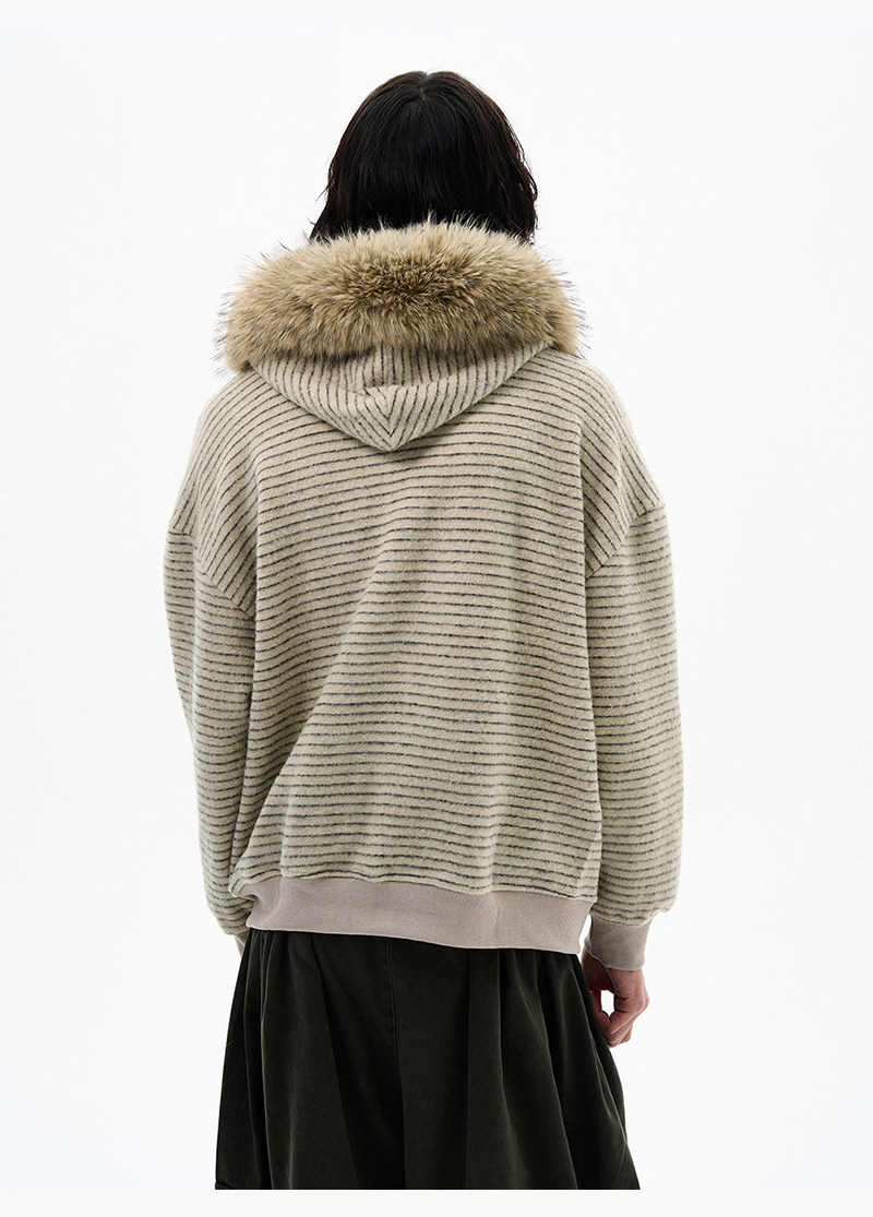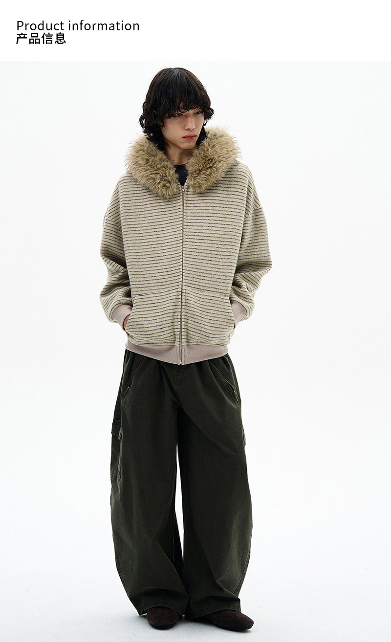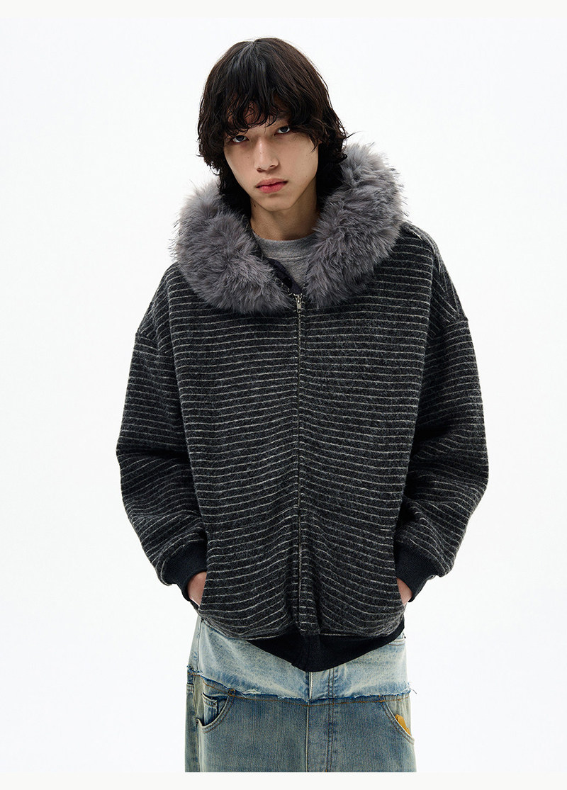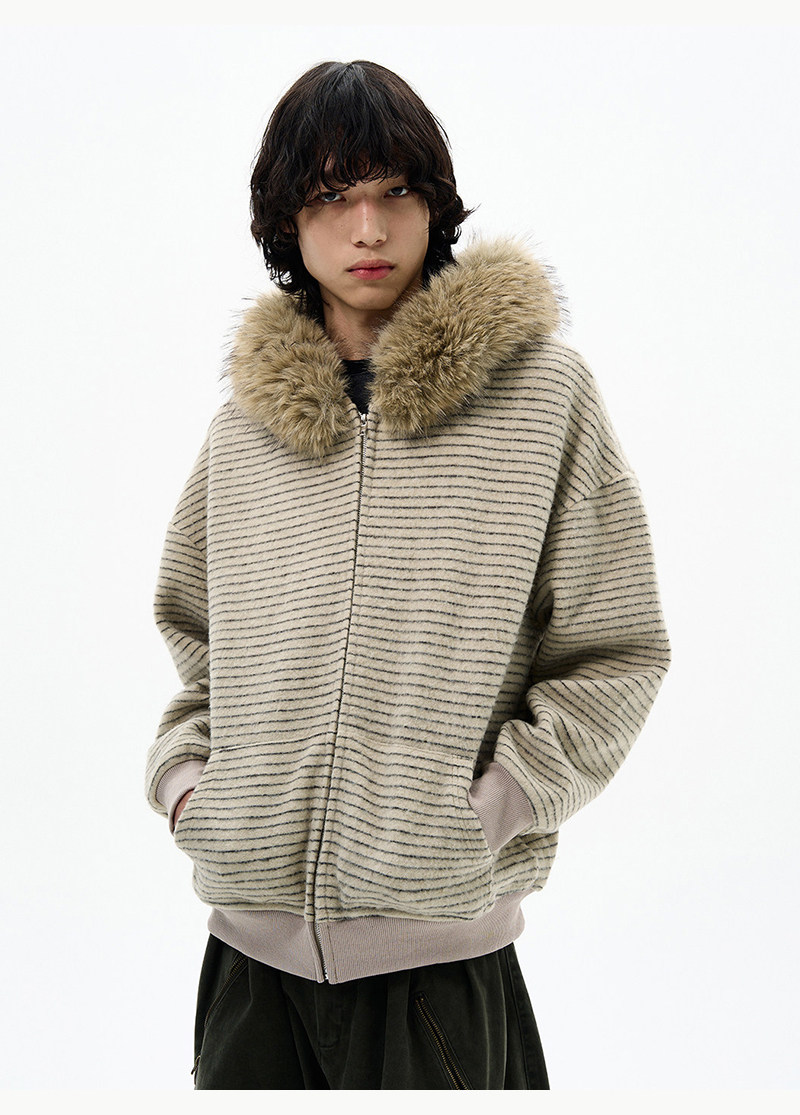 BLAEXIT美式復古親膚毛呢條紋外套早秋連帽短款衛衣拉鍊開衫男女
