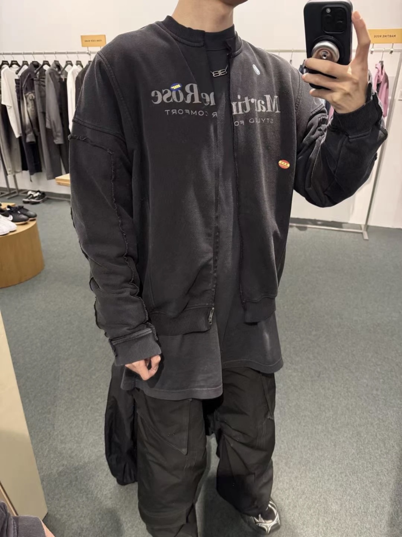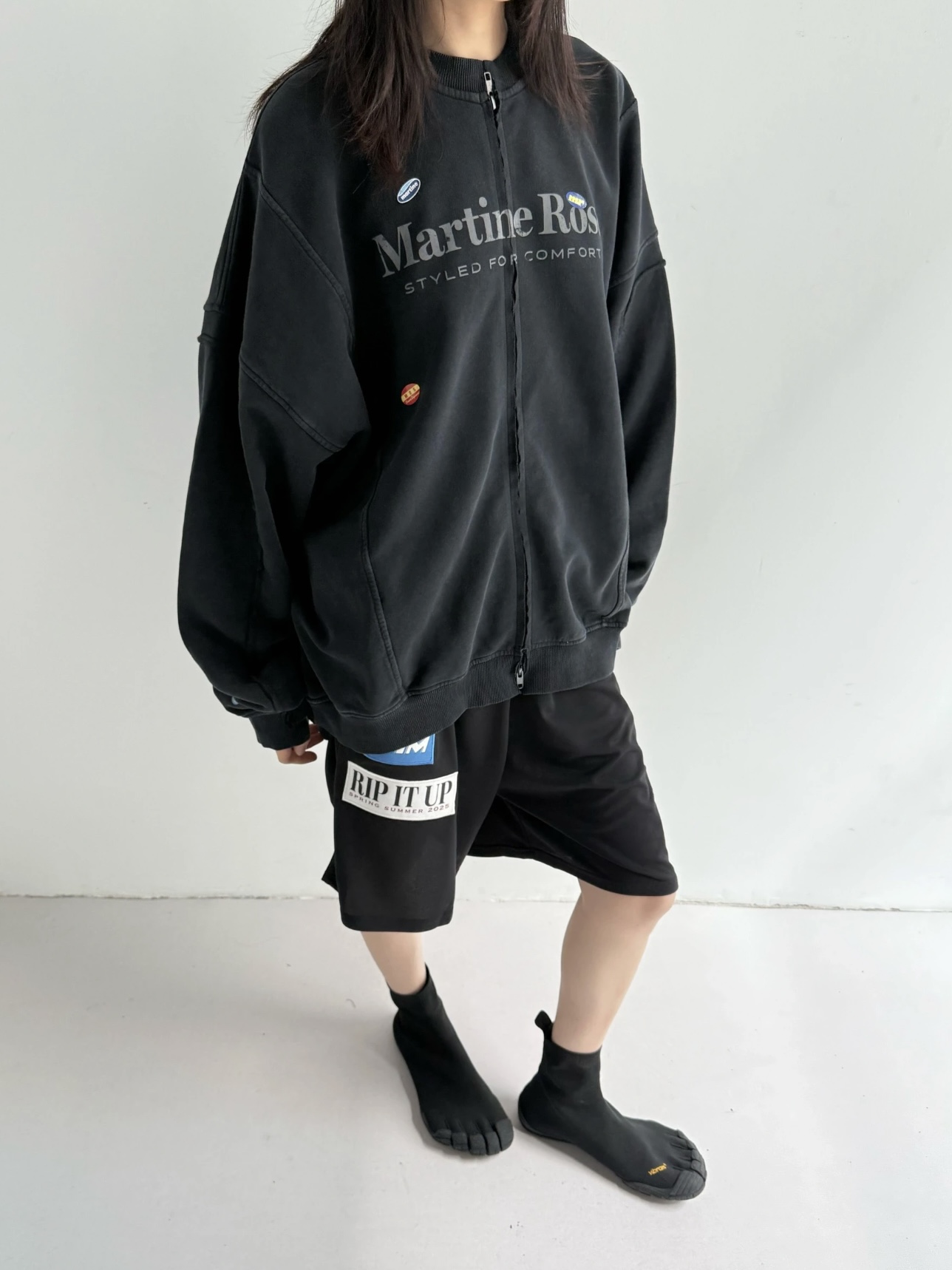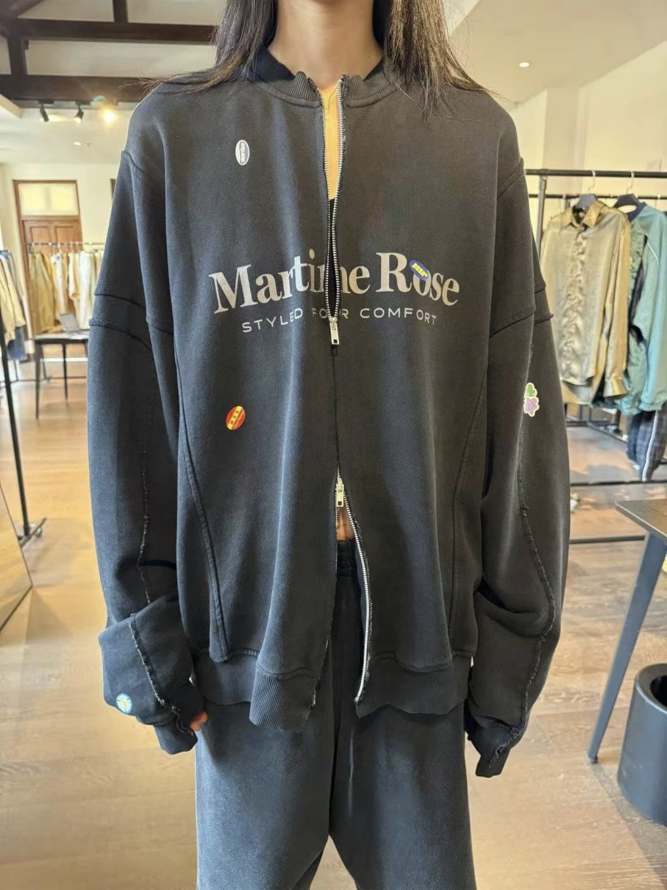 Martine Rose 25ss 水洗做舊字母標語夾克 貼紙印花寬松拉鍊外套