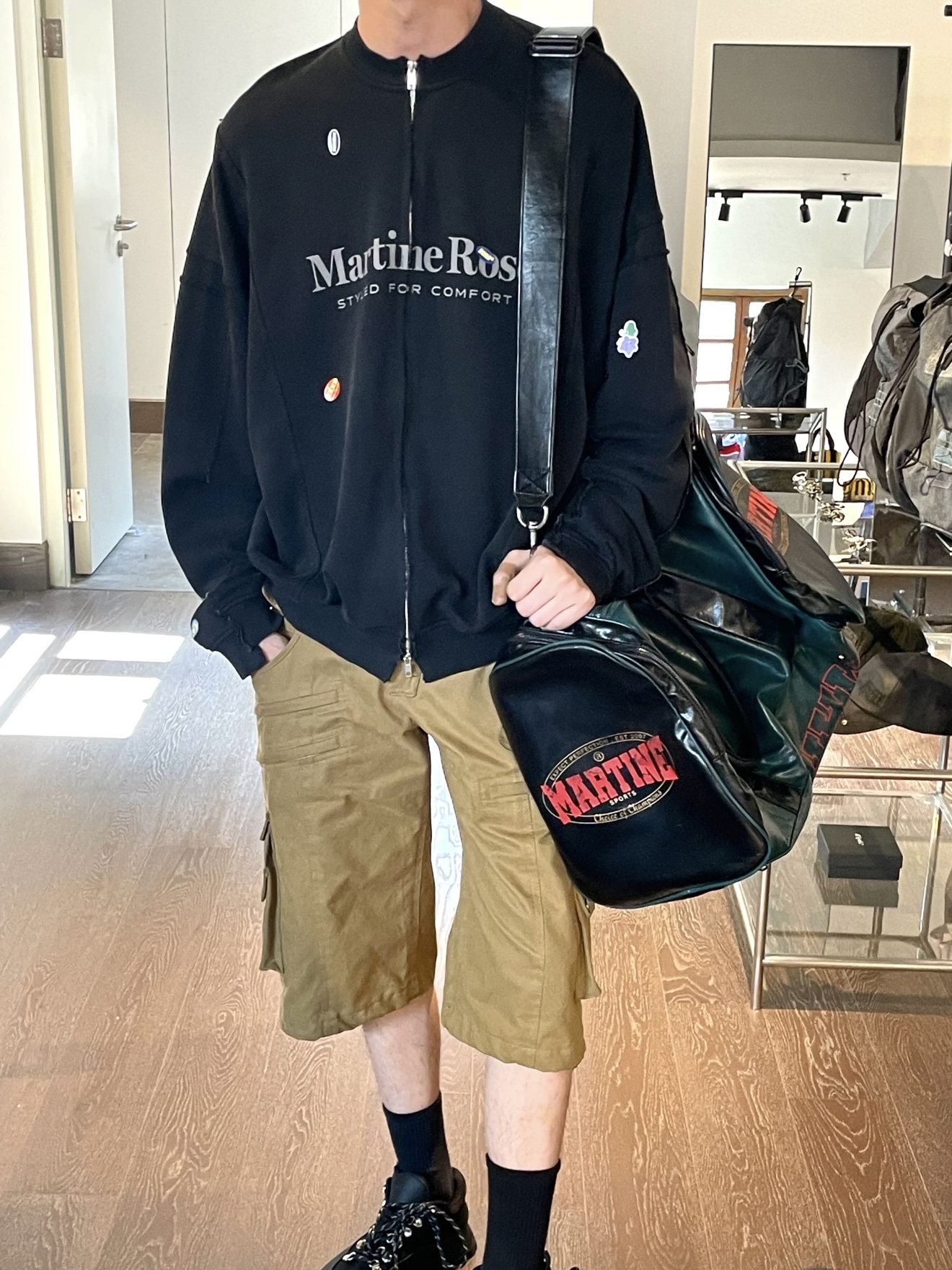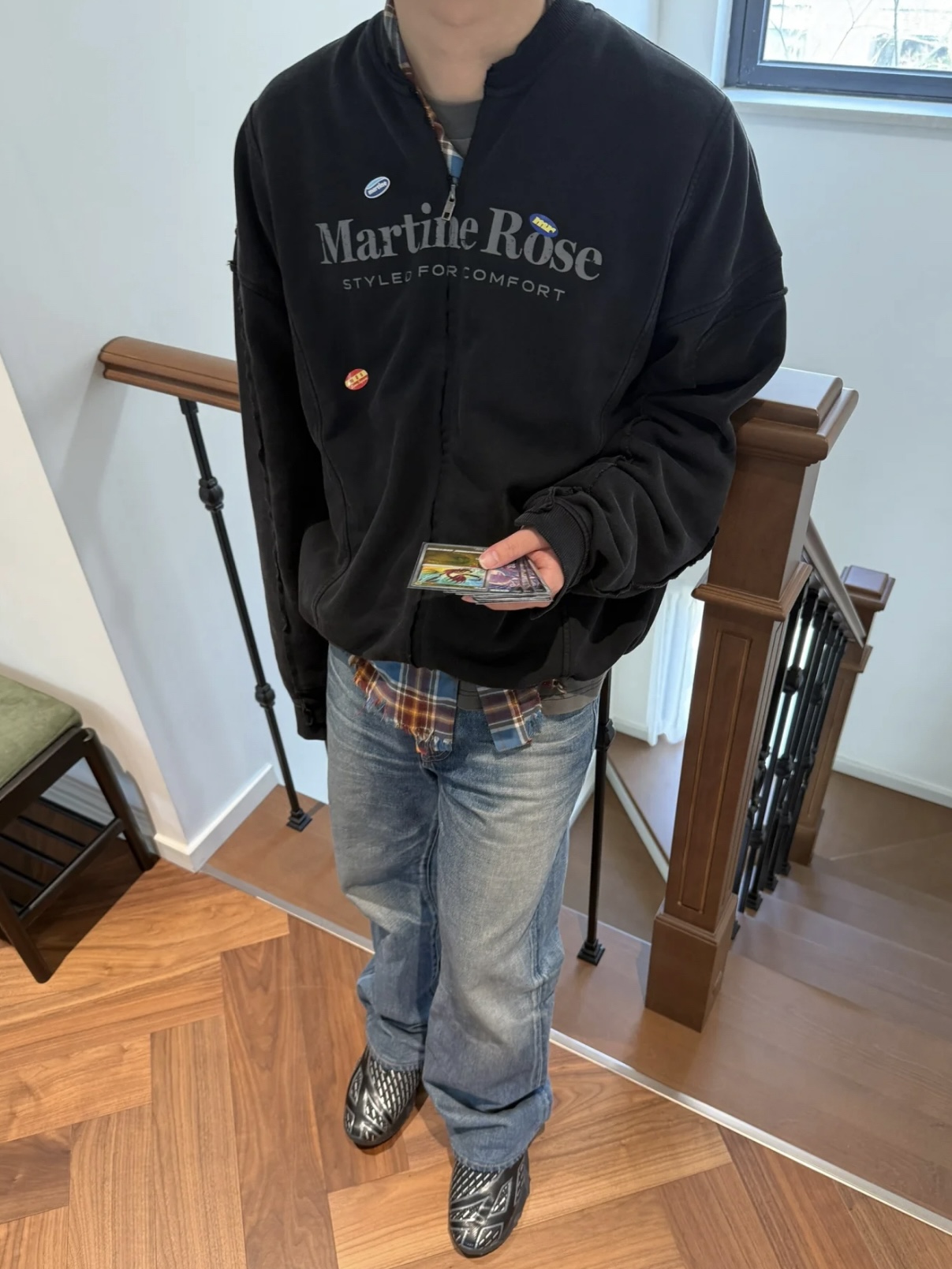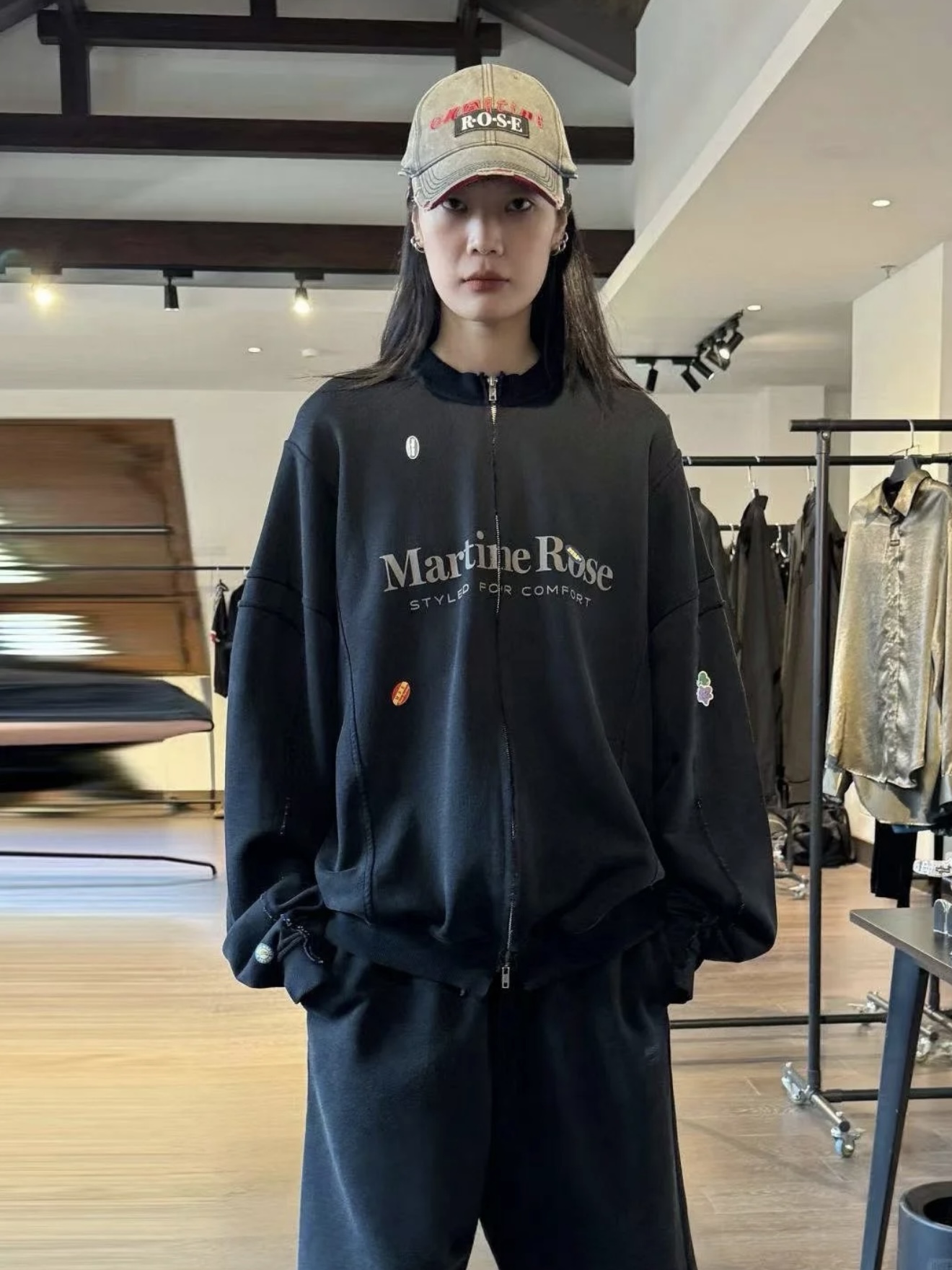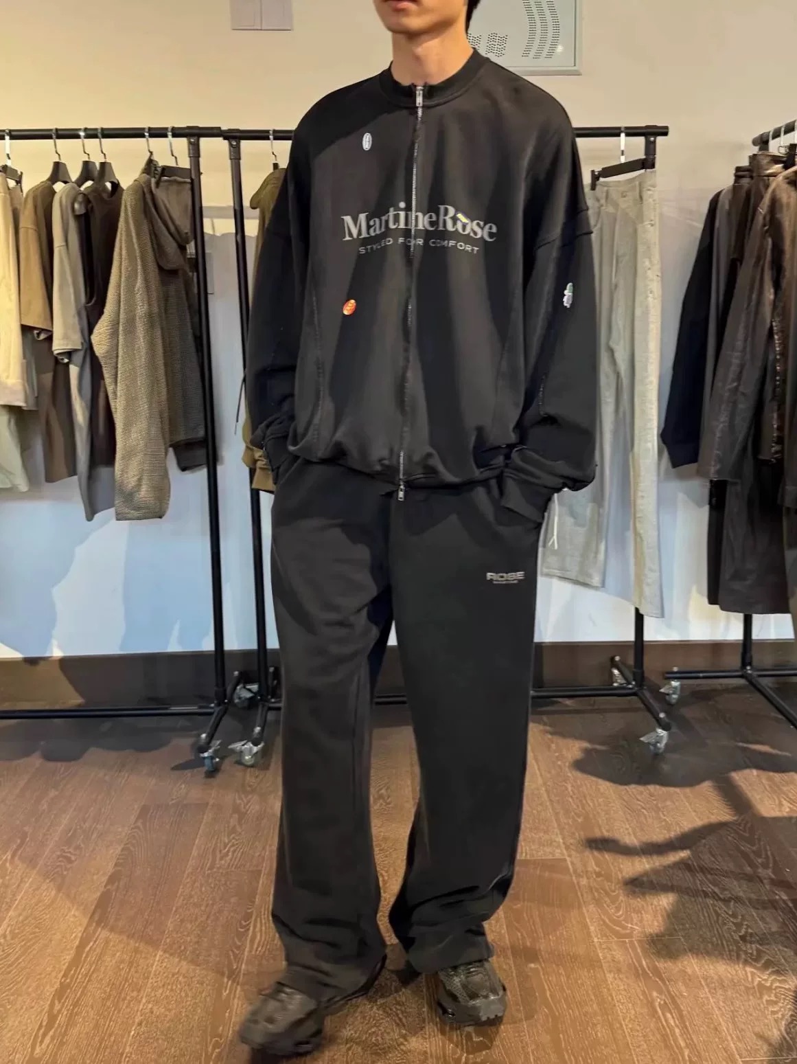 Martine Rose 25ss 水洗做舊字母標語夾克 貼紙印花寬松拉鍊外套