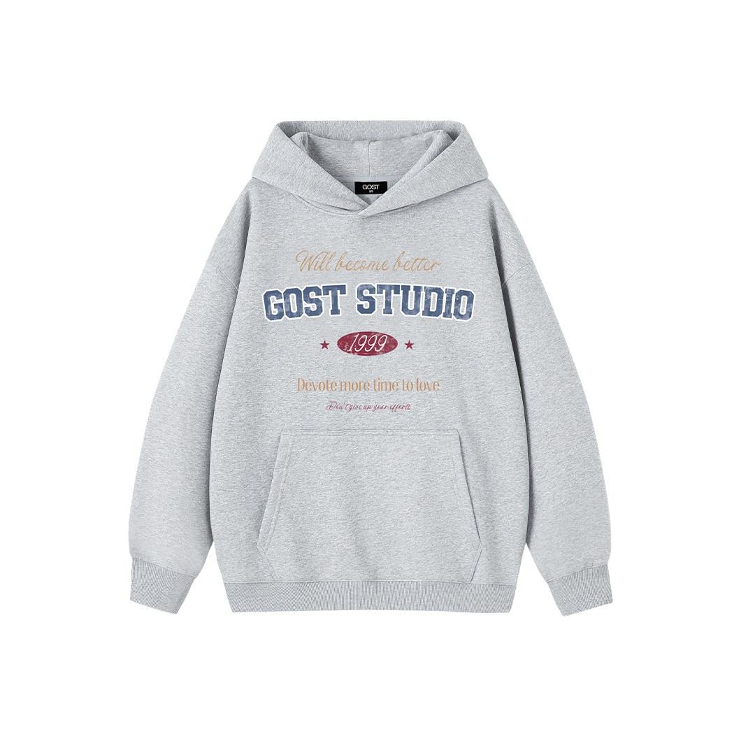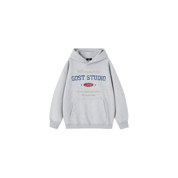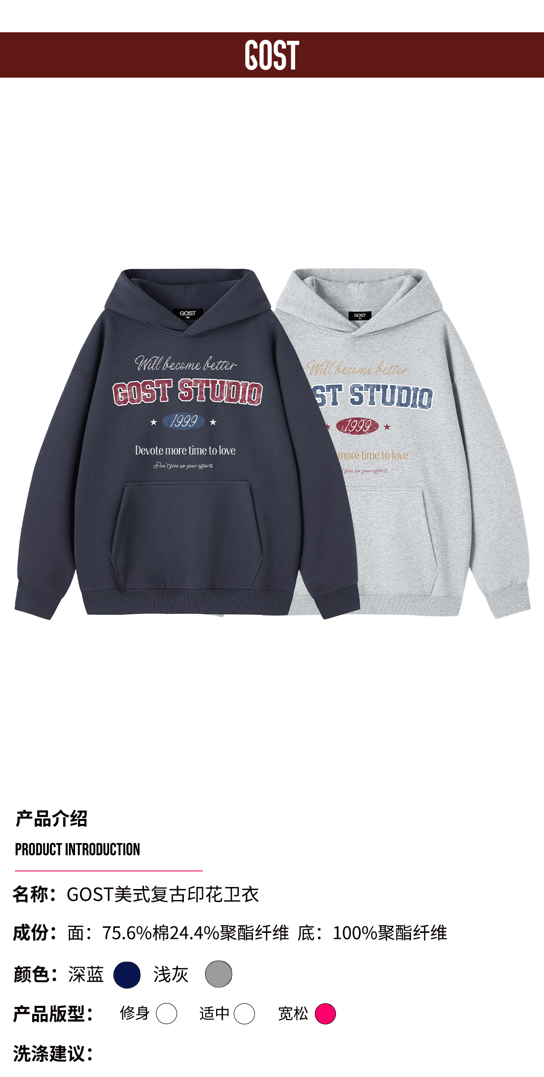 GOST【王琳凱同款】基礎印花加絨美式復古連帽衛衣帽衫外套