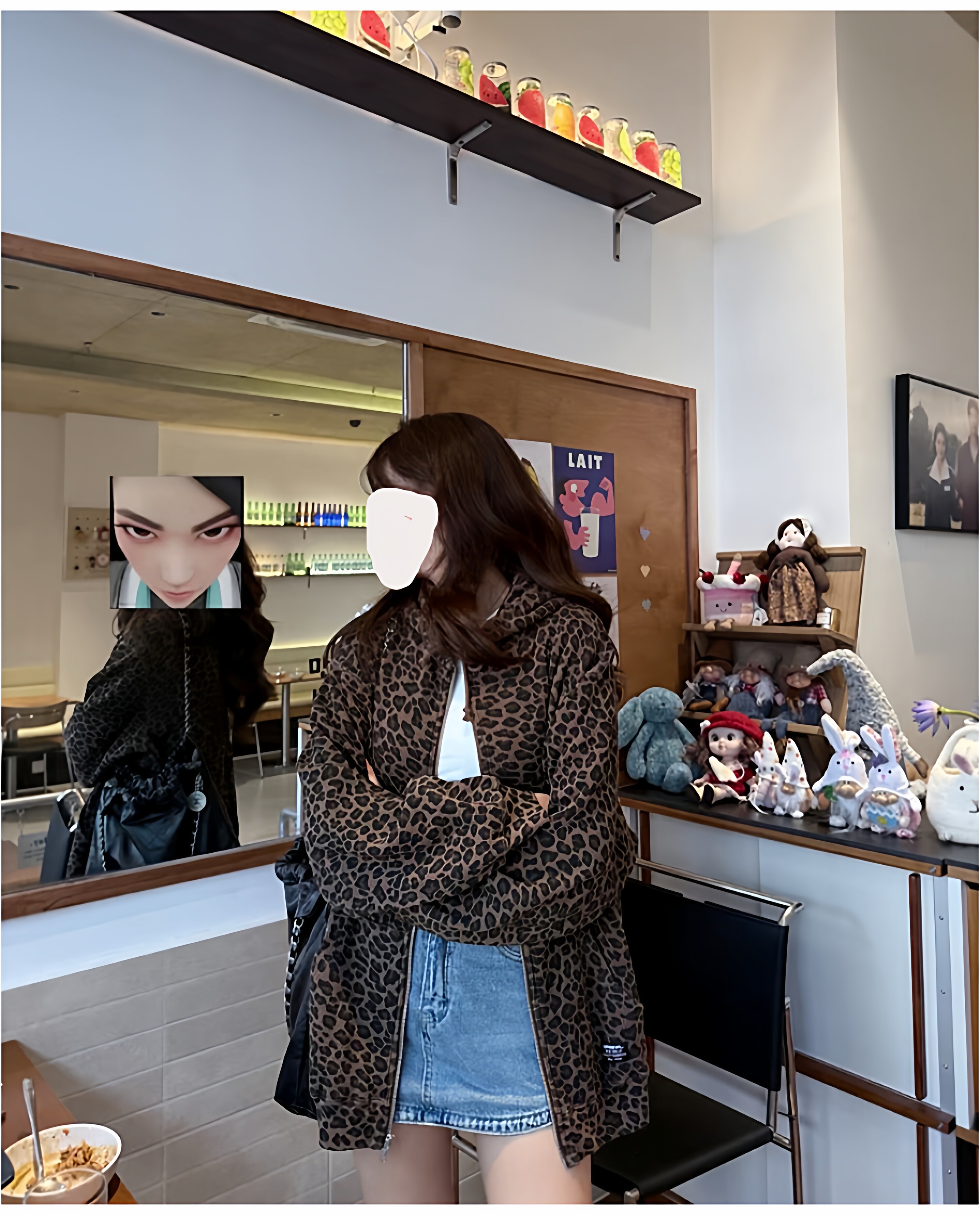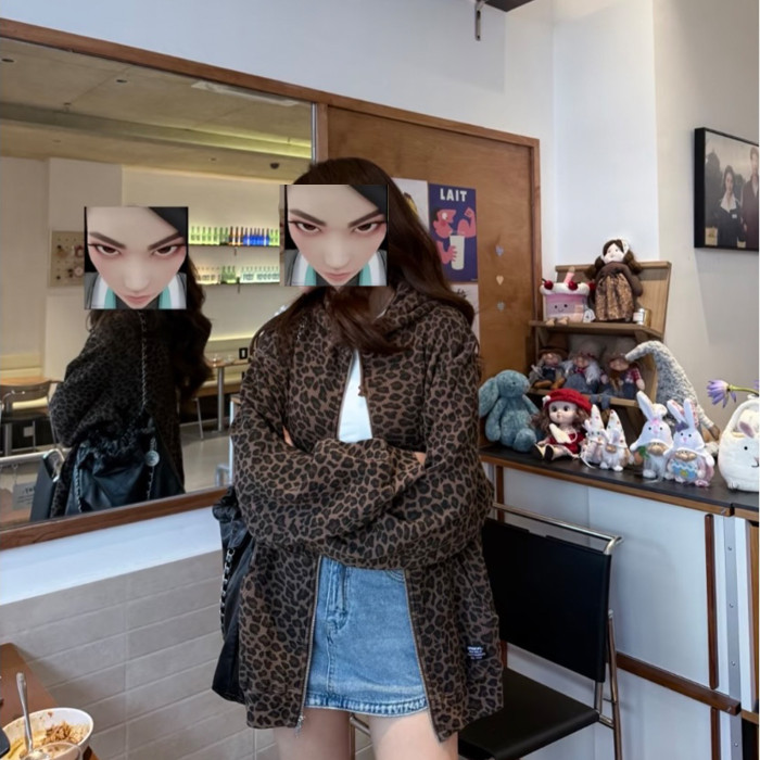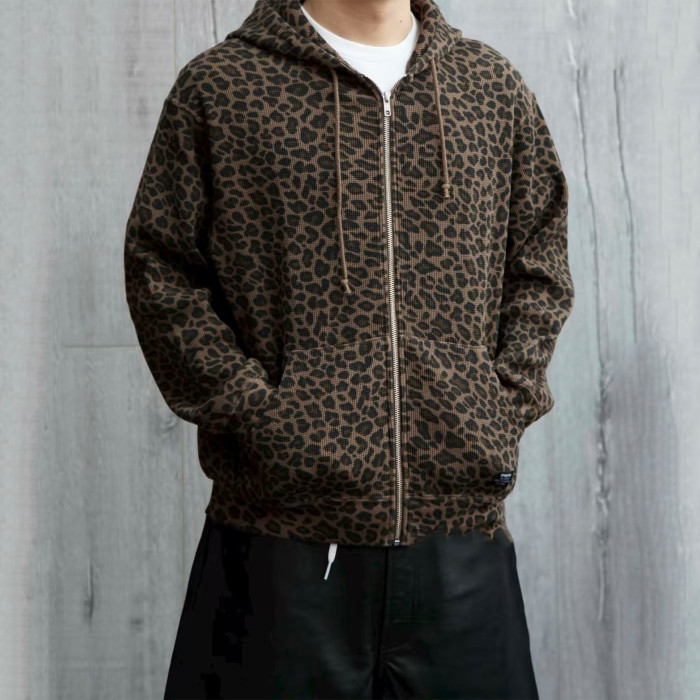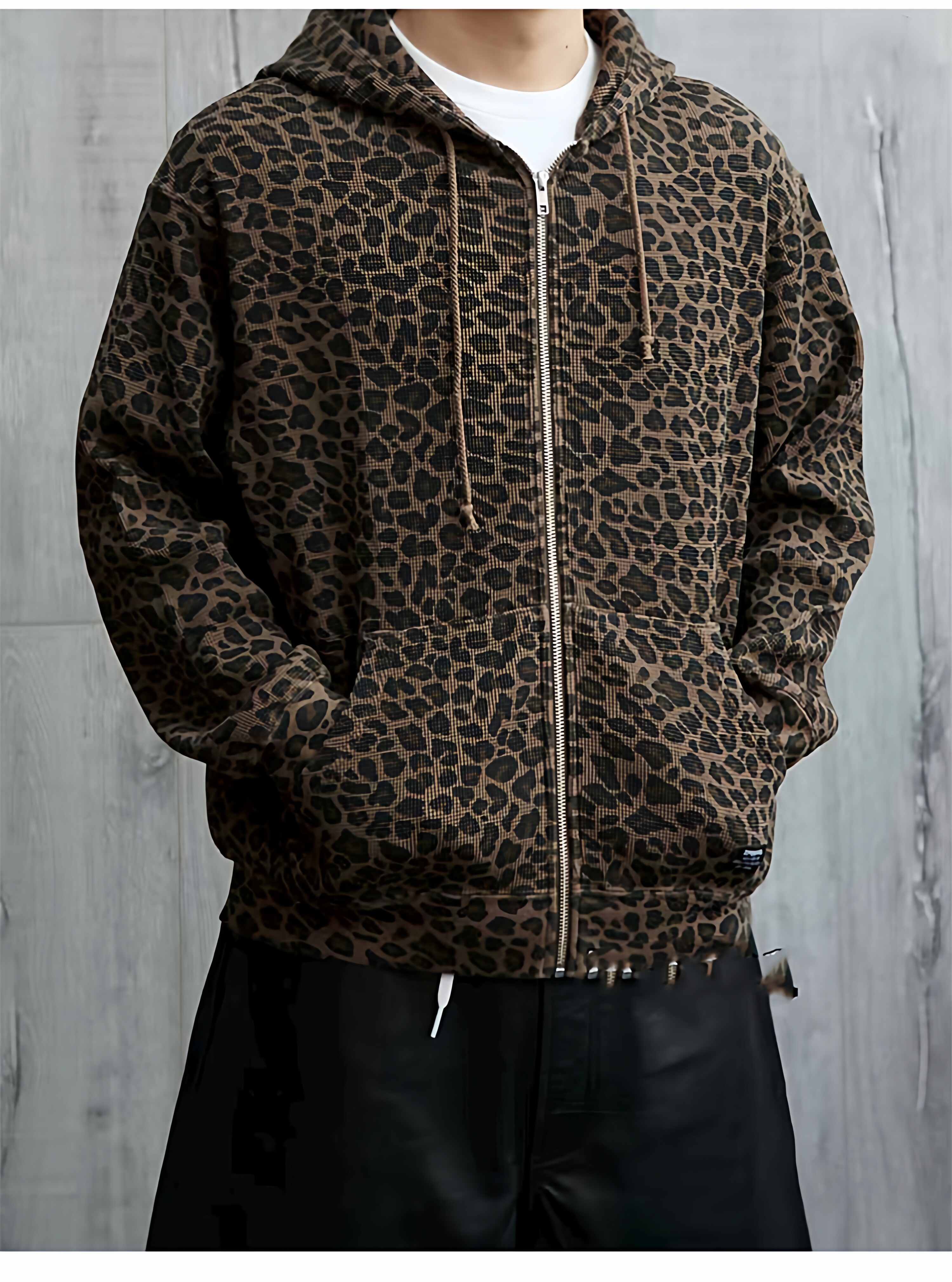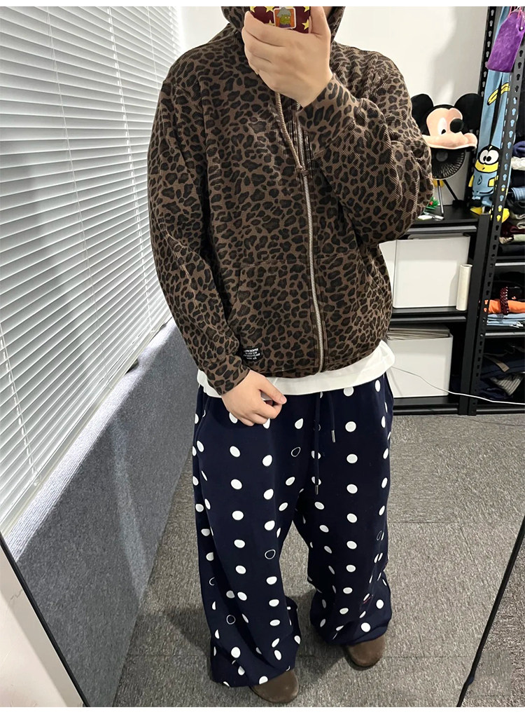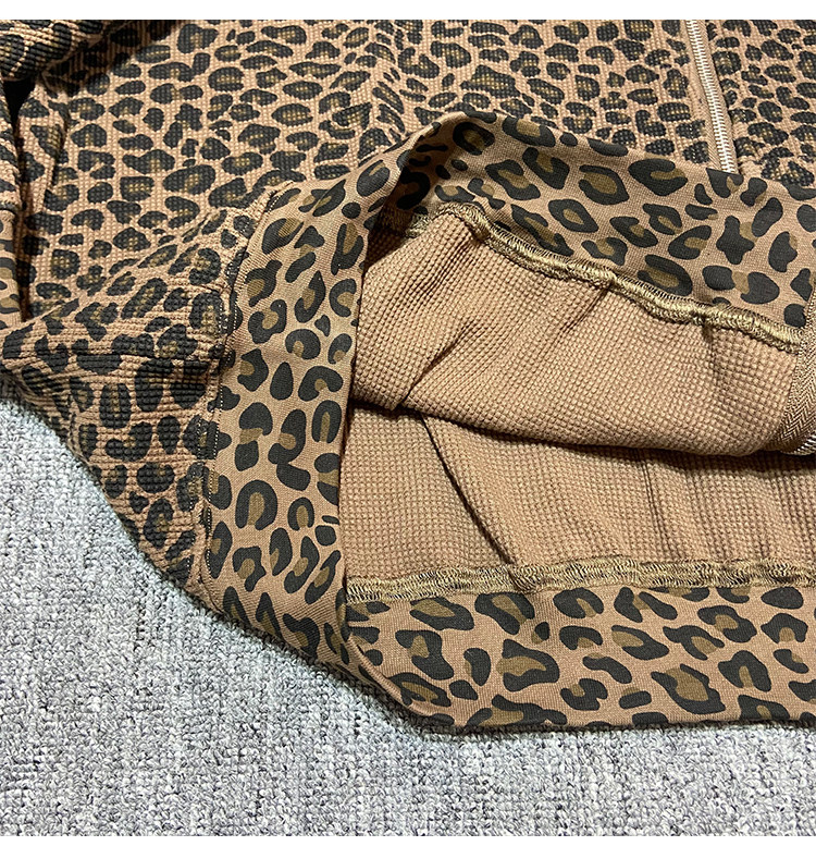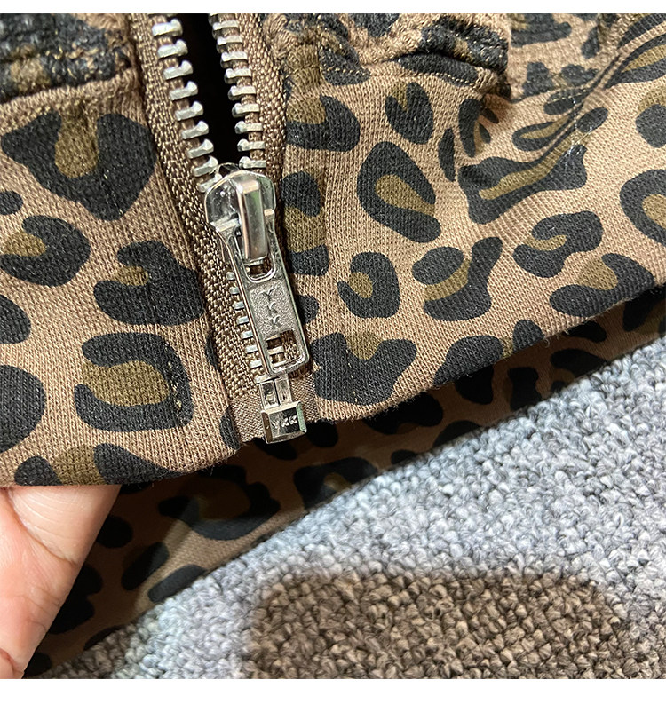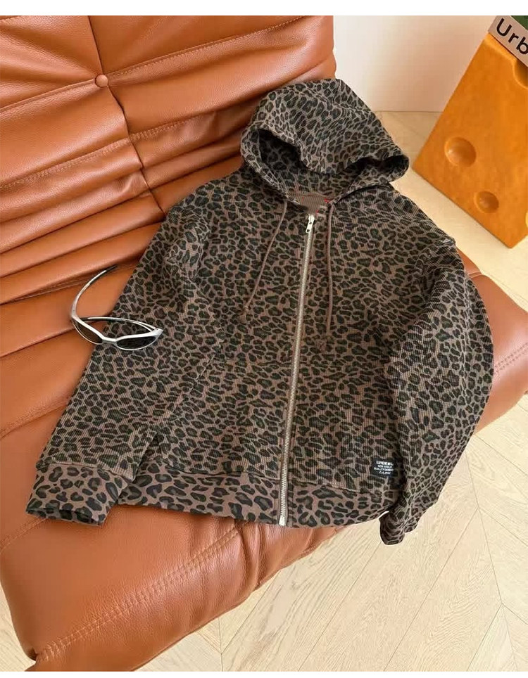 】自主天花版2025早春美式豹紋連帽寬松拉鍊衛衣外套男女款潮