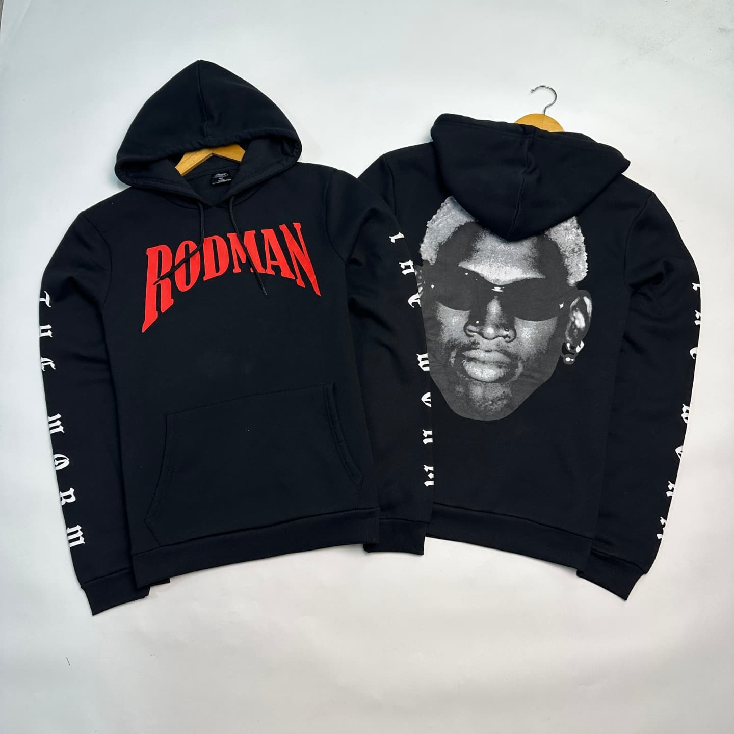 尾貨 美式潮牌球星版羅德曼男士連帽加絨衛衣 袋鼠兜休閒男女