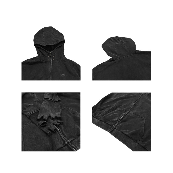 WANNA LAB 25FW拳擊手套刺綉鉚釘水洗做舊連帽衫衛衣boxy合體版型