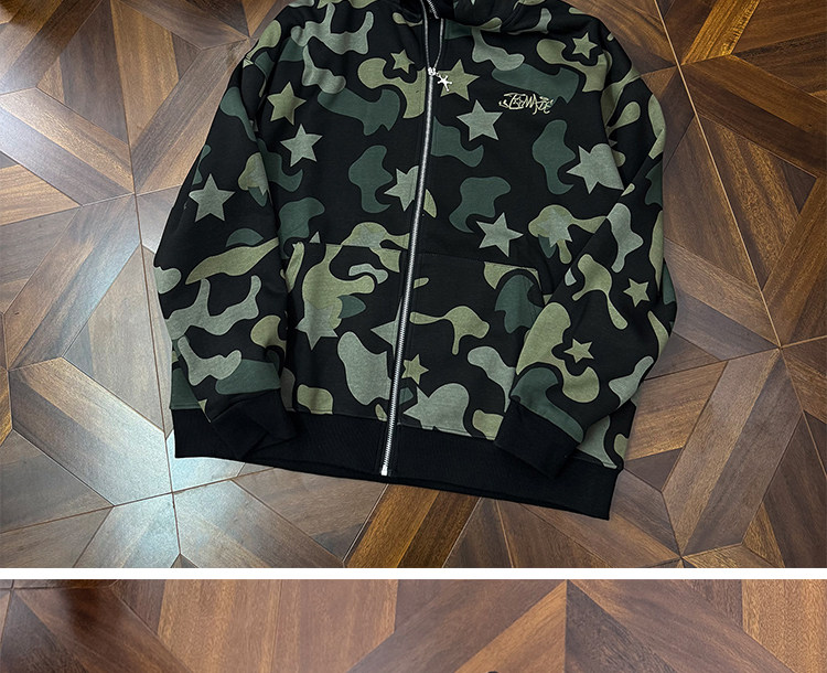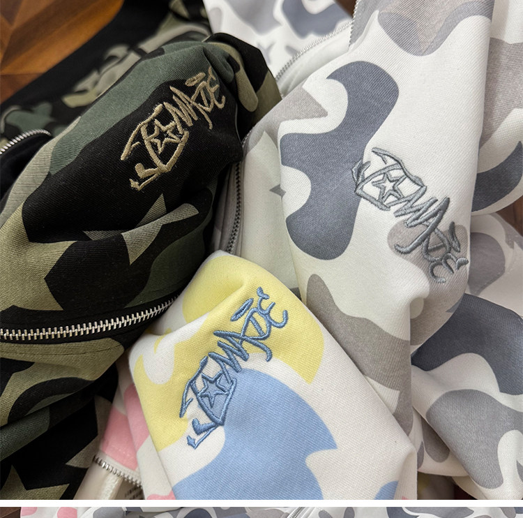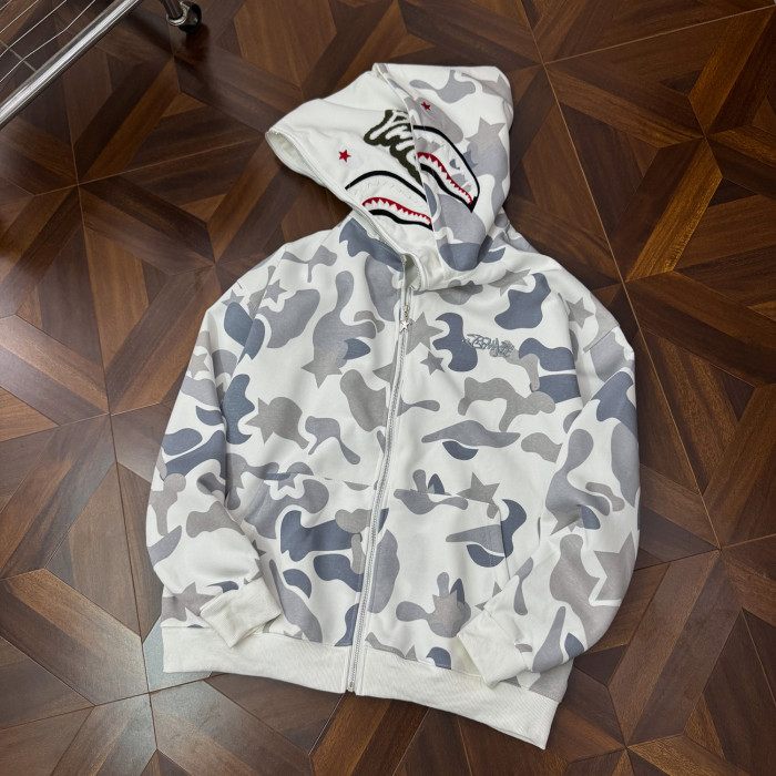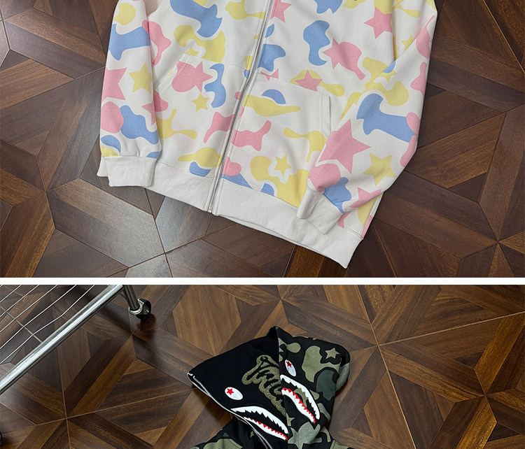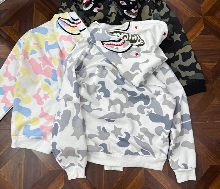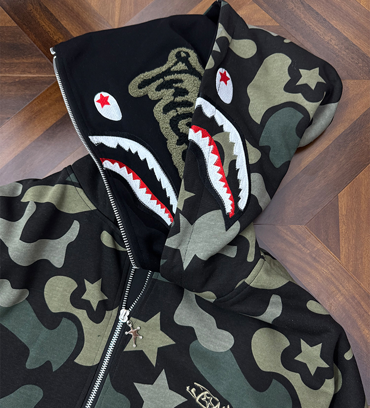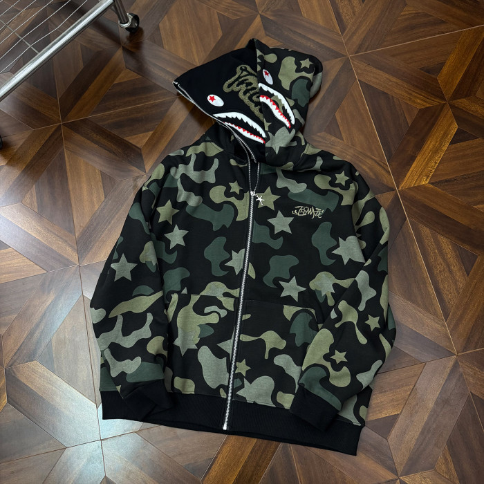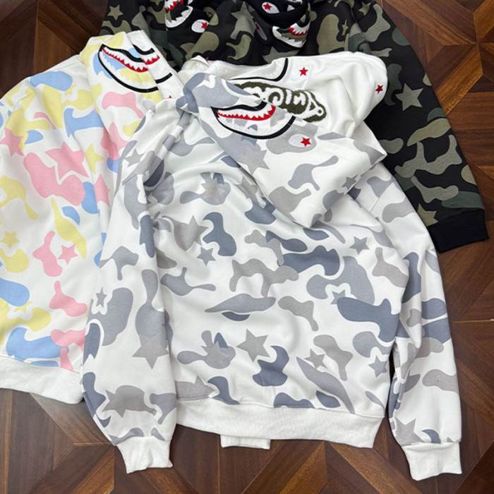 秋冬迷彩鯊魚刺綉雙帽衛衣男女情侶連帽拉鍊開衫寬松上衣夾克外套