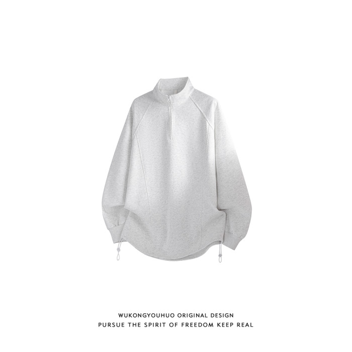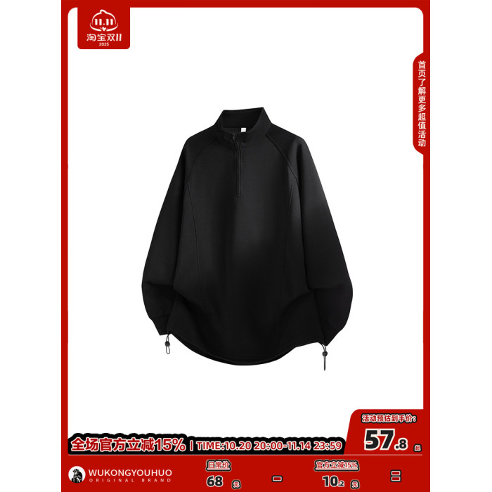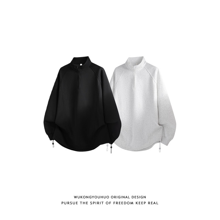 悟空有貨美式復古重磅半拉鍊套頭衛衣男秋季潮牌寬松百搭休閒上衣