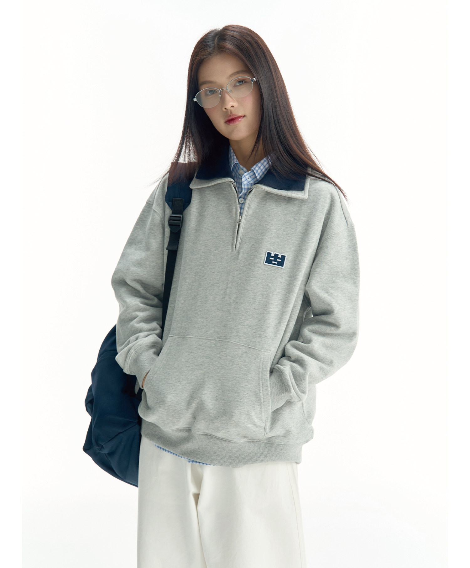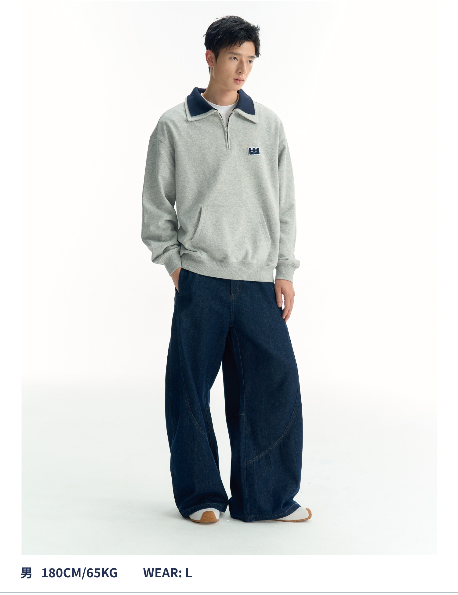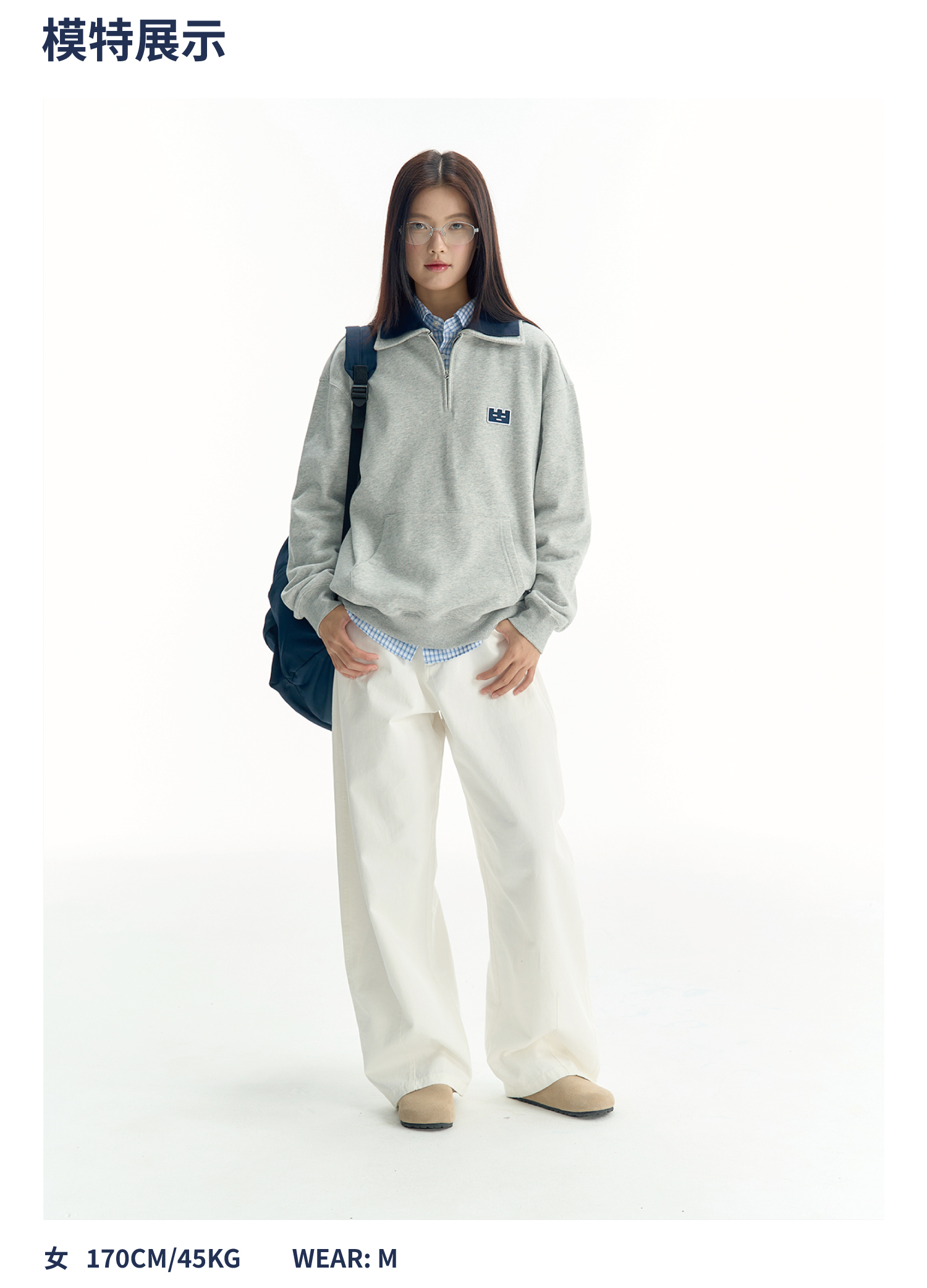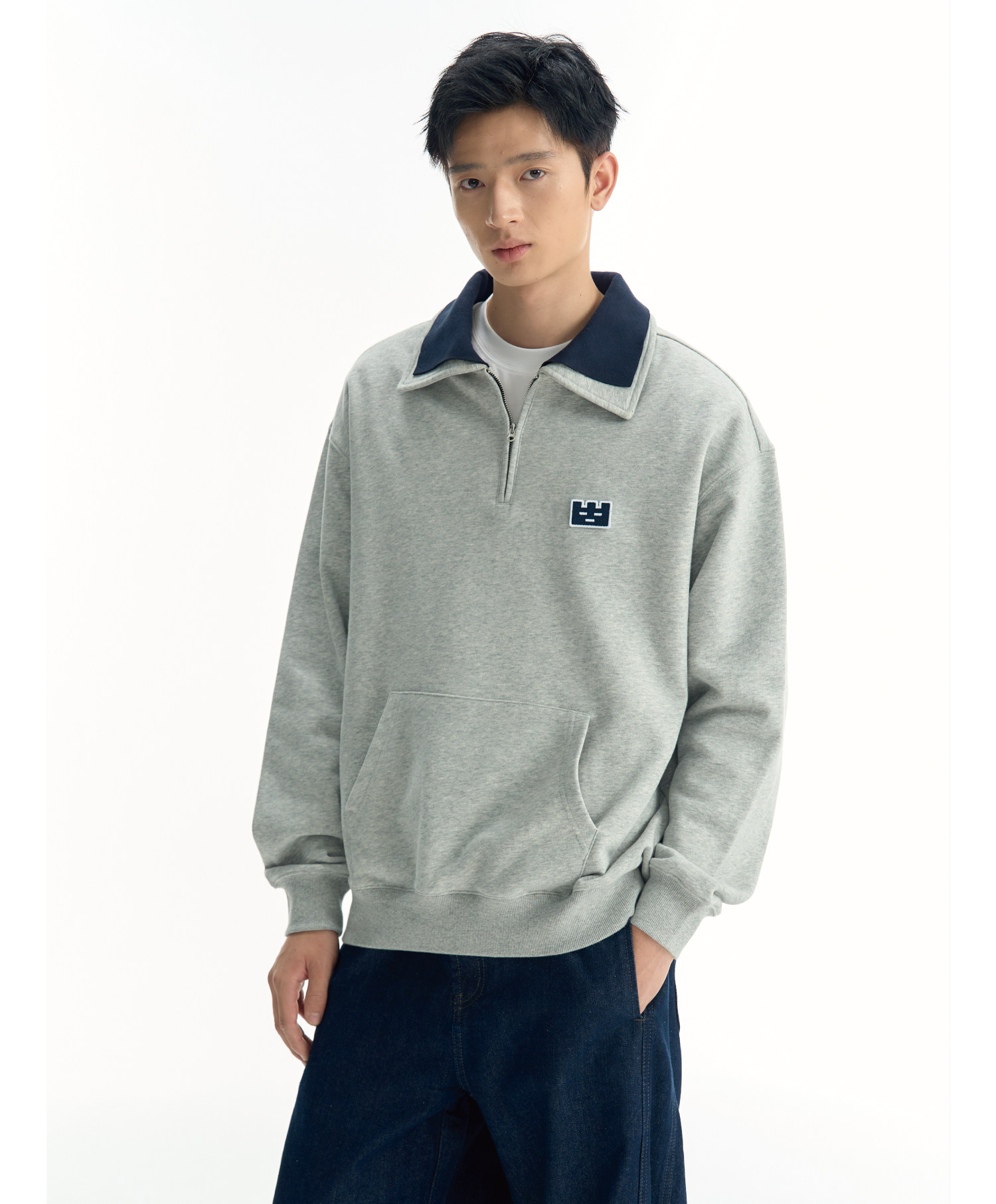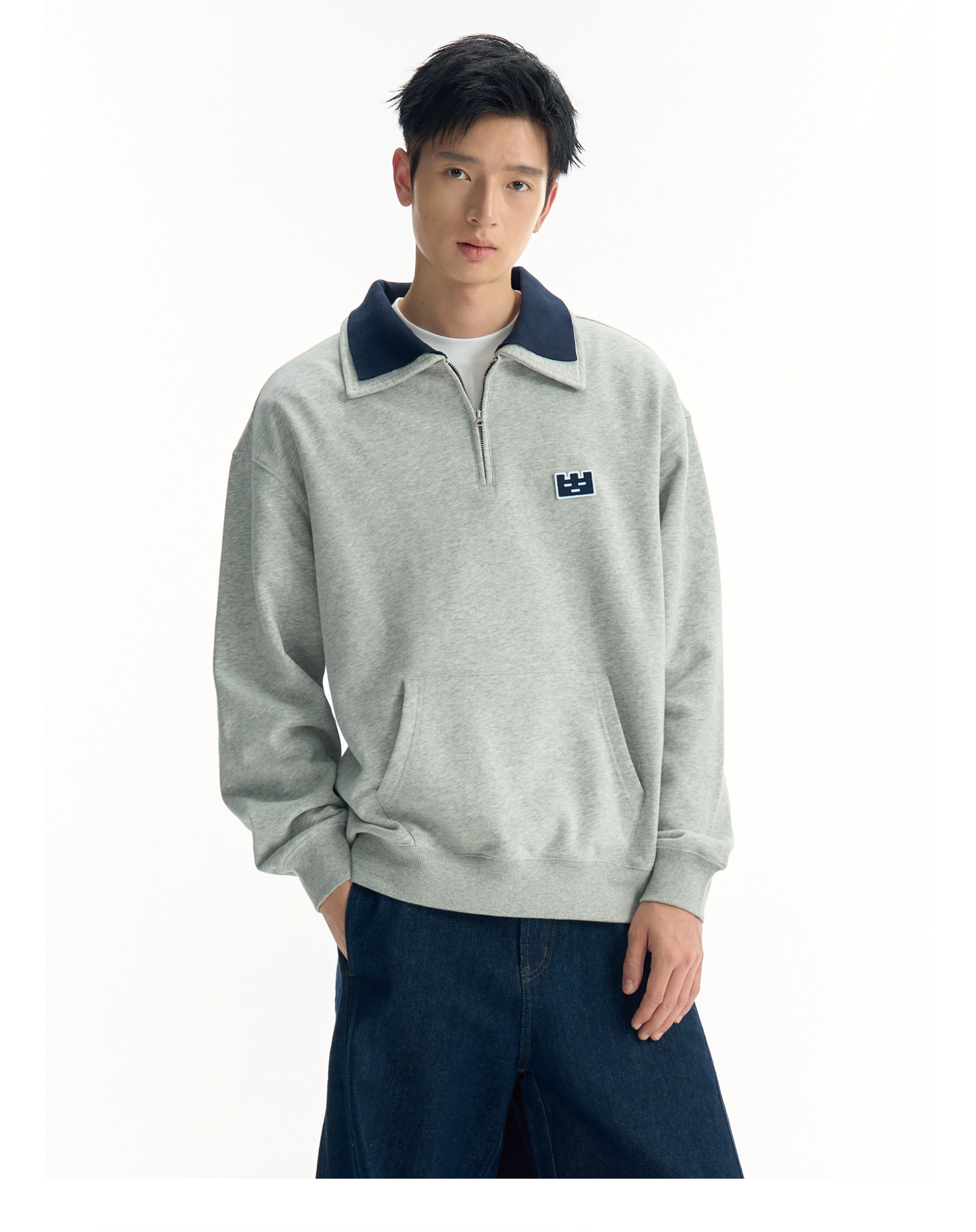 TGWALL「時遇」雙層翻領復古POLO領拉鍊撞色刺綉寬松套頭情侶衛衣