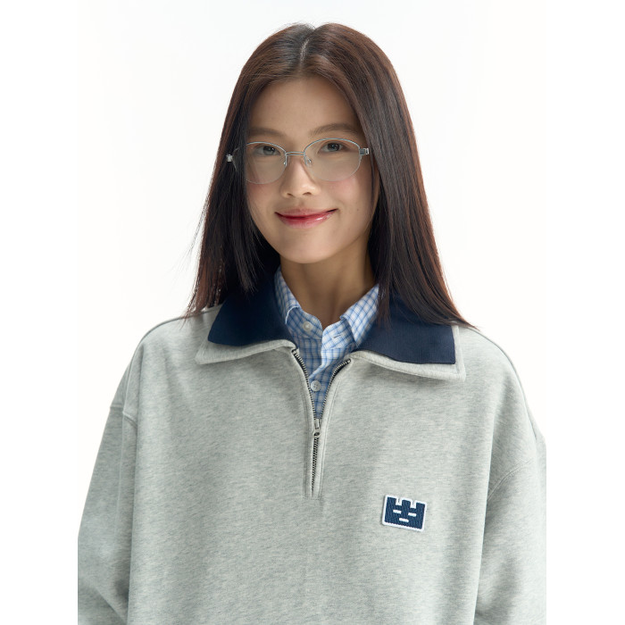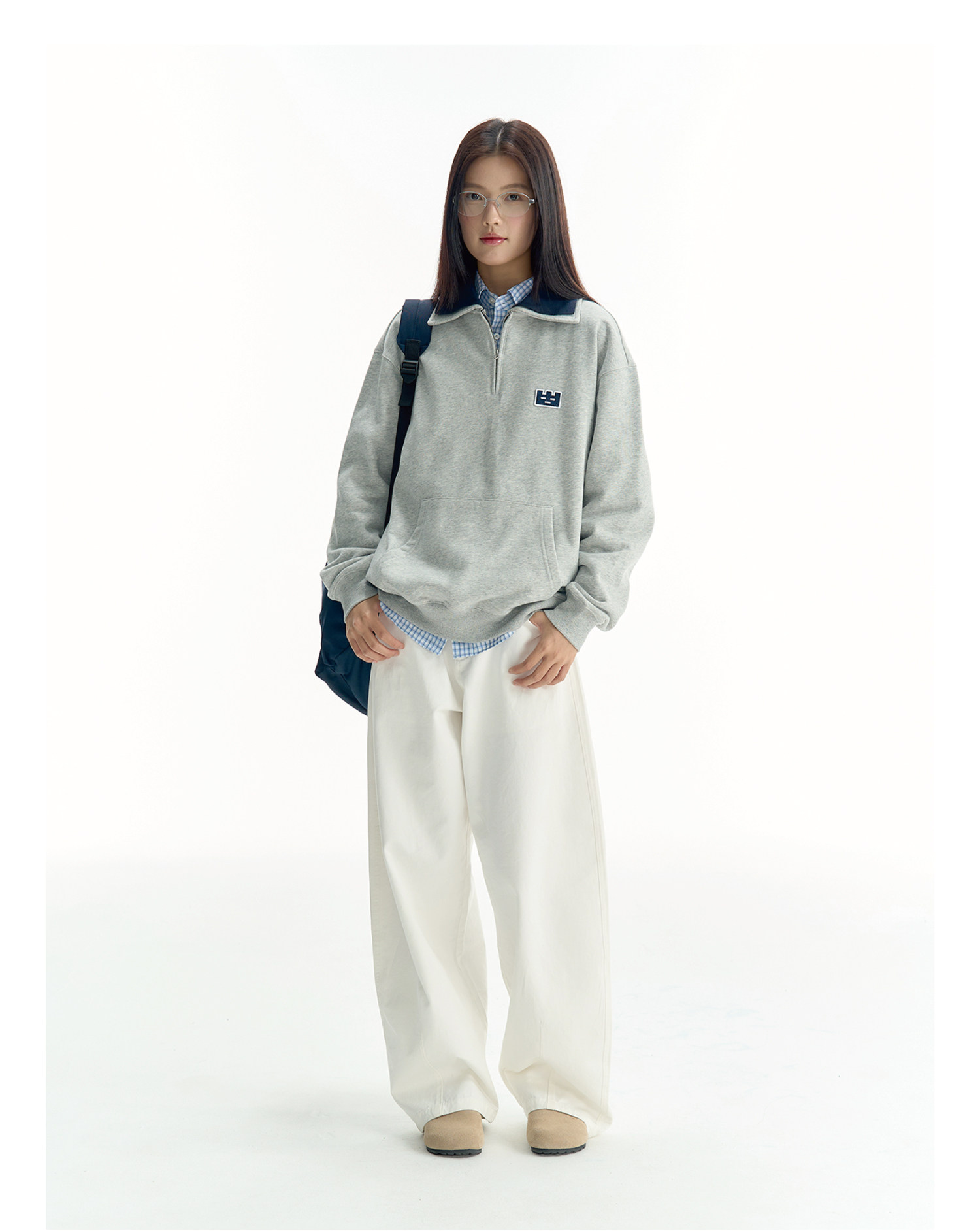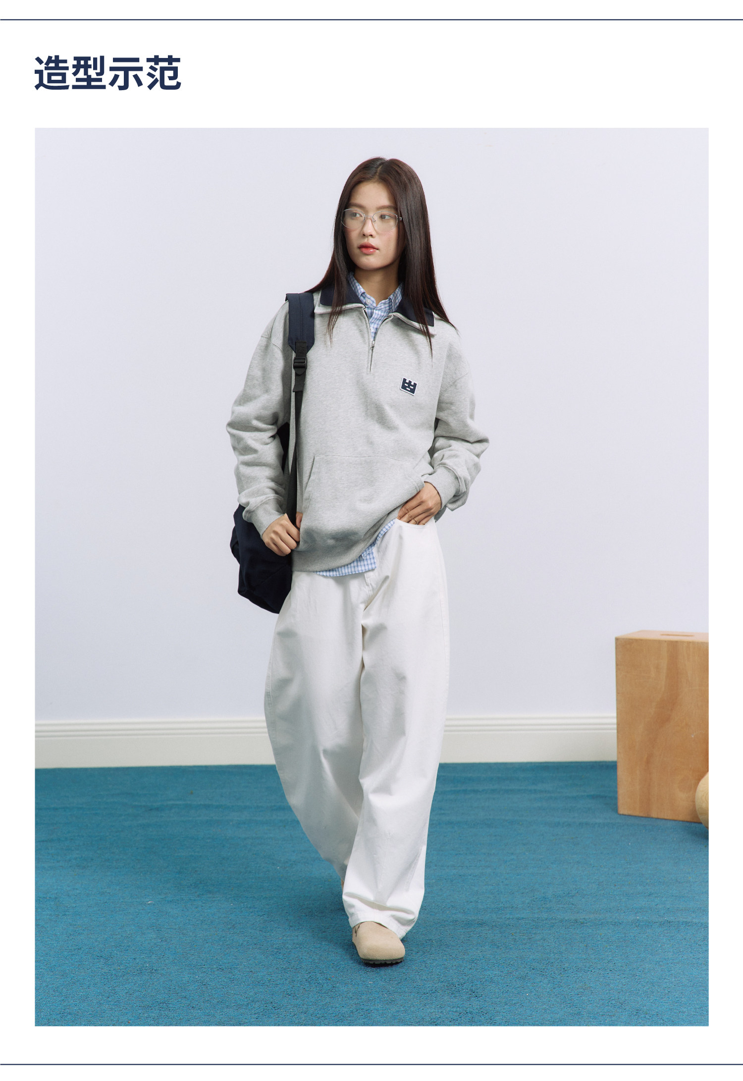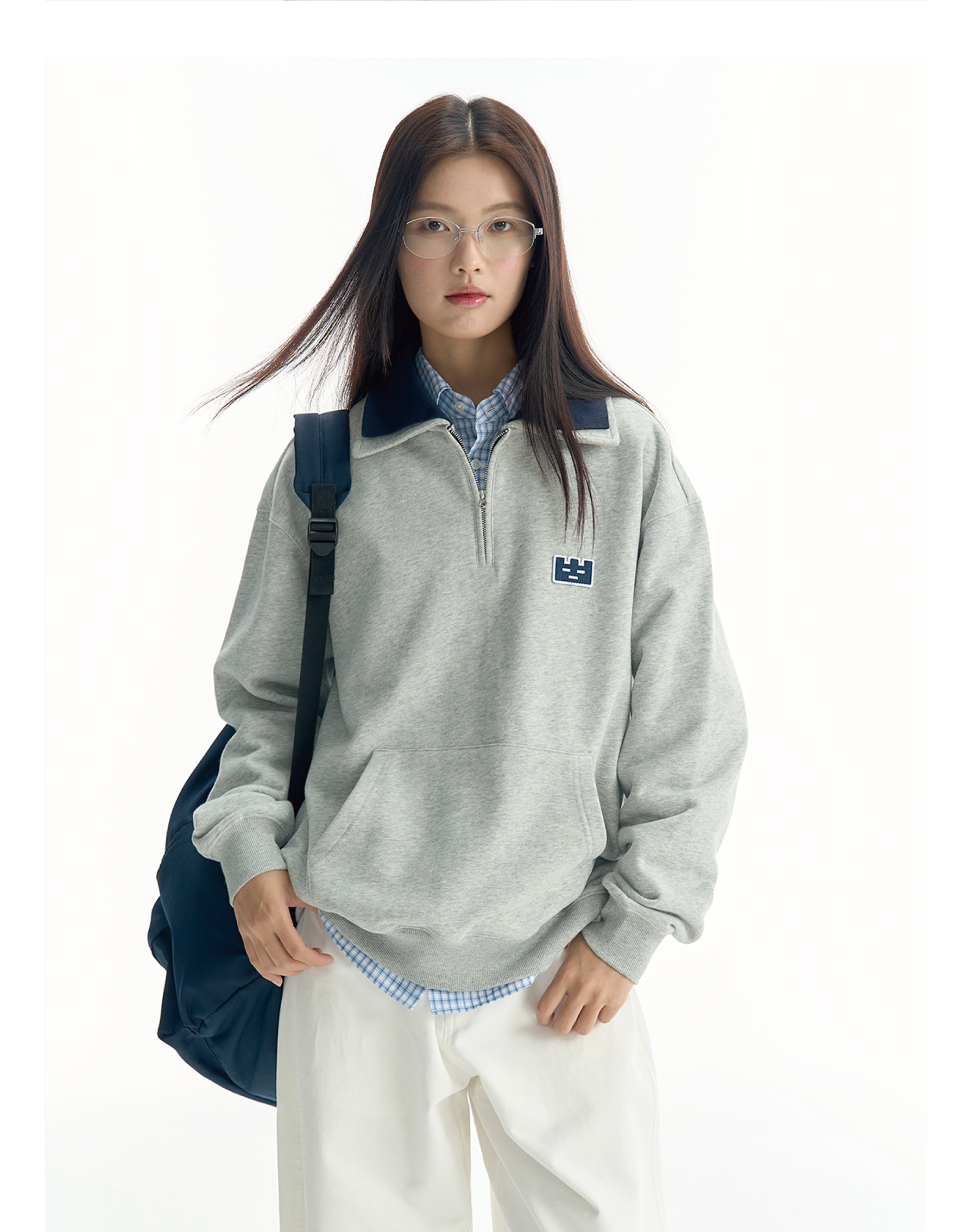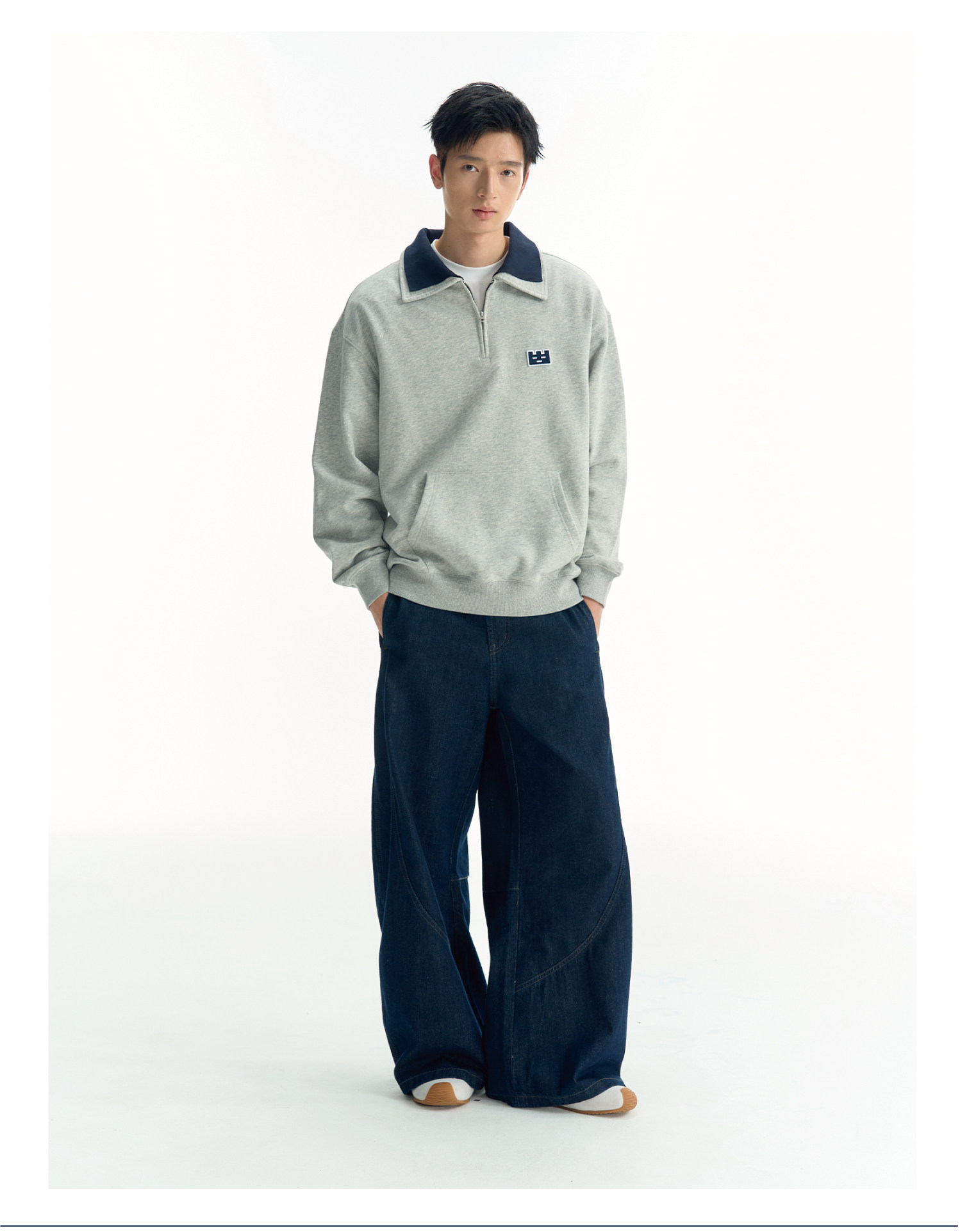TGWALL「時遇」雙層翻領復古POLO領拉鍊撞色刺綉寬松套頭情侶衛衣