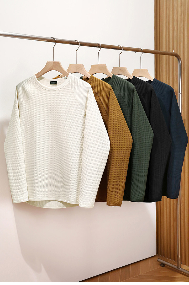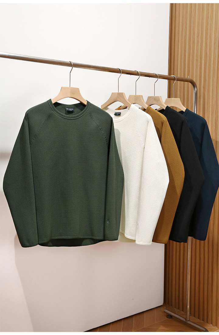 新型華夫格!意大利Leavo Johnson 春秋男士情侶圓領打底套頭衛衣